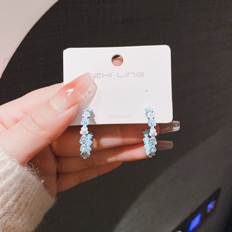 JME-665 2024年新款潮时尚气质天蓝花朵耳坠清新百搭简约耳钉百搭甜美耳饰