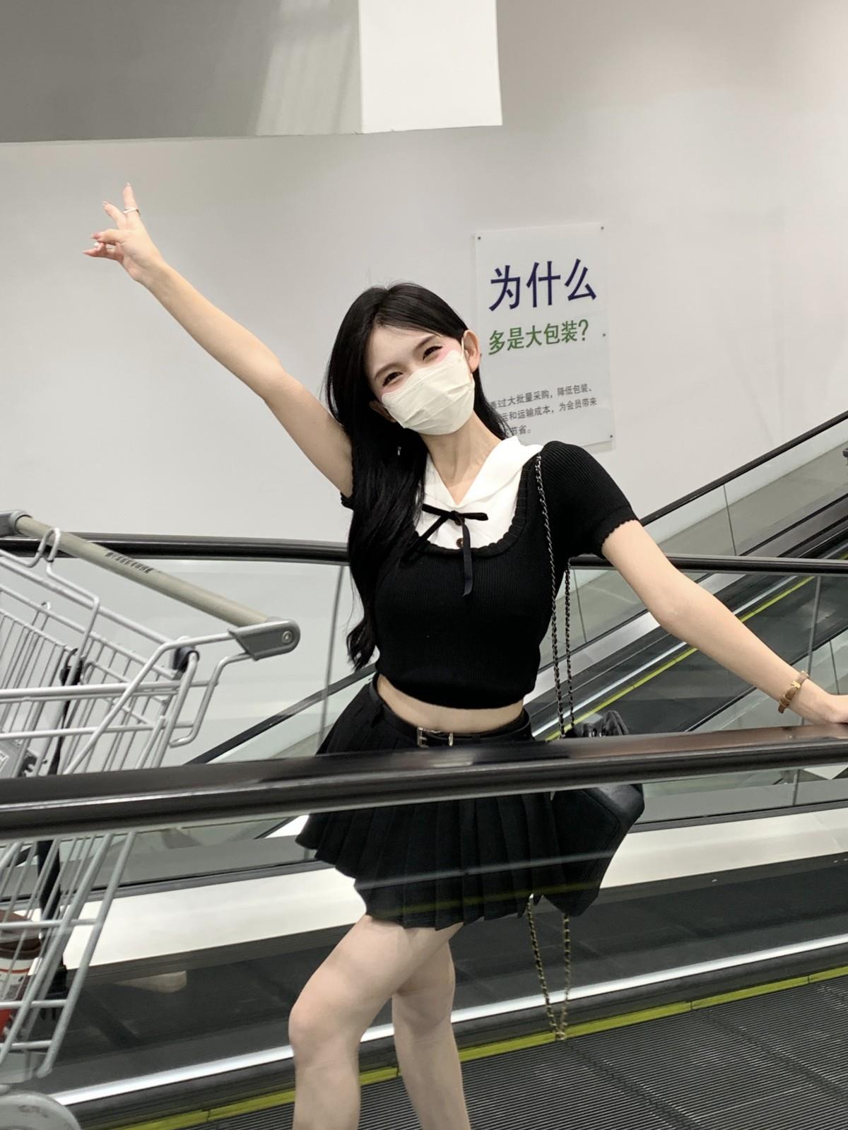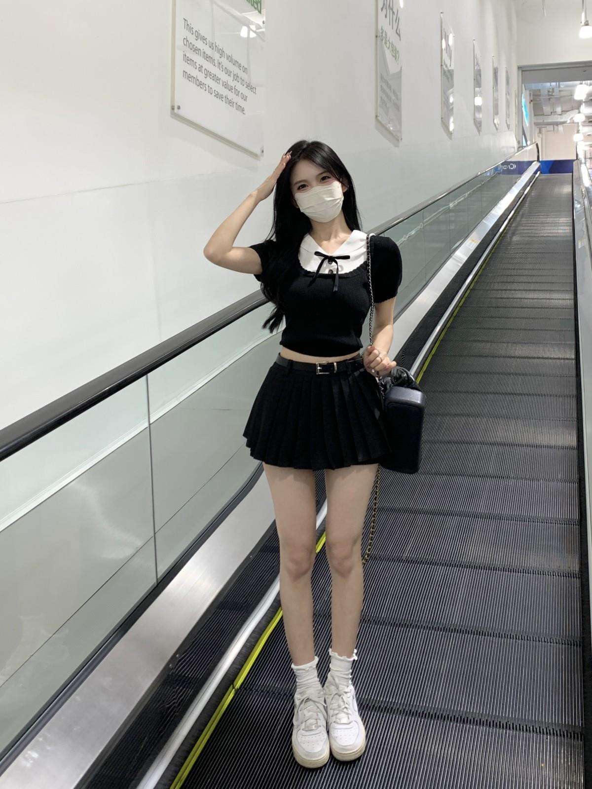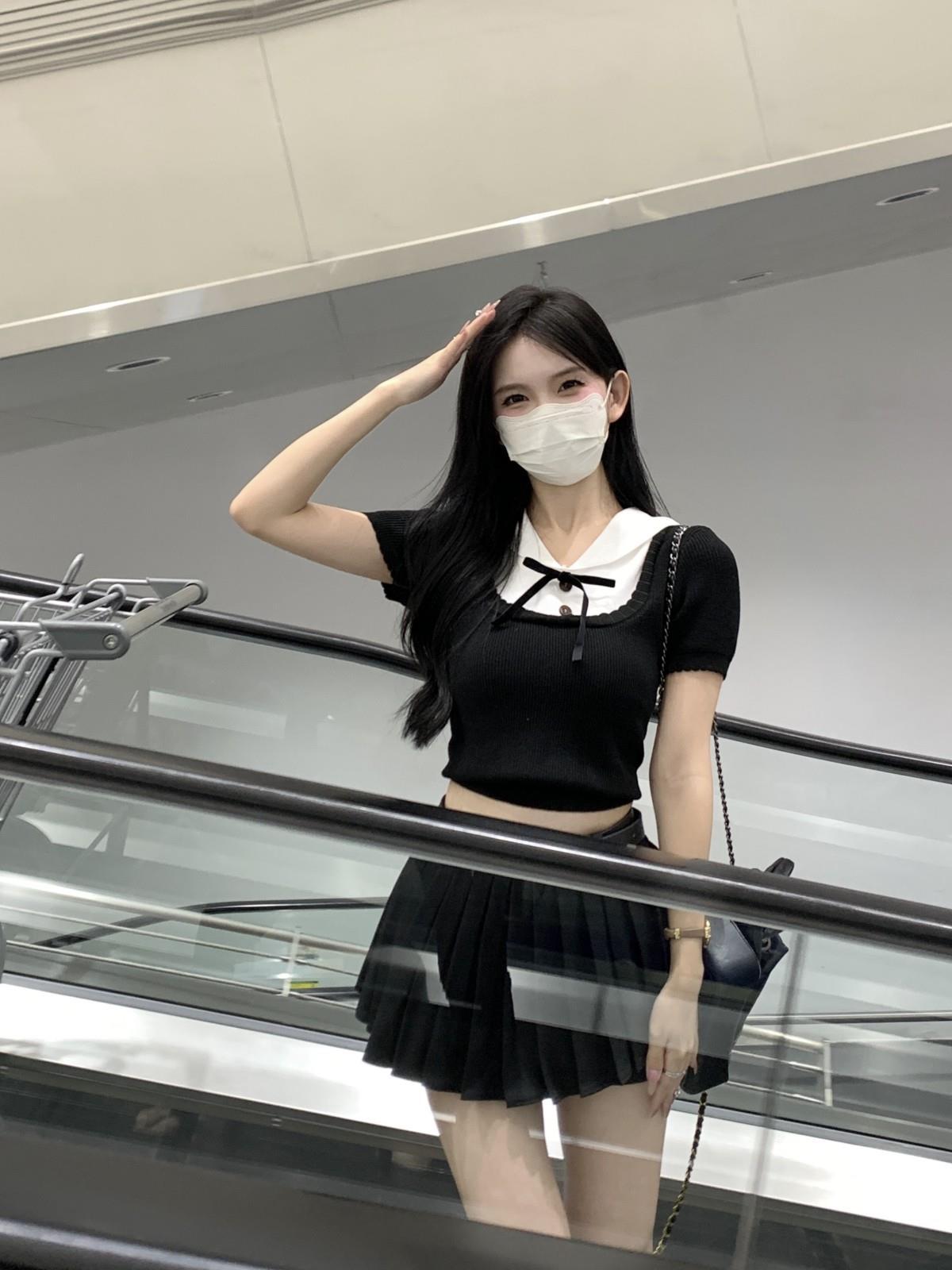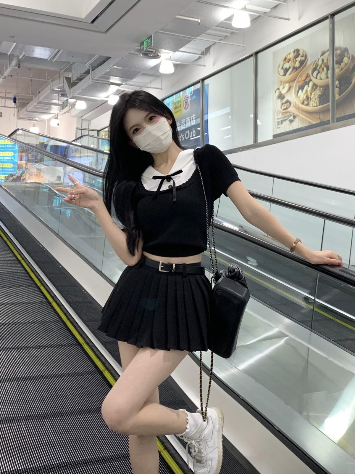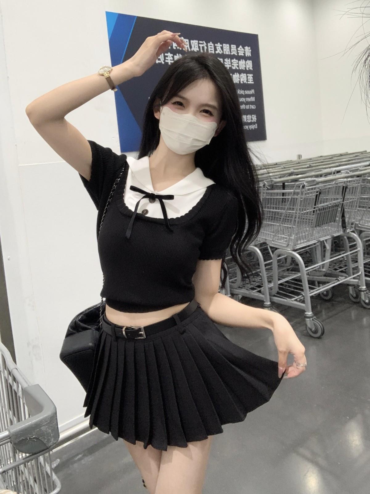 JMA-698 夏季韩版修身小香风娃娃领撞色设计感针织短袖T恤甜辣风短款上衣