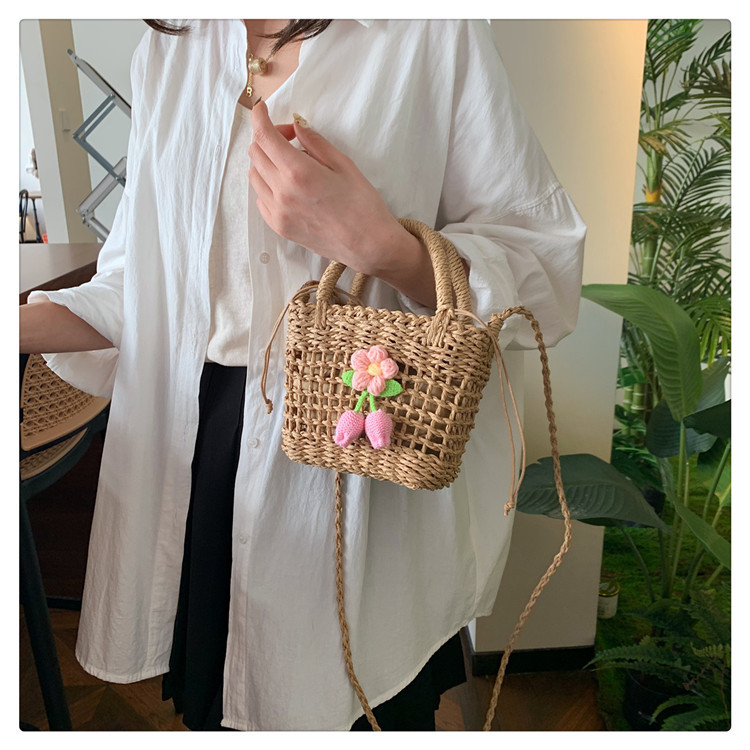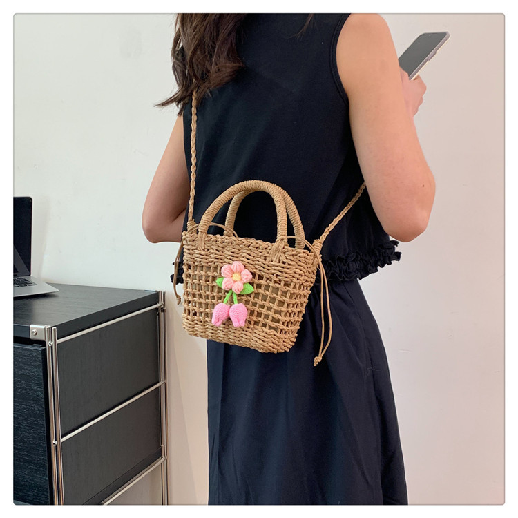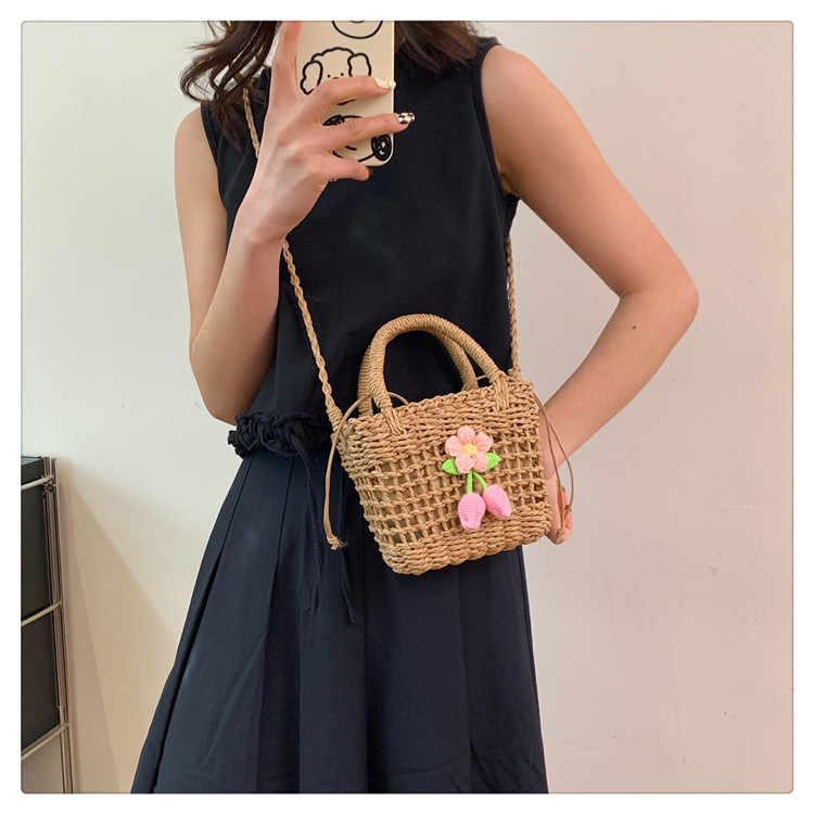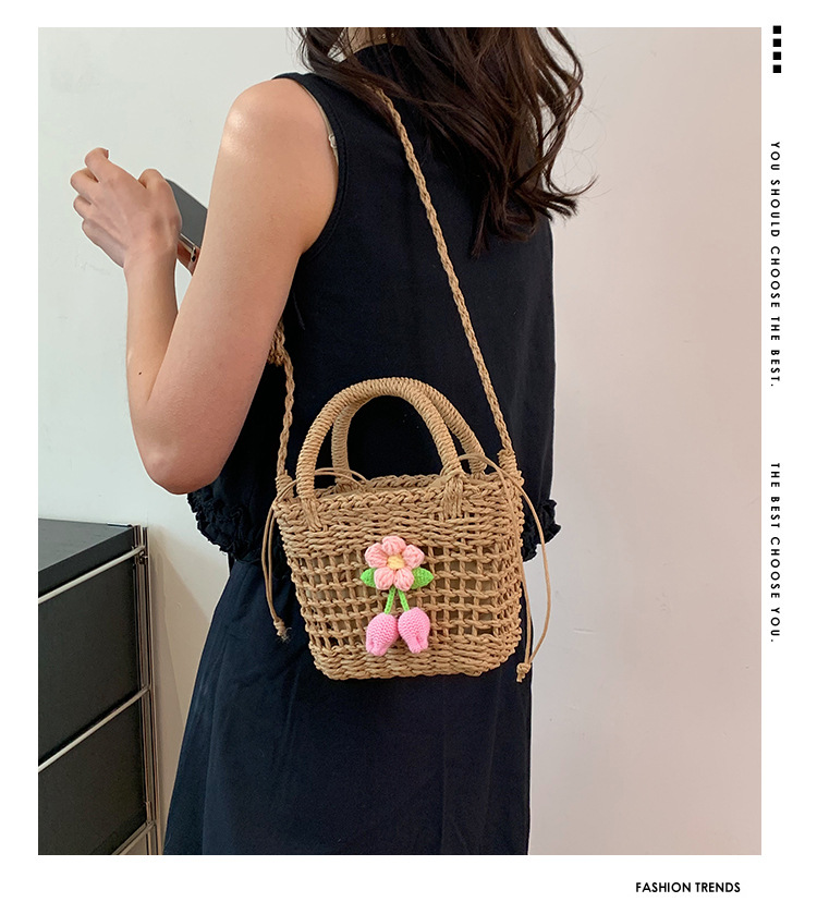 JM-1096 小众设计草编包包女2024春季新款时尚百搭编织水桶包感手提斜挎包