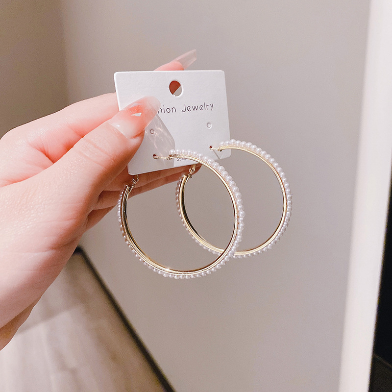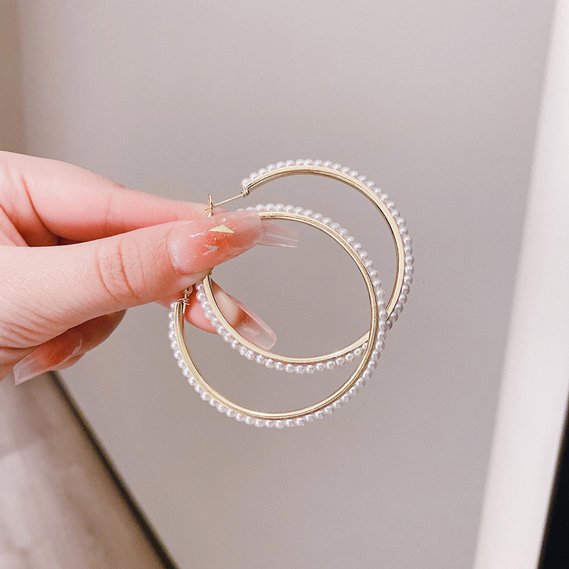 JME-673 2023新款潮欧美夸张大气圈圈耳环简约时尚圆圈珍珠耳环耳圈耳饰女