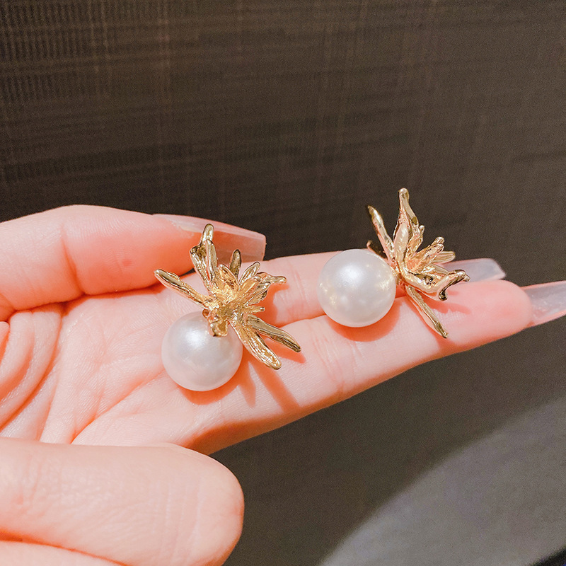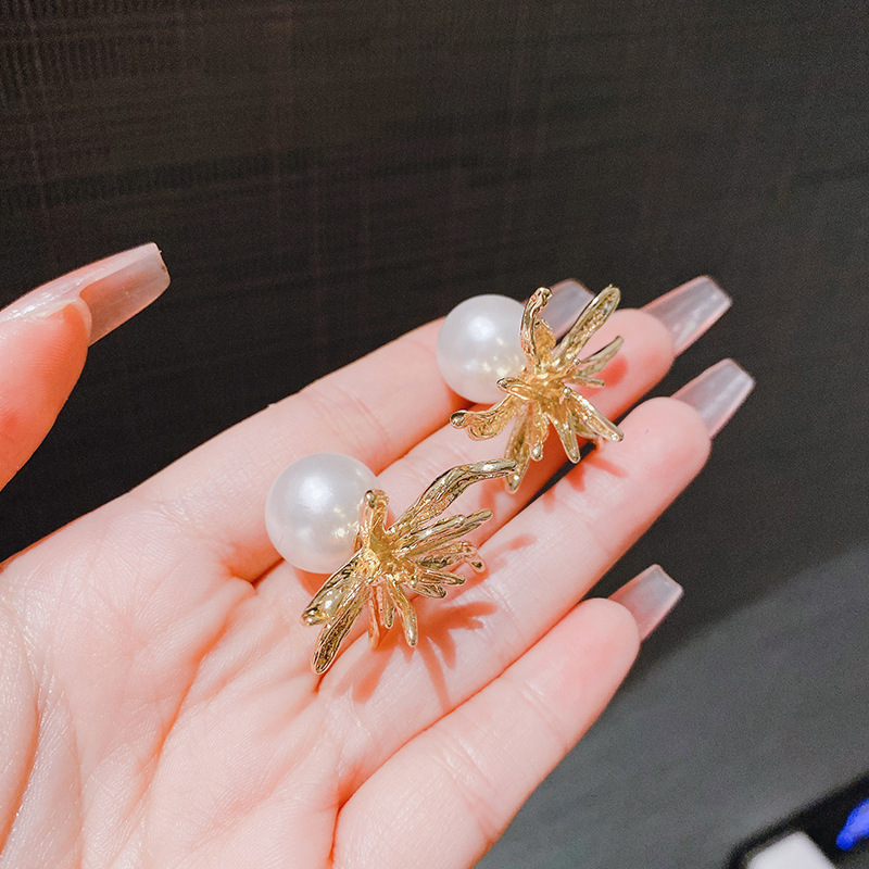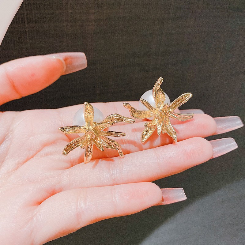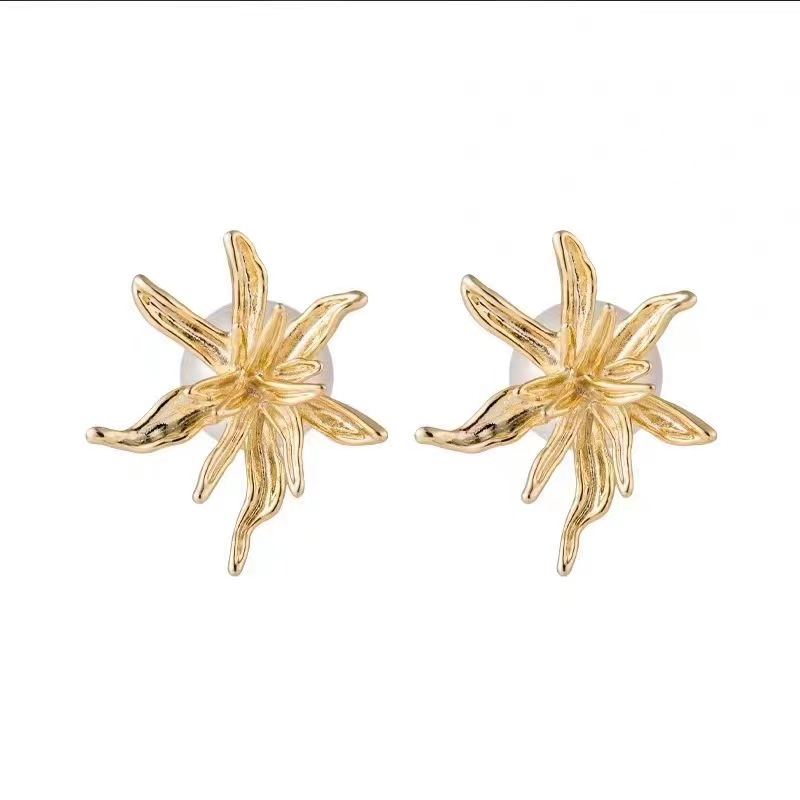 JME-677 s925银针欧美时尚冷淡风金属花朵造型耳环小众设计感耳钉耳饰批发