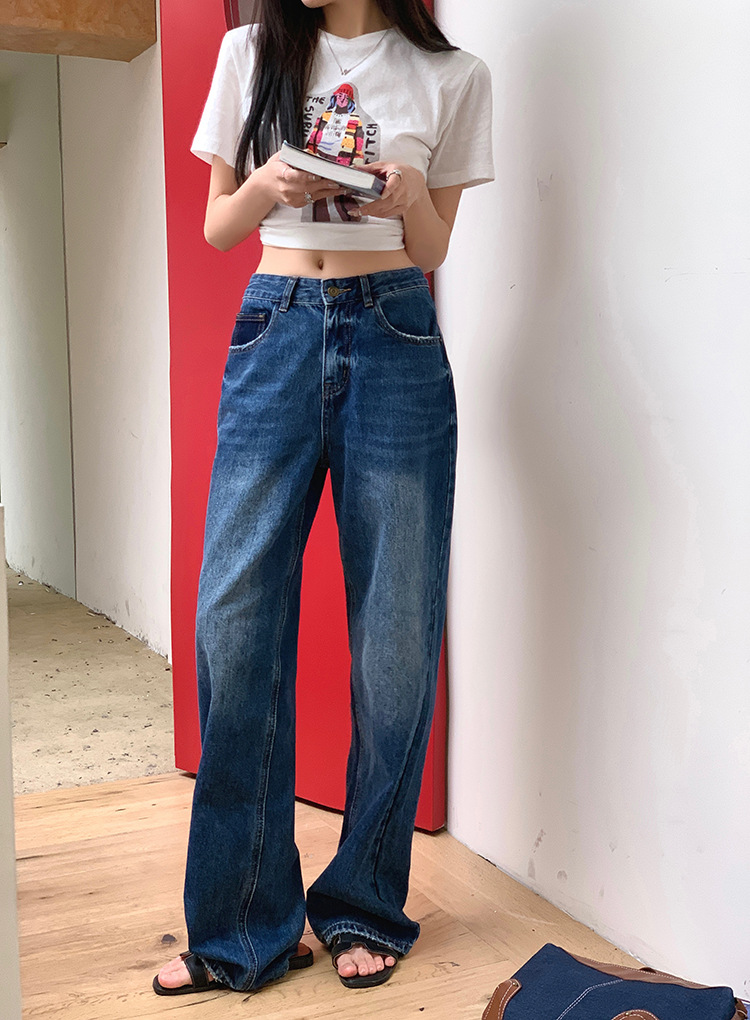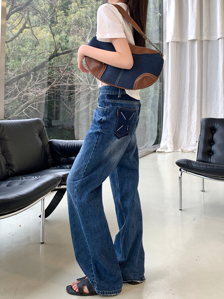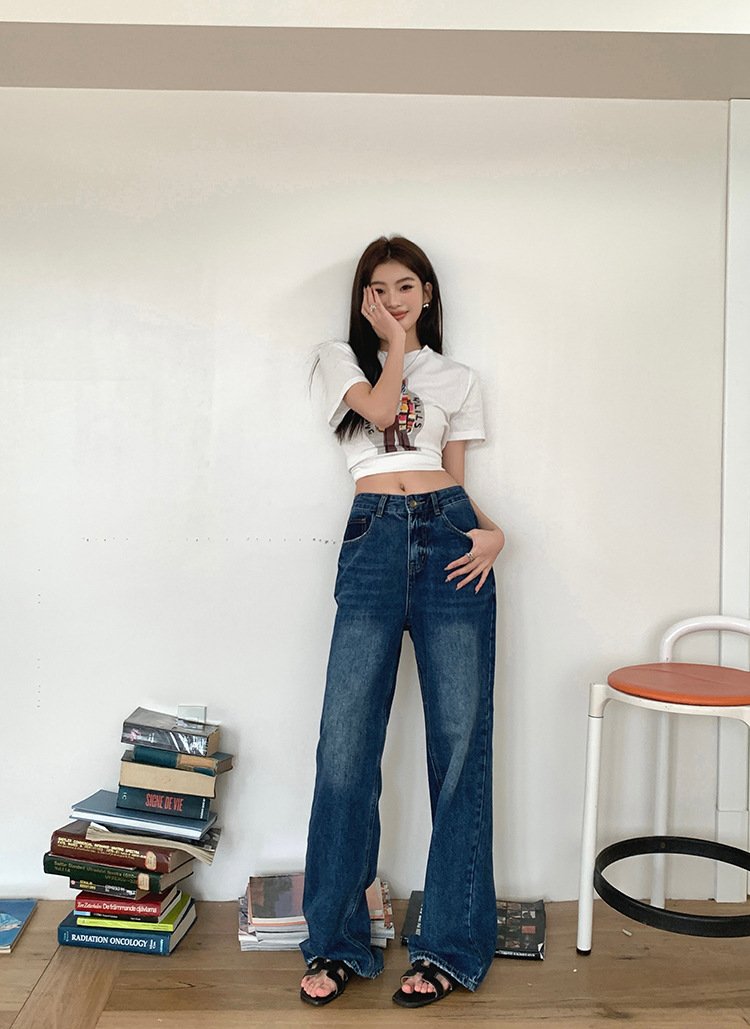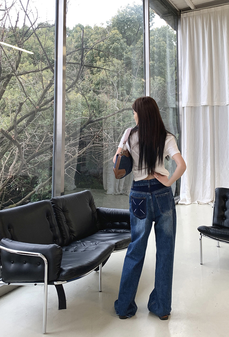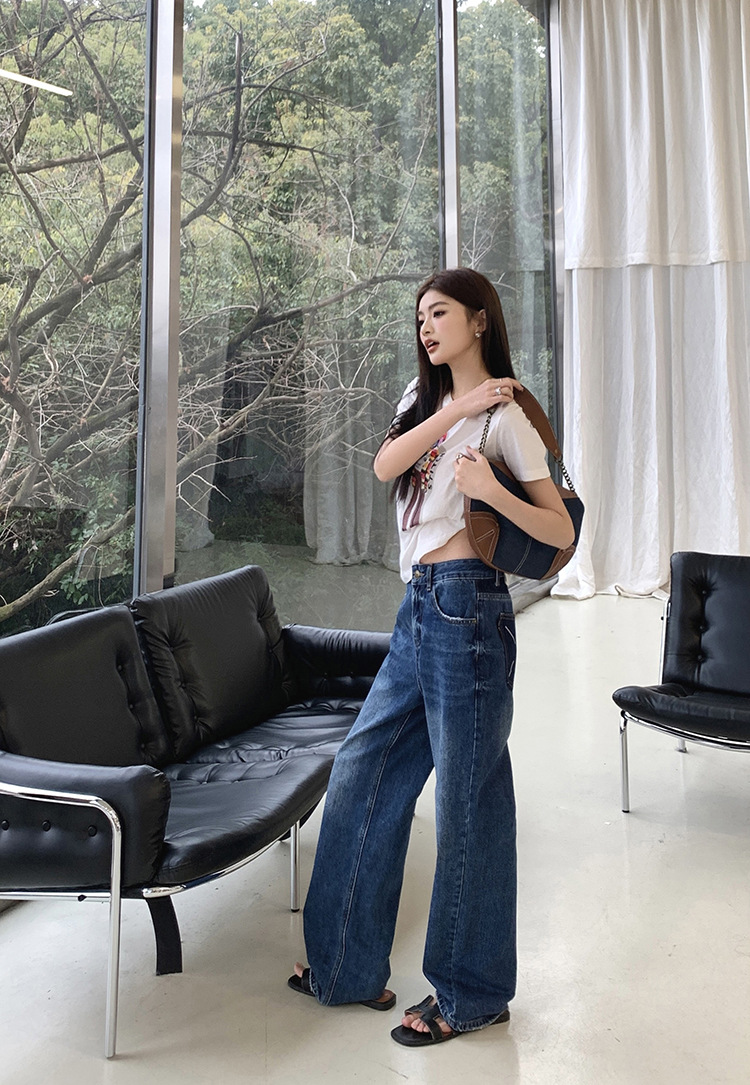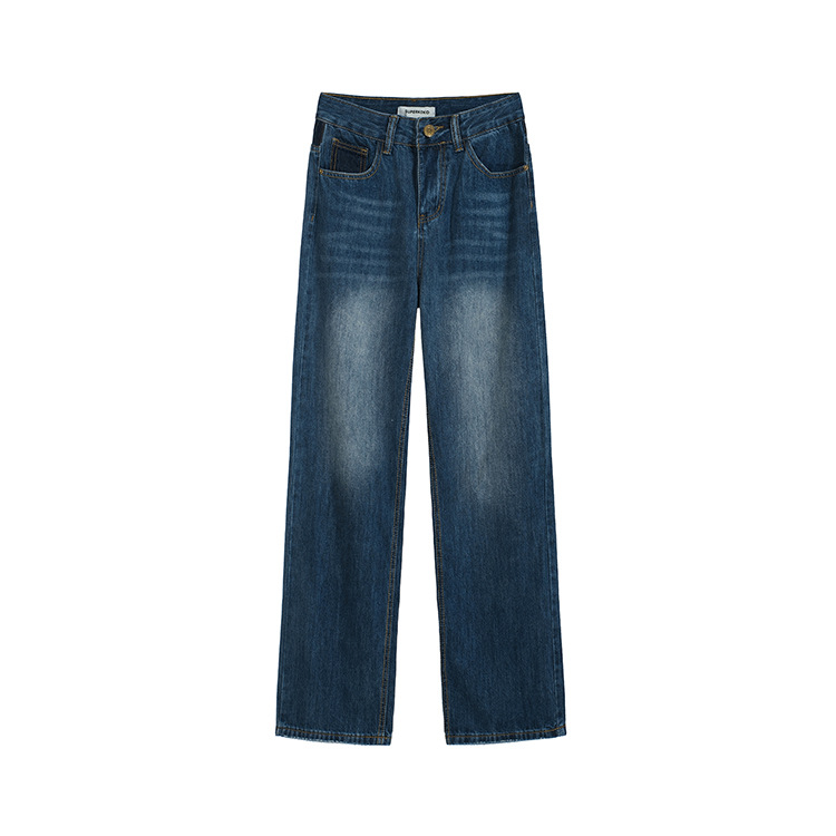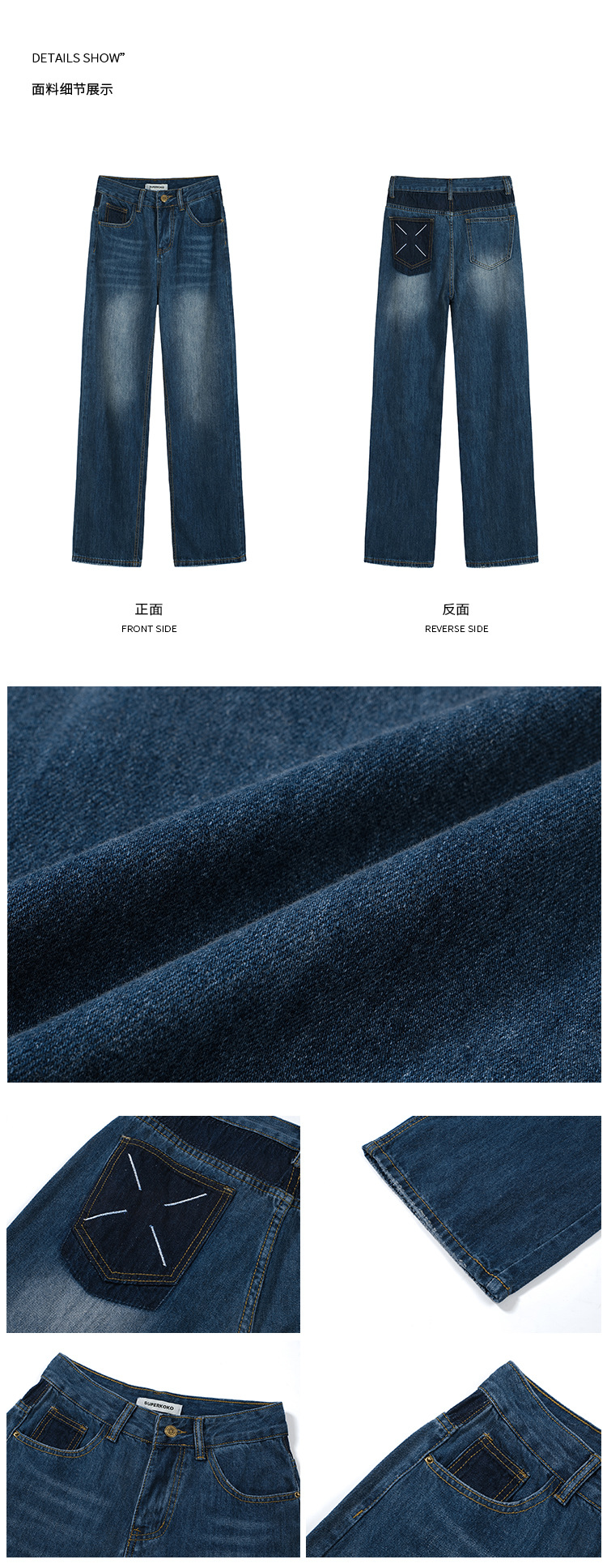 JMA-702 实拍复古宽松直筒牛仔裤女秋季甜辣风高腰垂感阔腿裤拖地牛仔长裤