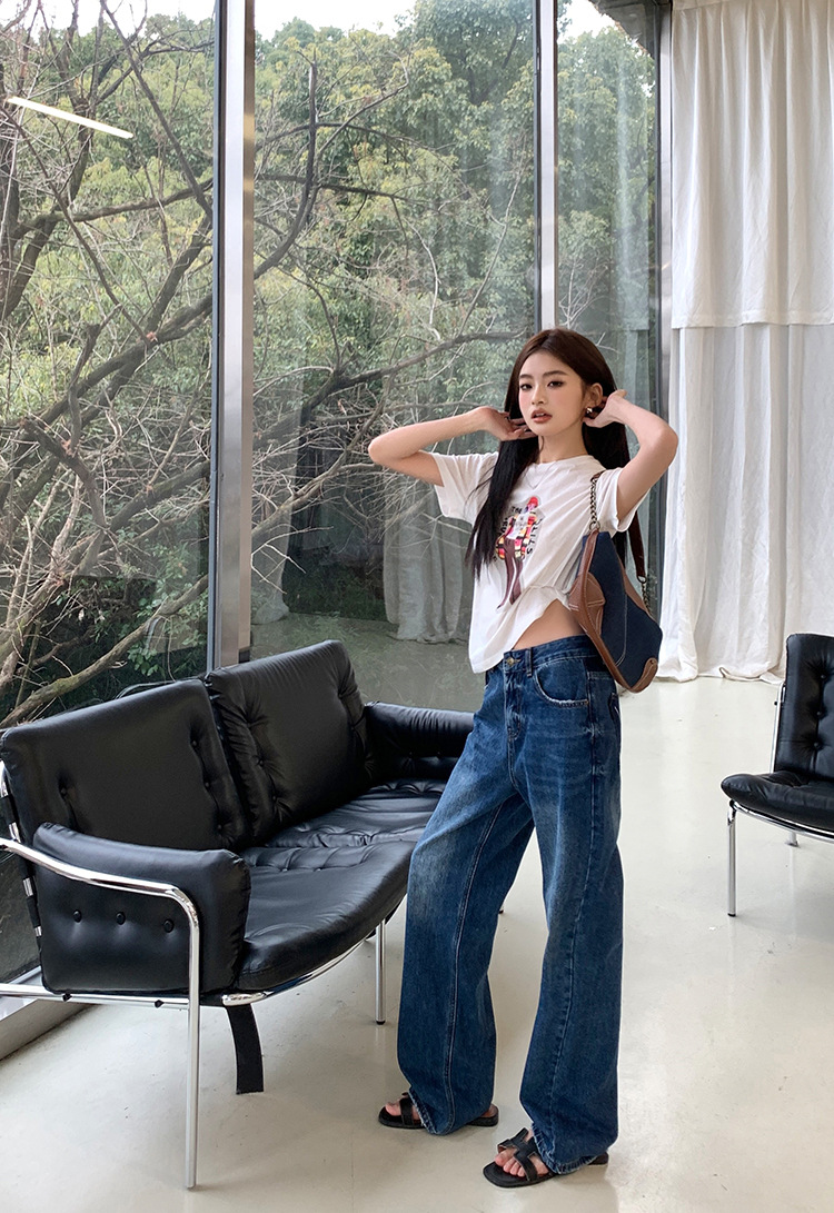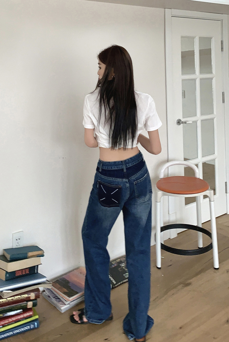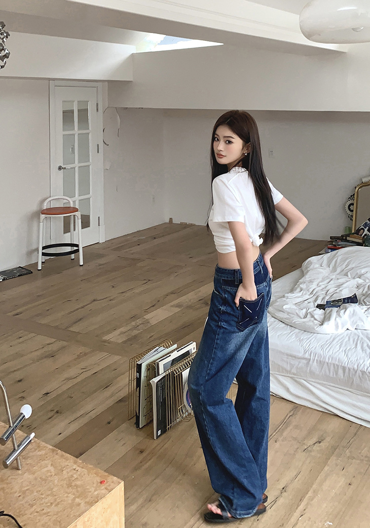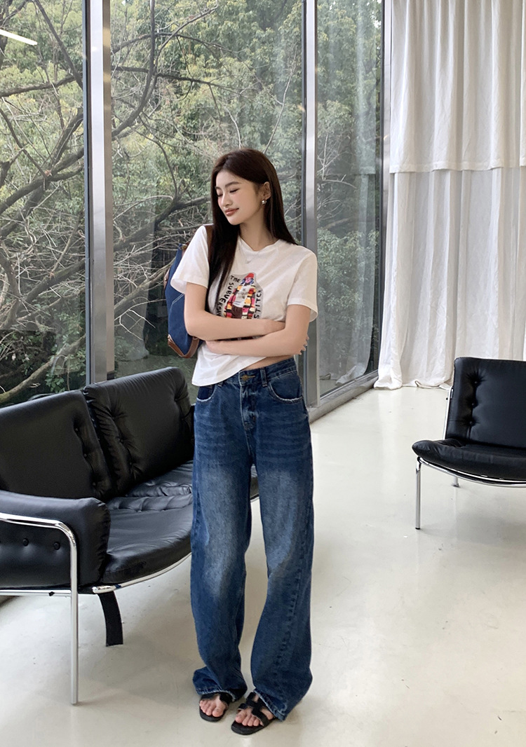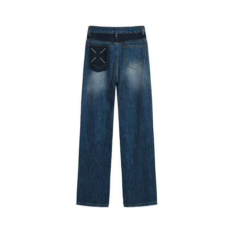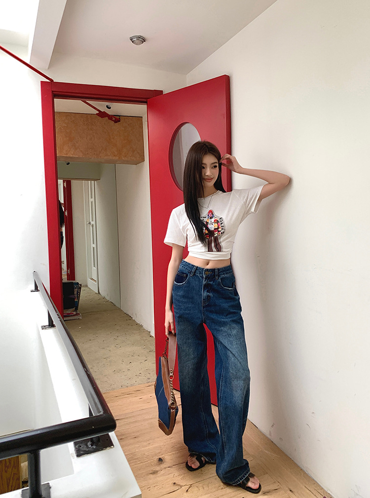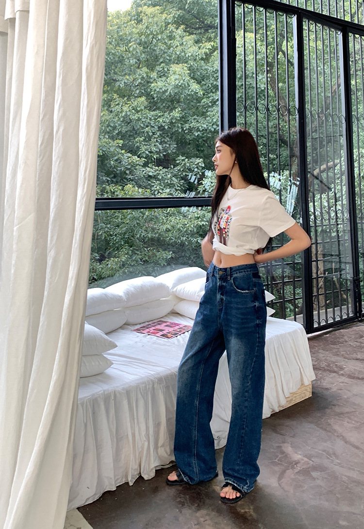 JMA-702 实拍复古宽松直筒牛仔裤女秋季甜辣风高腰垂感阔腿裤拖地牛仔长裤