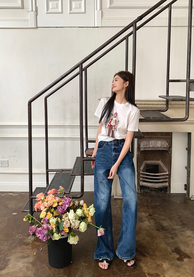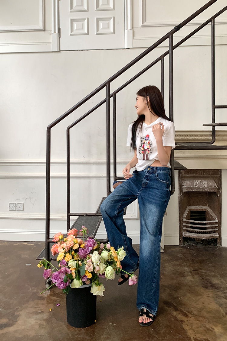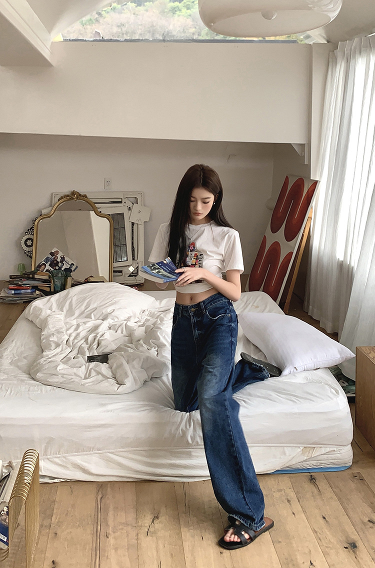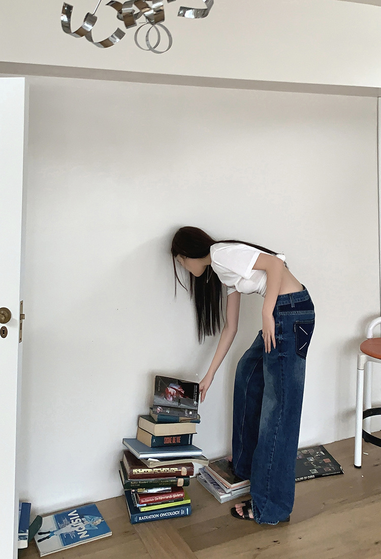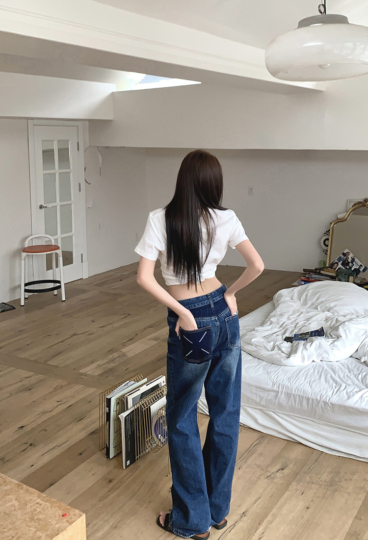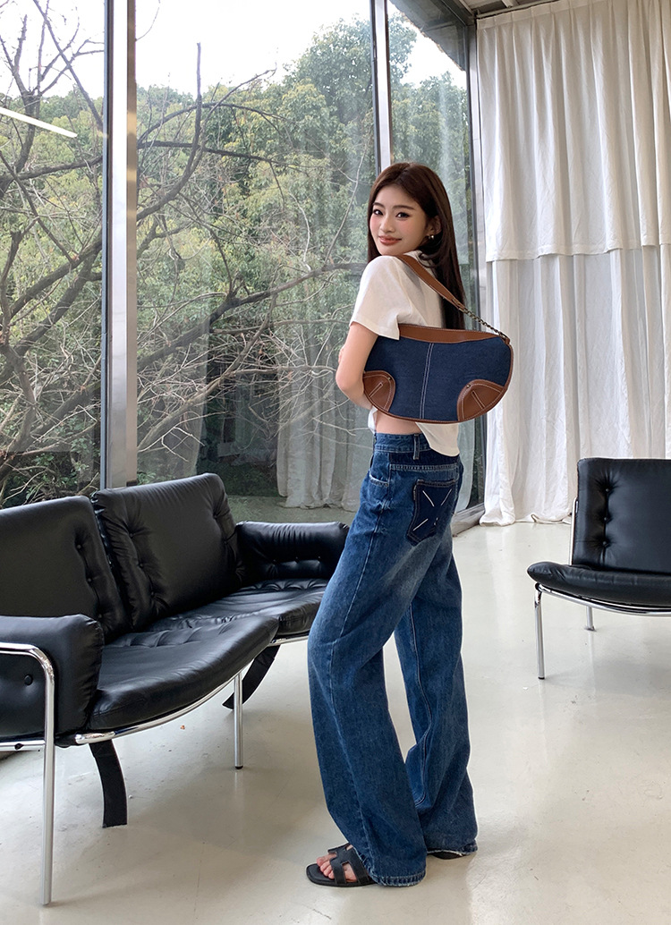 JMA-702 实拍复古宽松直筒牛仔裤女秋季甜辣风高腰垂感阔腿裤拖地牛仔长裤