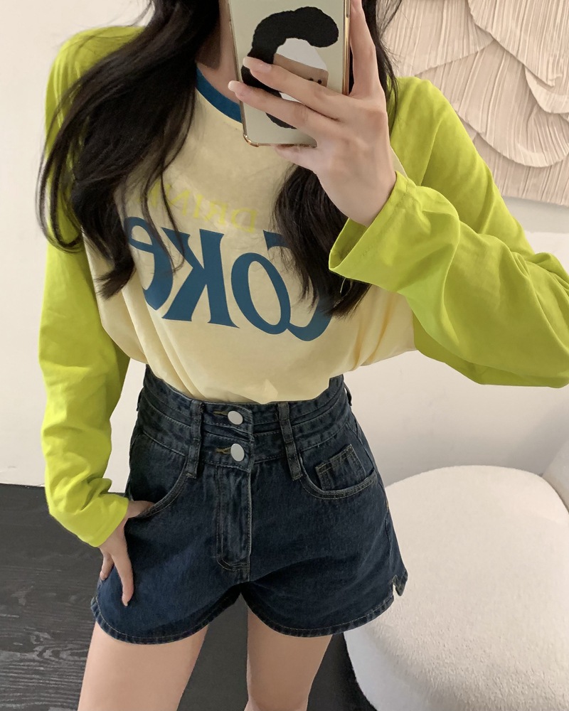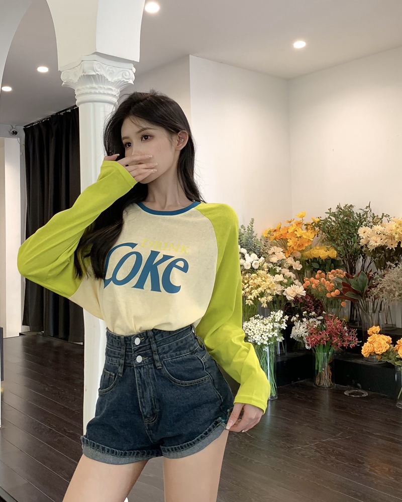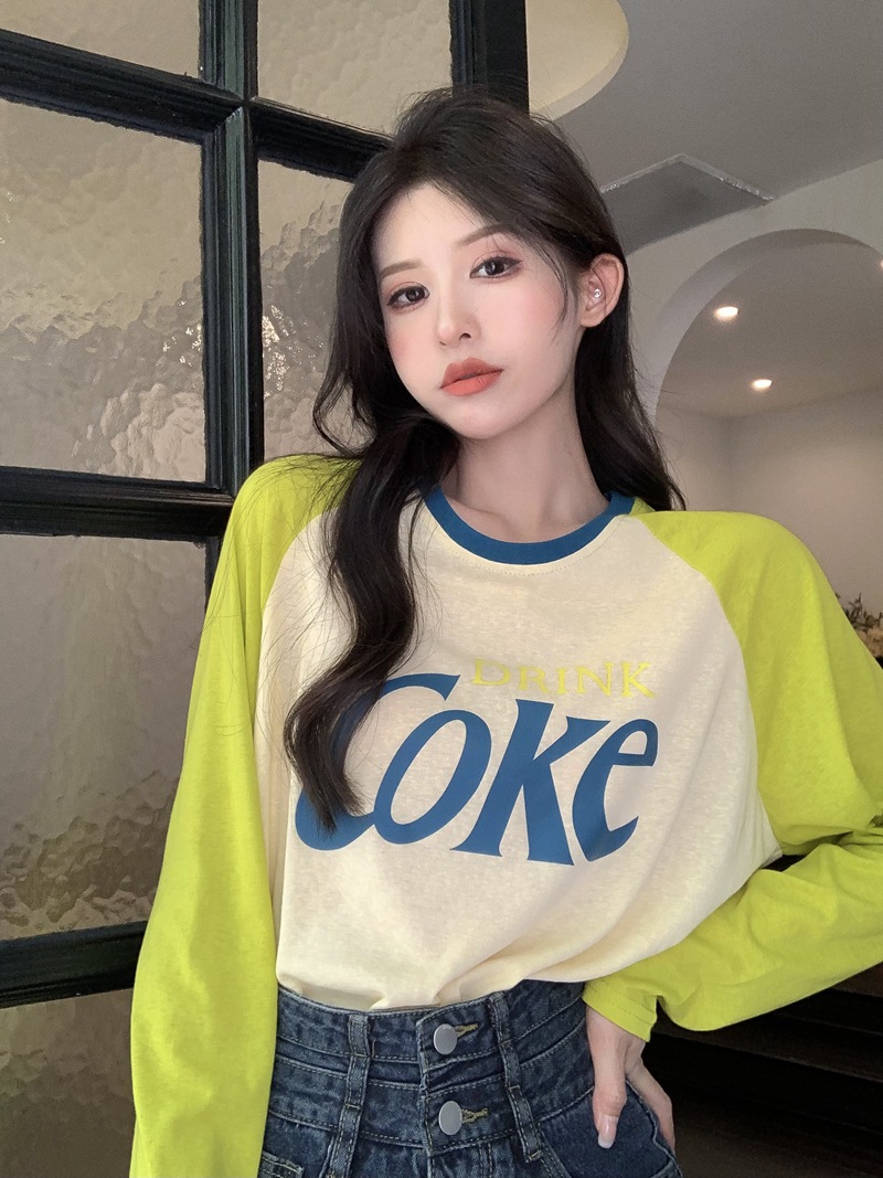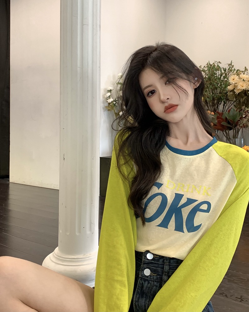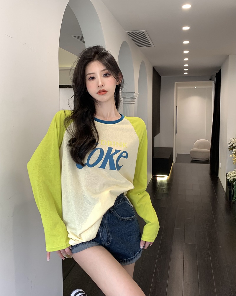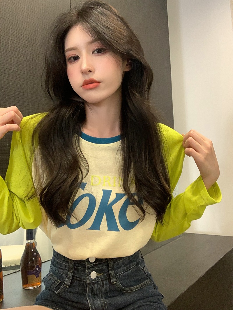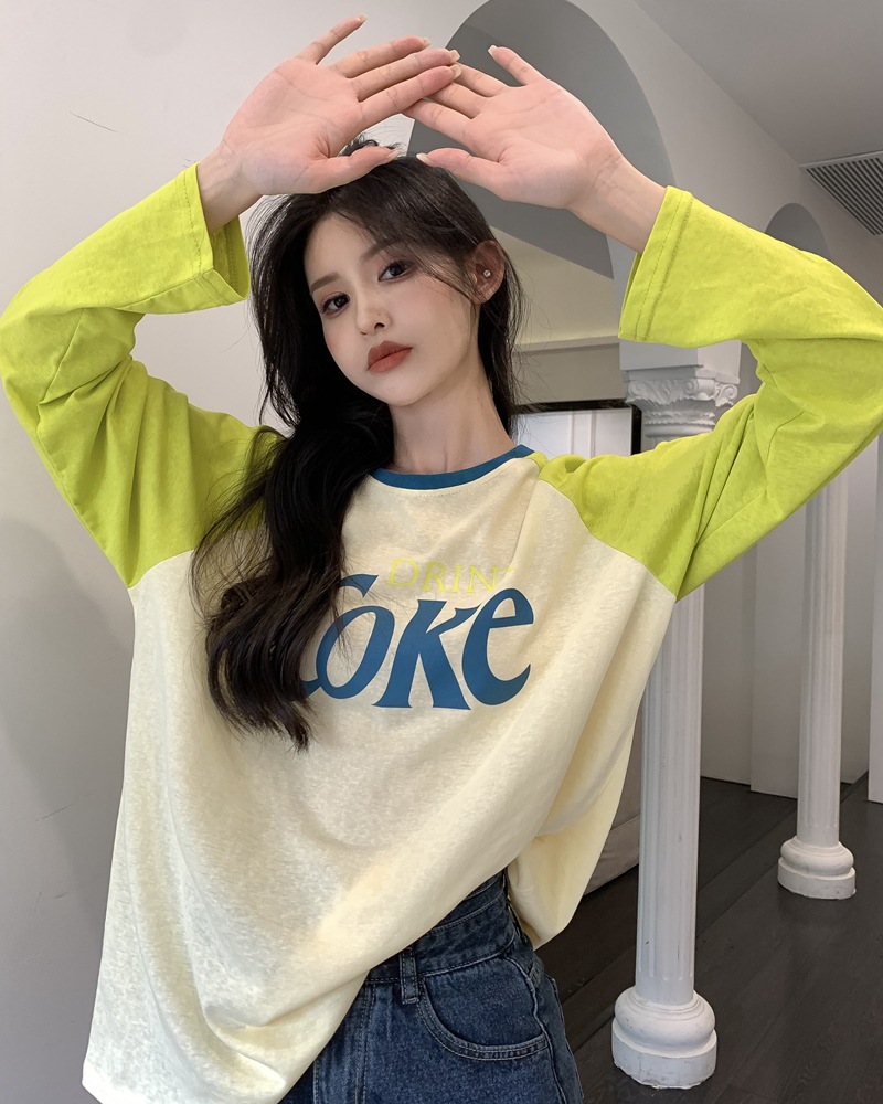 JMA-710 实拍夏季港风时髦字母印花撞色插肩袖宽松长袖T恤女ins薄款防晒衣