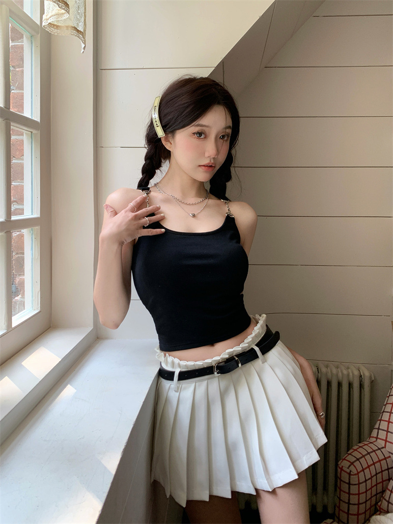 JMA-717 黑色吊带小背心女设计感金属扣纯欲风外穿美背夏季甜辣妹无袖上衣