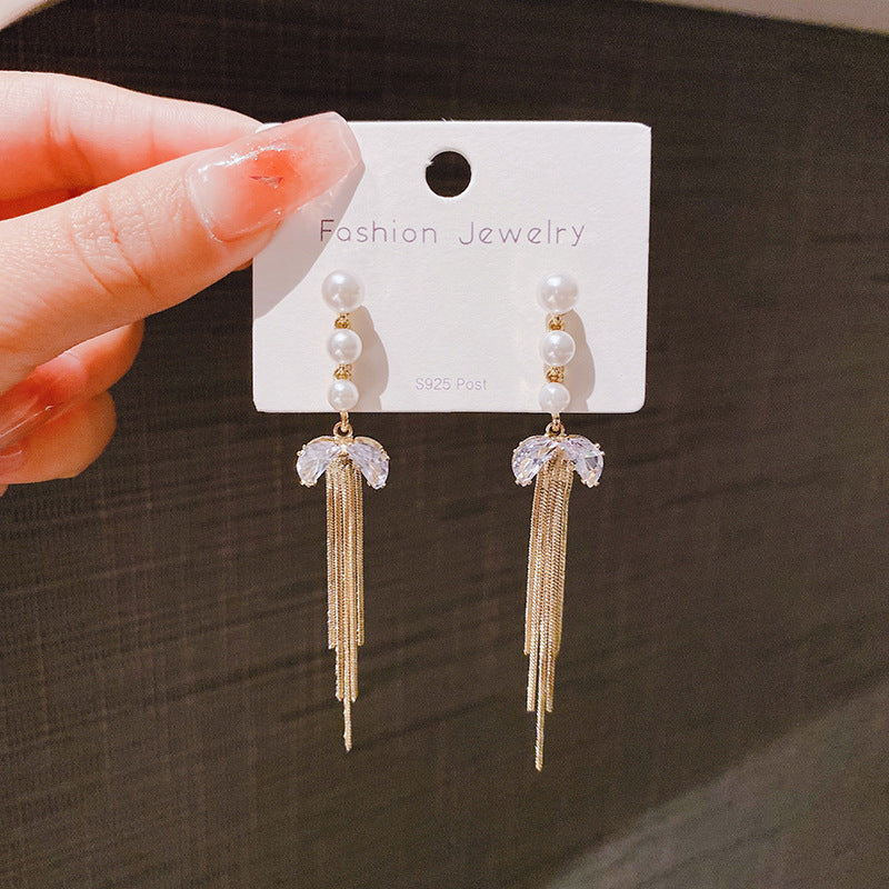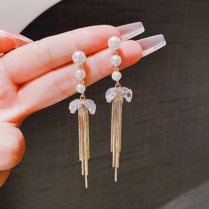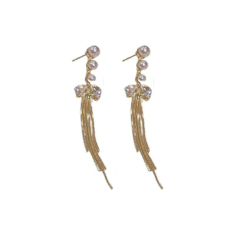 JME-696 法式精致珍珠长款流苏耳环女轻奢时尚设计感耳坠高级感耳饰品