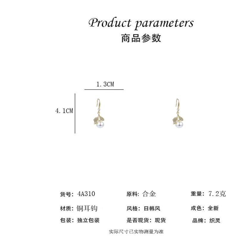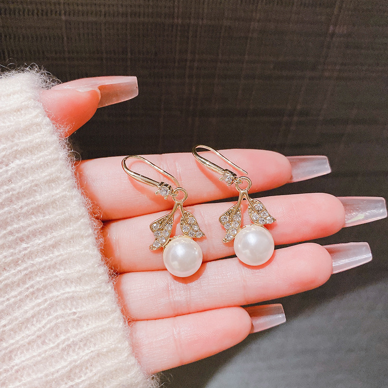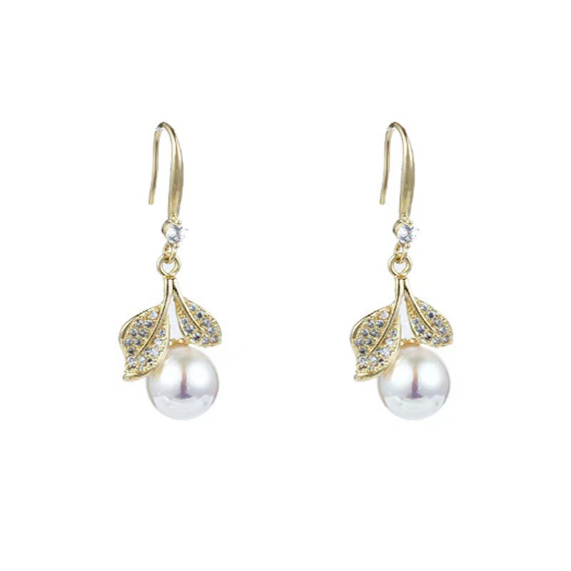 JME-697 法式轻奢满钻树叶珍珠耳环小众设计感耳饰潮气质女耳坠