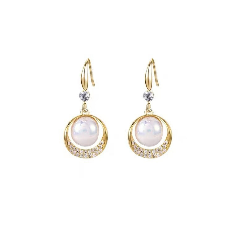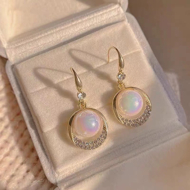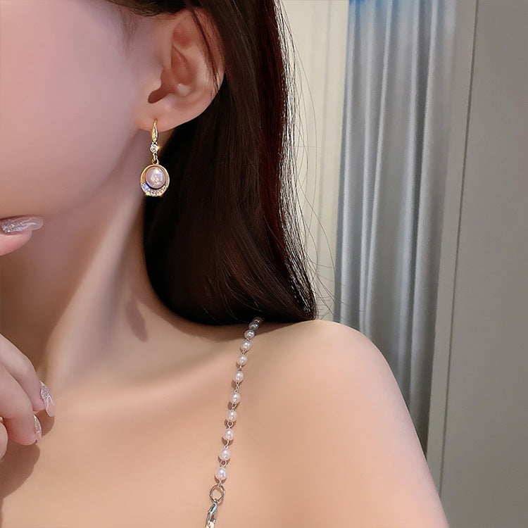 JME-698 925银针韩版淑女长款珍珠耳坠ins网红甜美温柔气质高级感耳环耳饰
