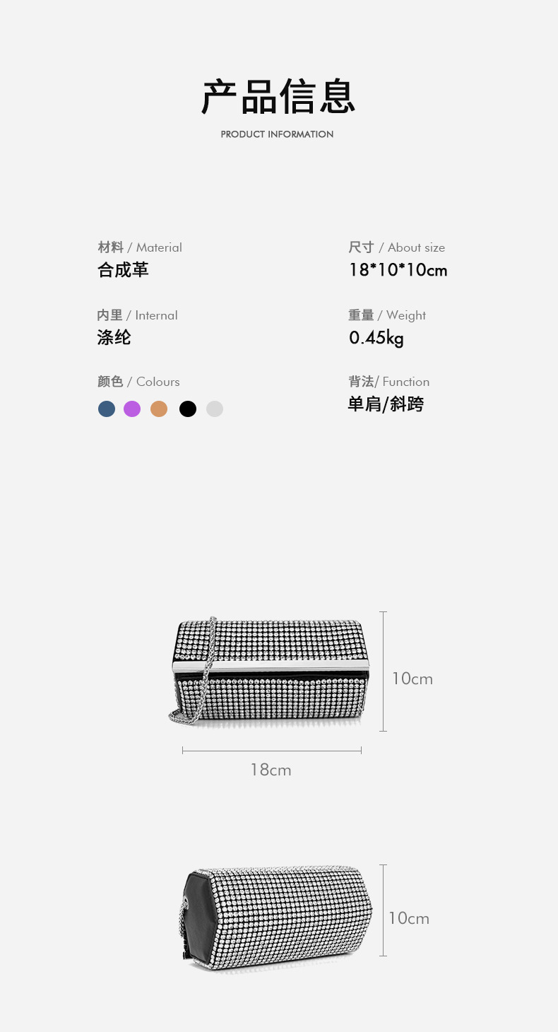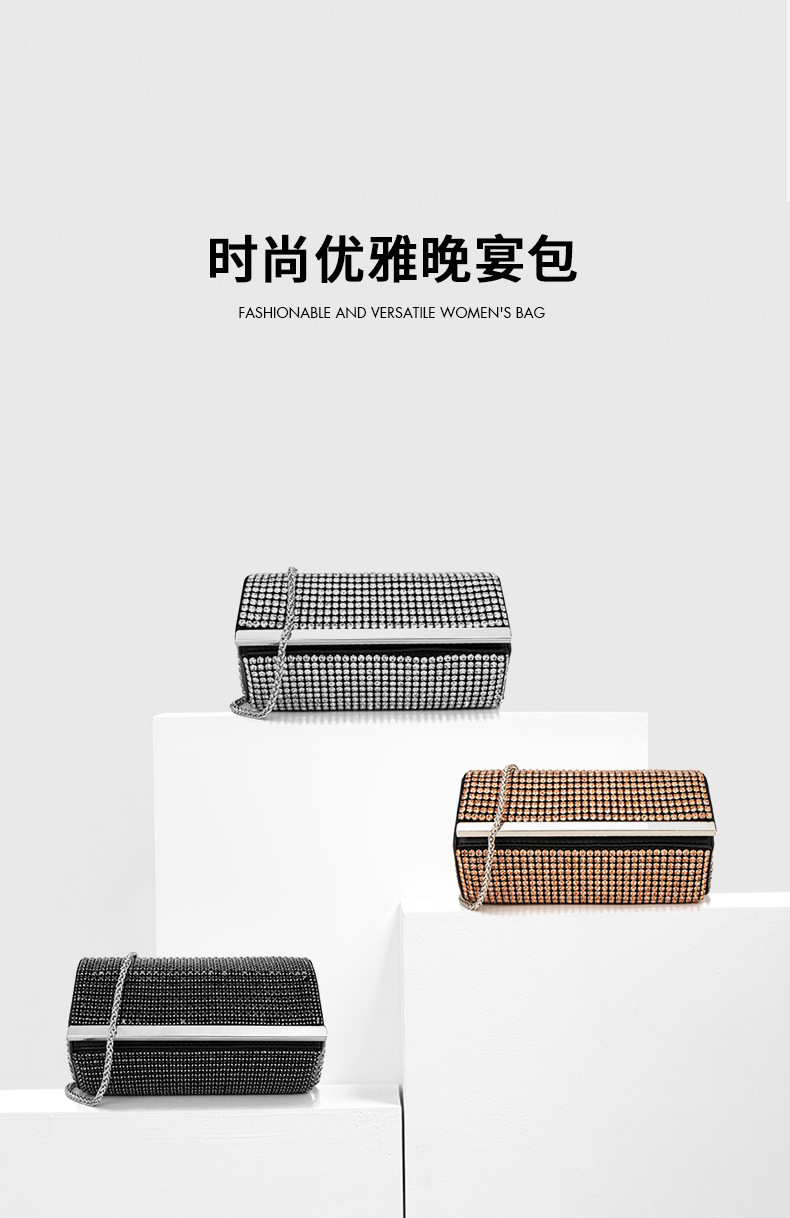 JM-1129 新款跨境枕头包斜挎女包链条镶钻单肩斜挎六边形盒子包