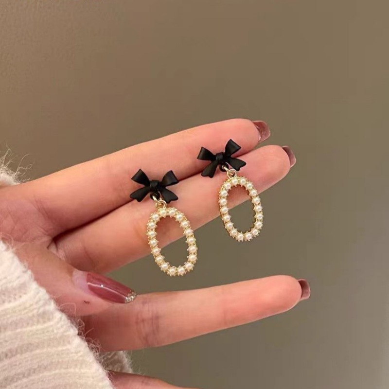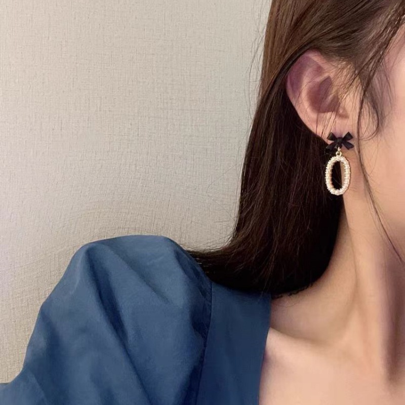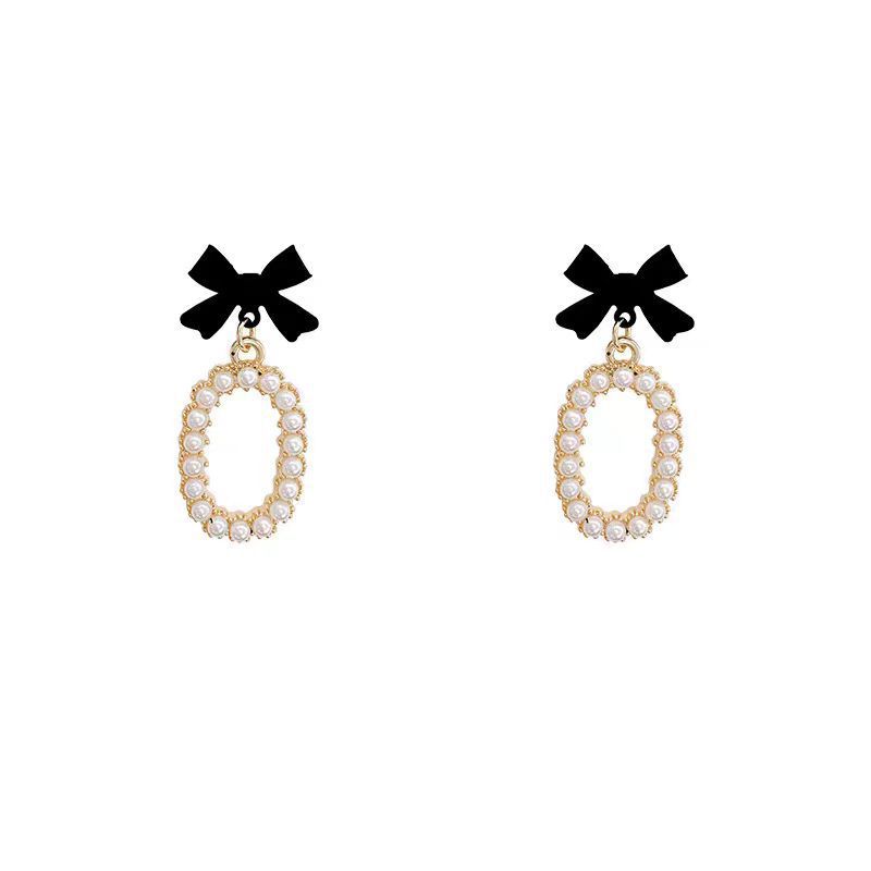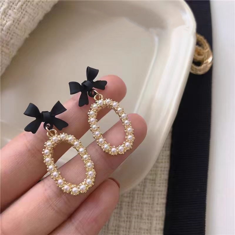 JME-702 法式港风复古简约气质耳钉女蝴蝶结珍珠设计感耳环时尚百搭耳饰品