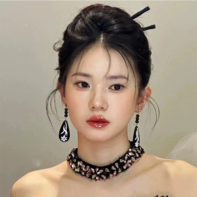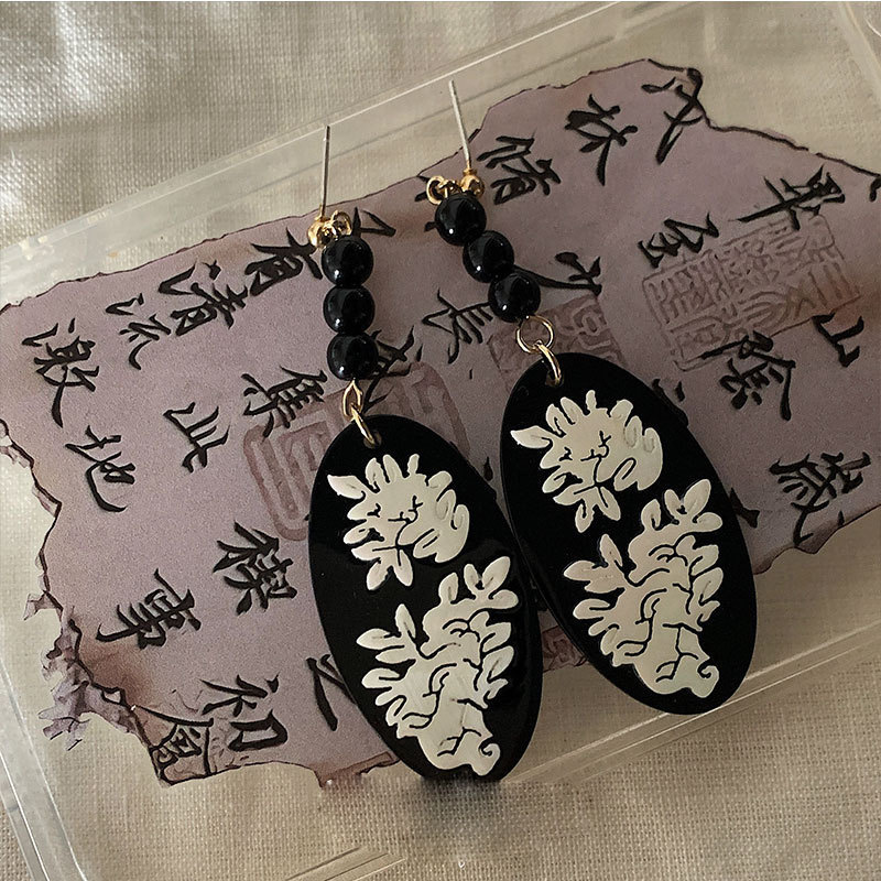 JME-703 新中式复古中国风耳环黑色古风古装流苏设计感古着旗袍高级感耳饰