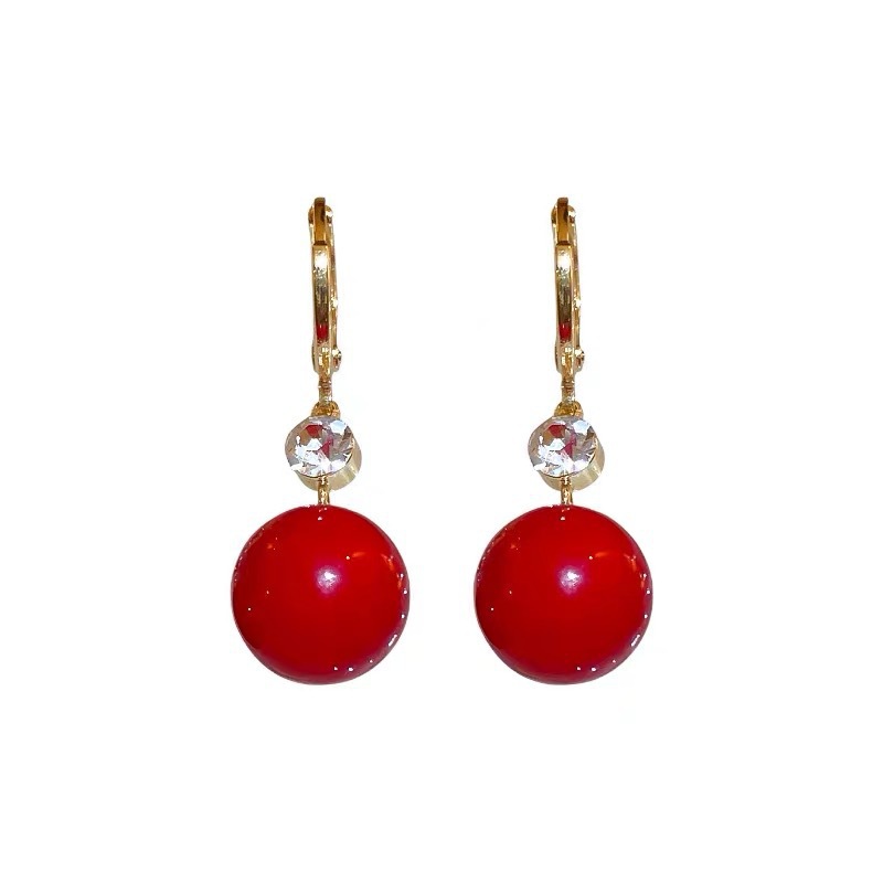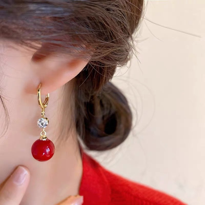 JME-705 高级感轻奢相思豆耳环女 新款潮红色珍珠耳扣名媛气质甜美耳饰
