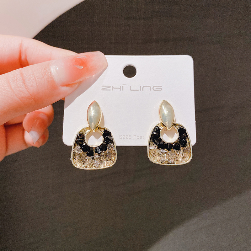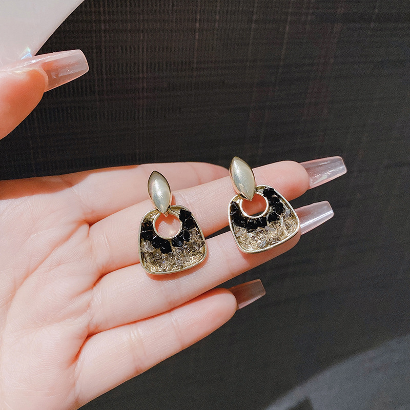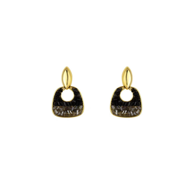 JME-708 黑色水晶优雅耳钉女高级感轻奢耳坠小众设计气质耳饰品