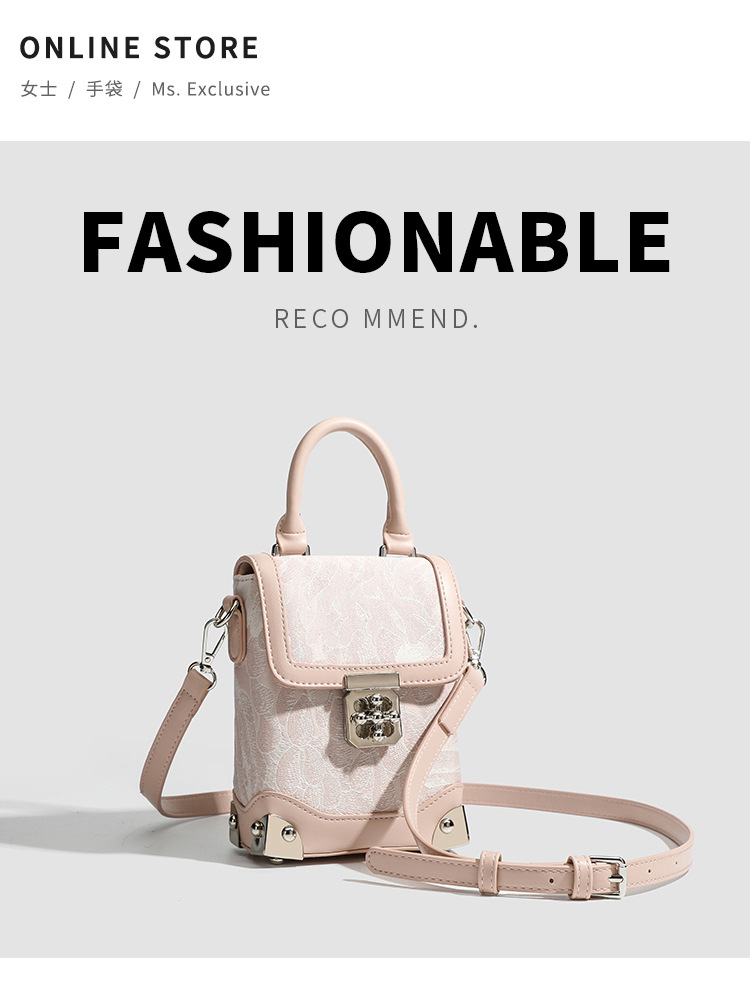 JM-1134 手提印花盒子包包女日系百搭通勤单肩斜挎小包