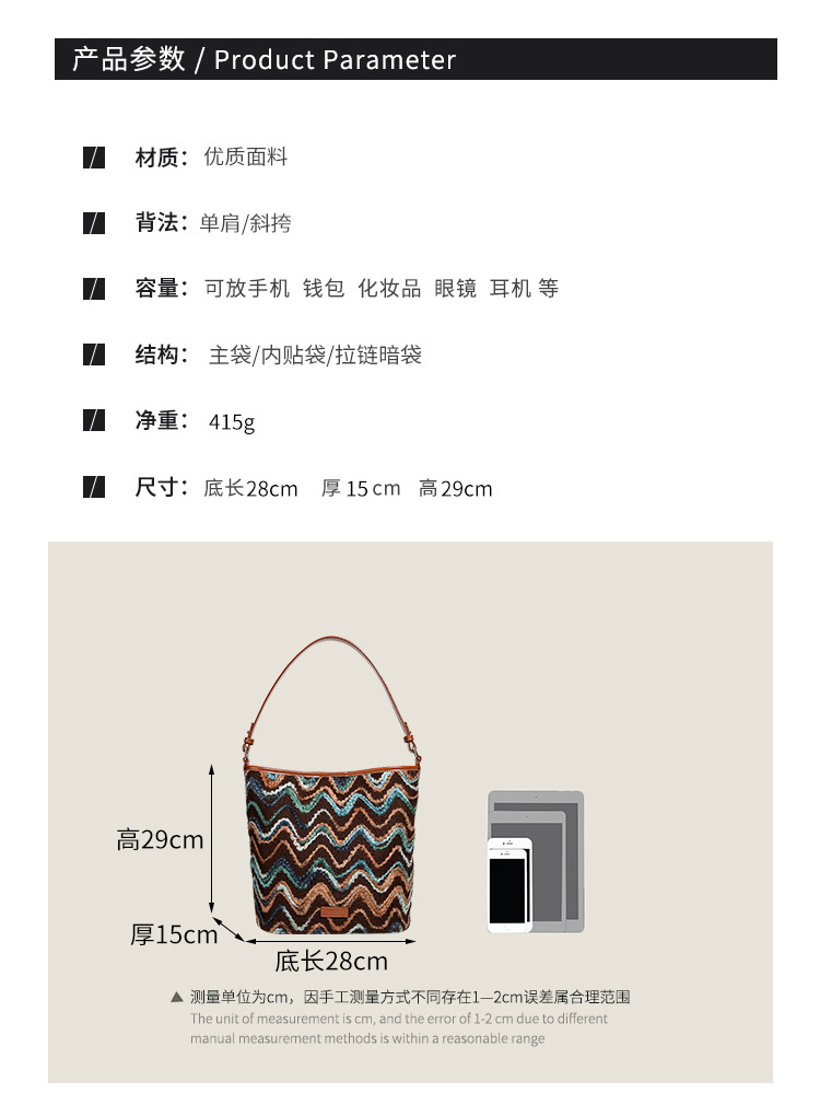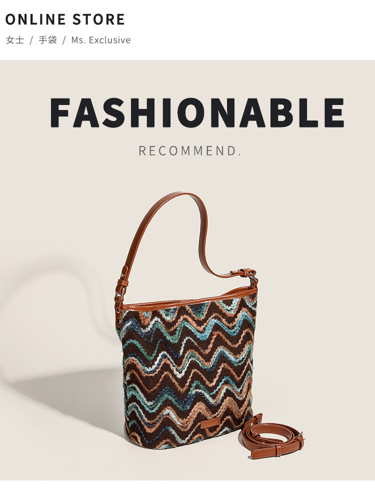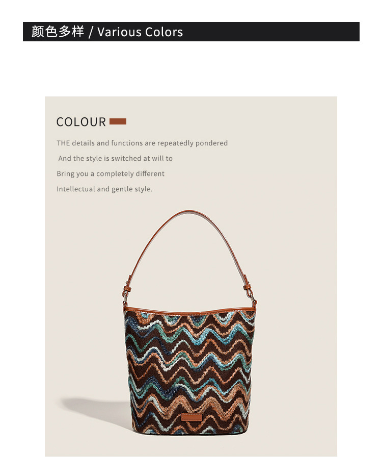 JM-1136 设计感波浪纹水桶包爆款复古质感手提包时尚洋气单肩斜跨包包