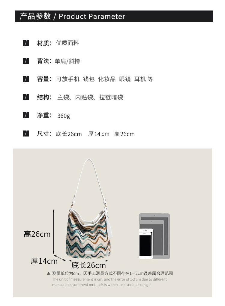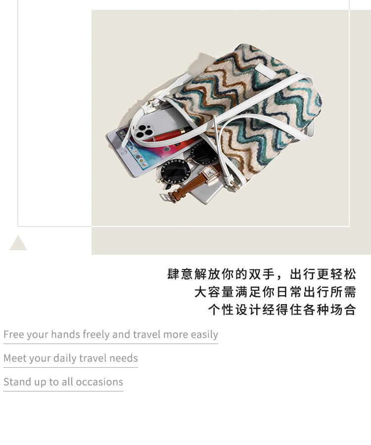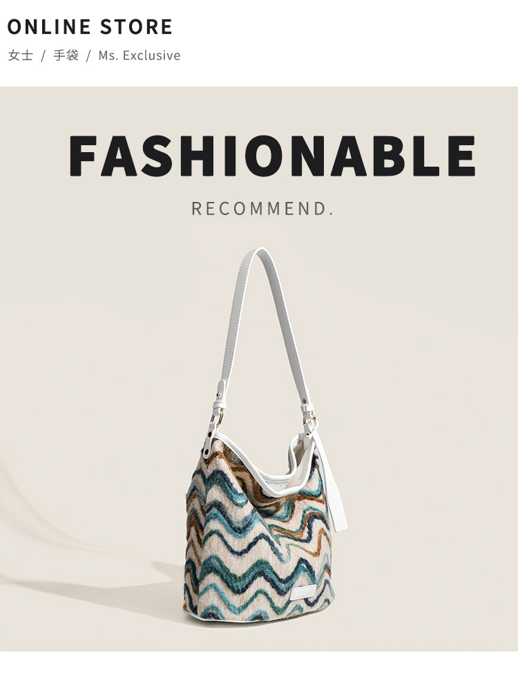 JM-1139 复古波浪纹单肩托特包流行新款小众ins百搭韩版女包腋下包包