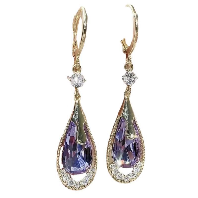 JME-716 新款潮高级感紫色水晶水滴形耳扣简约大气耳环时尚气质耳饰