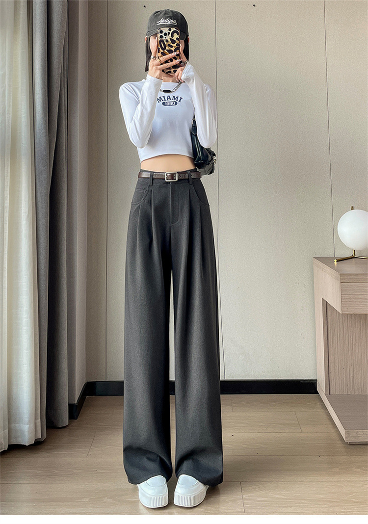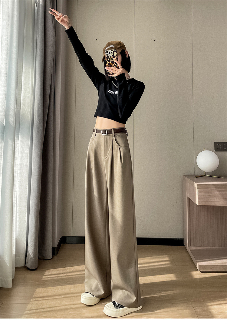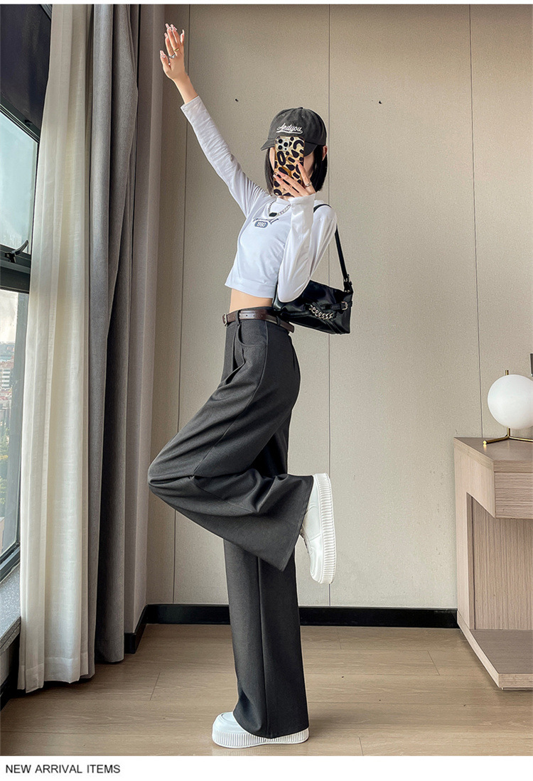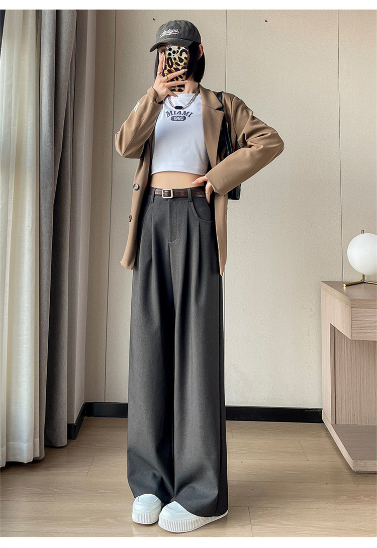 JMA-757 韩系高腰窄版阔腿裤直筒休闲裤垂感西装裤拖地裤女
