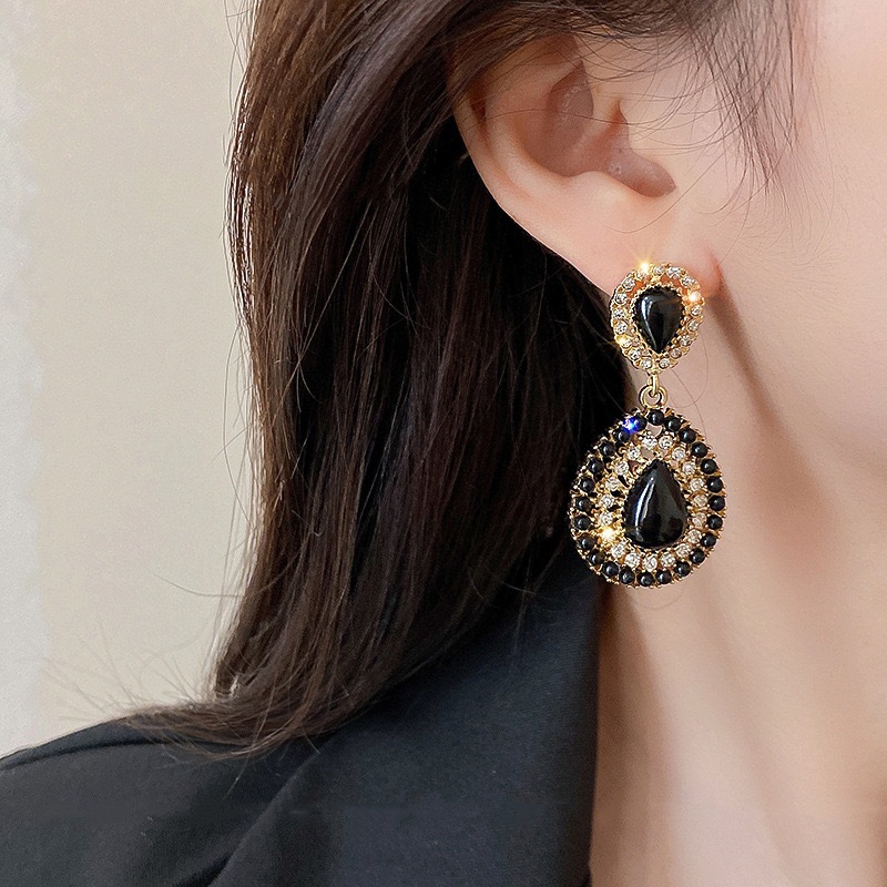 JME-734 法式复古个性暗黑风镶钻水滴耳环ins轻奢气质高级感百搭精致耳饰