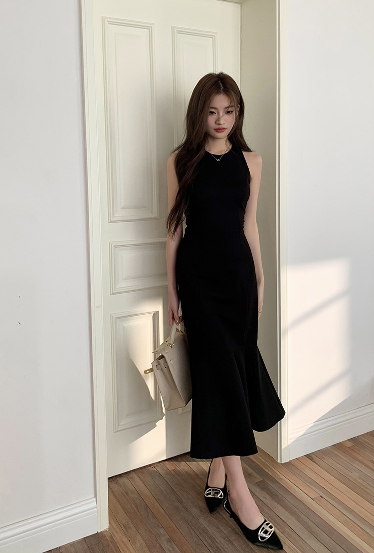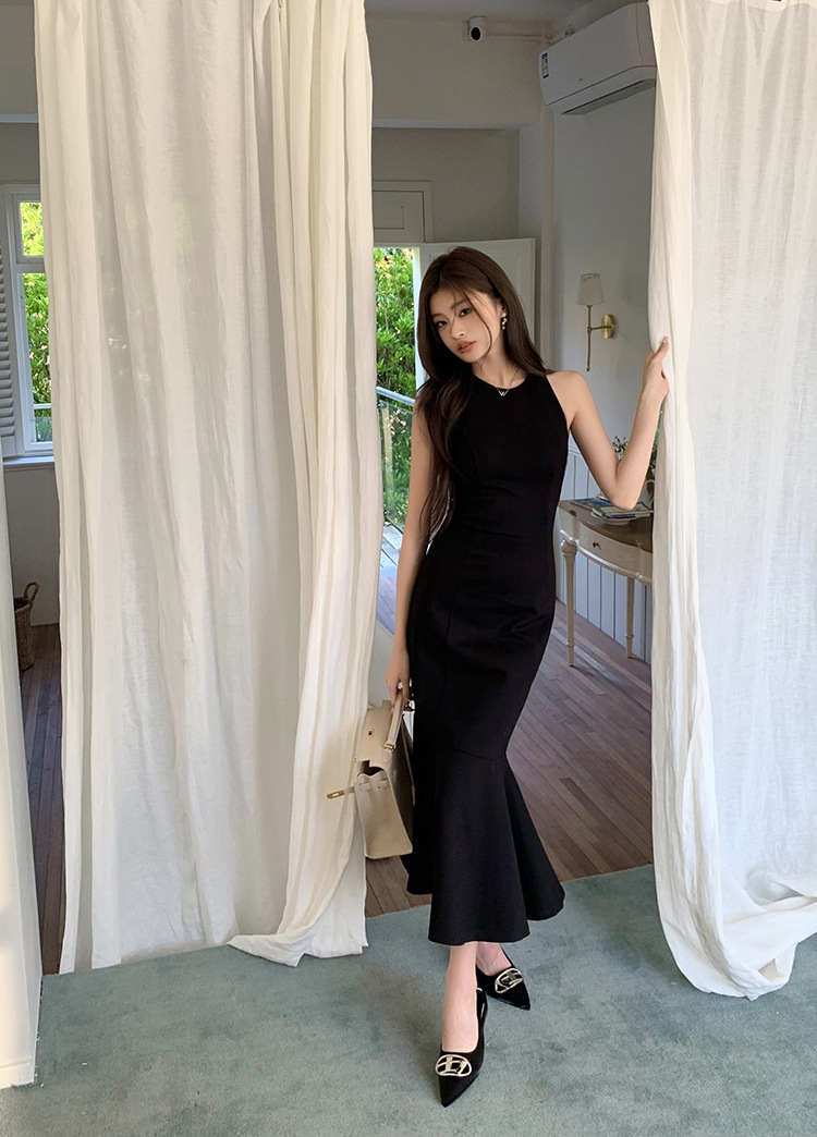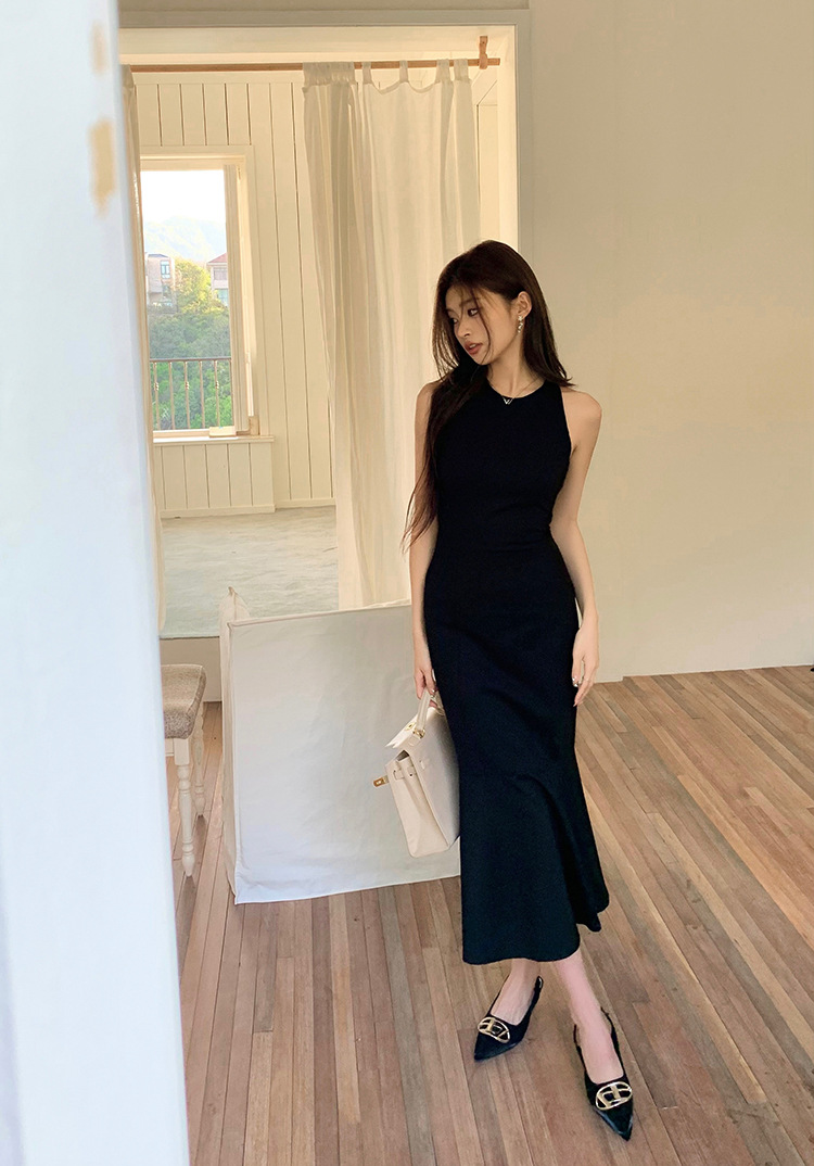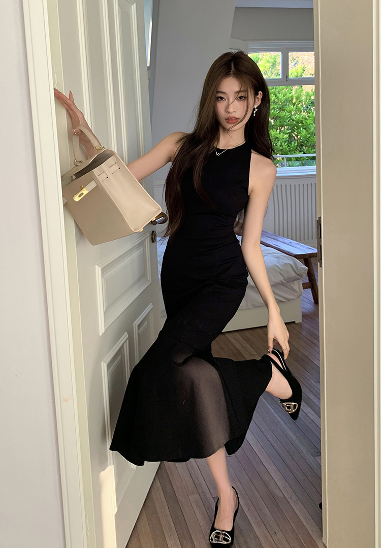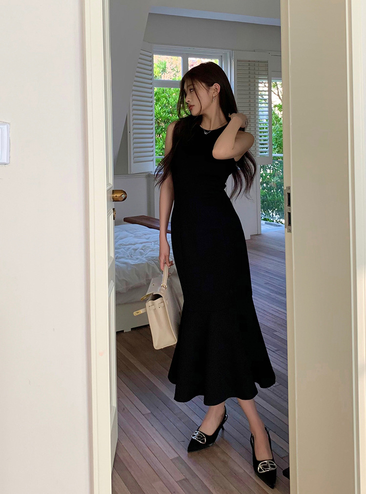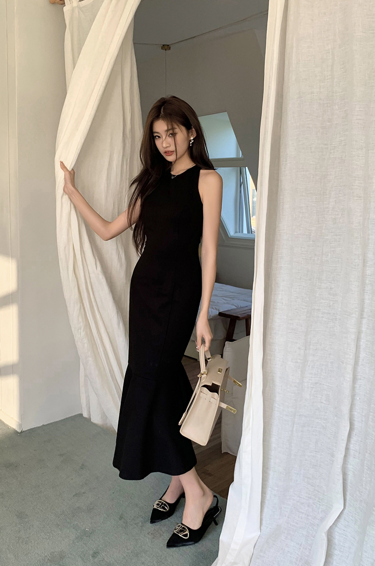 JMA-762 法式气质小黑裙气质无袖鱼尾包臀裙收腰连衣裙女