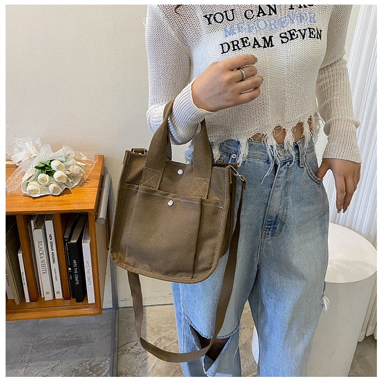 JM-1167 帆布小包包女生单肩小方包夏季手提包学生纯色休闲日系斜挎包