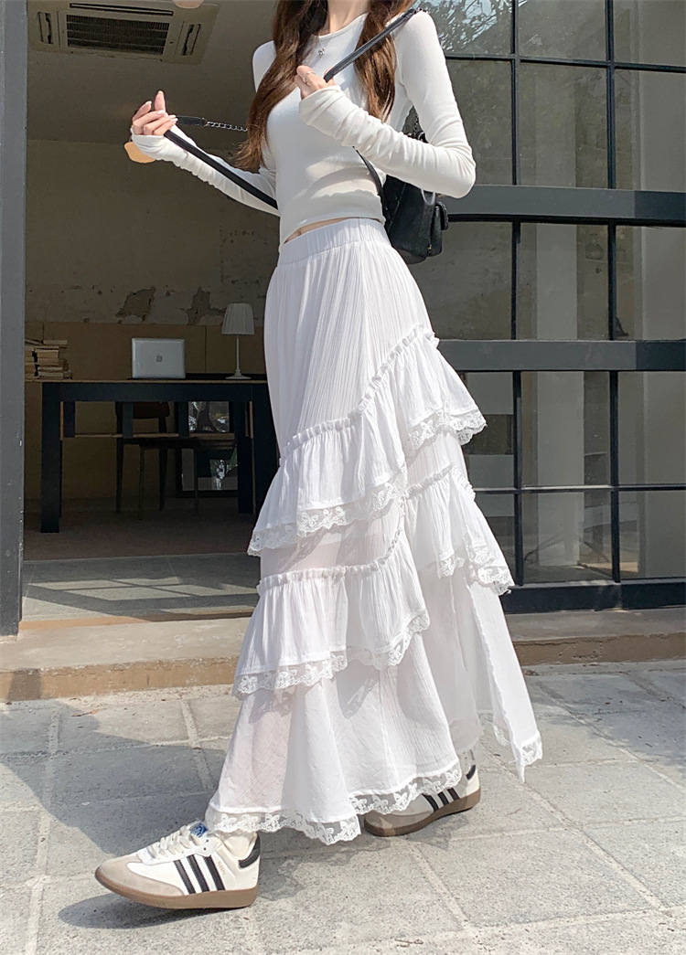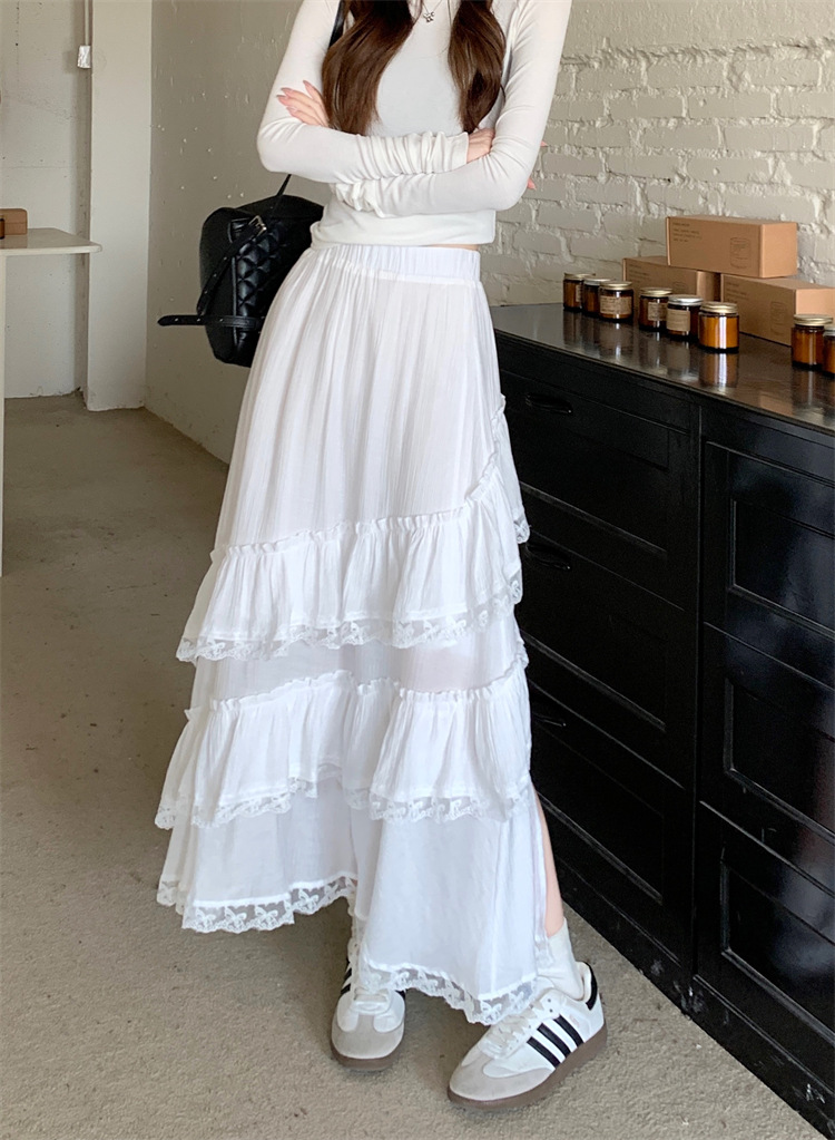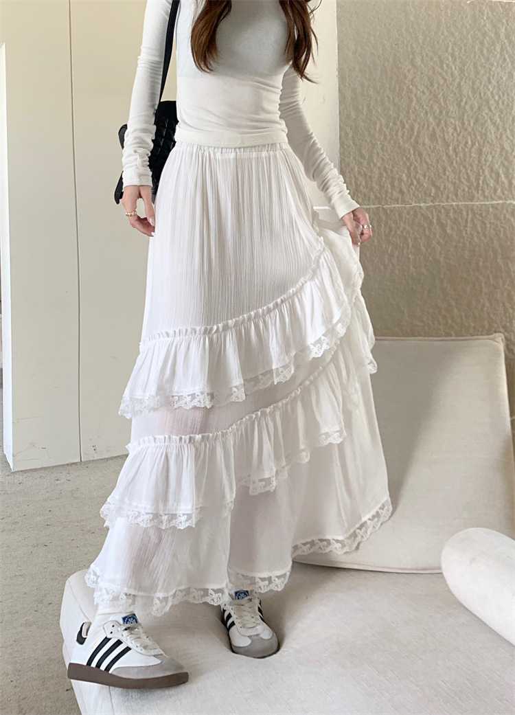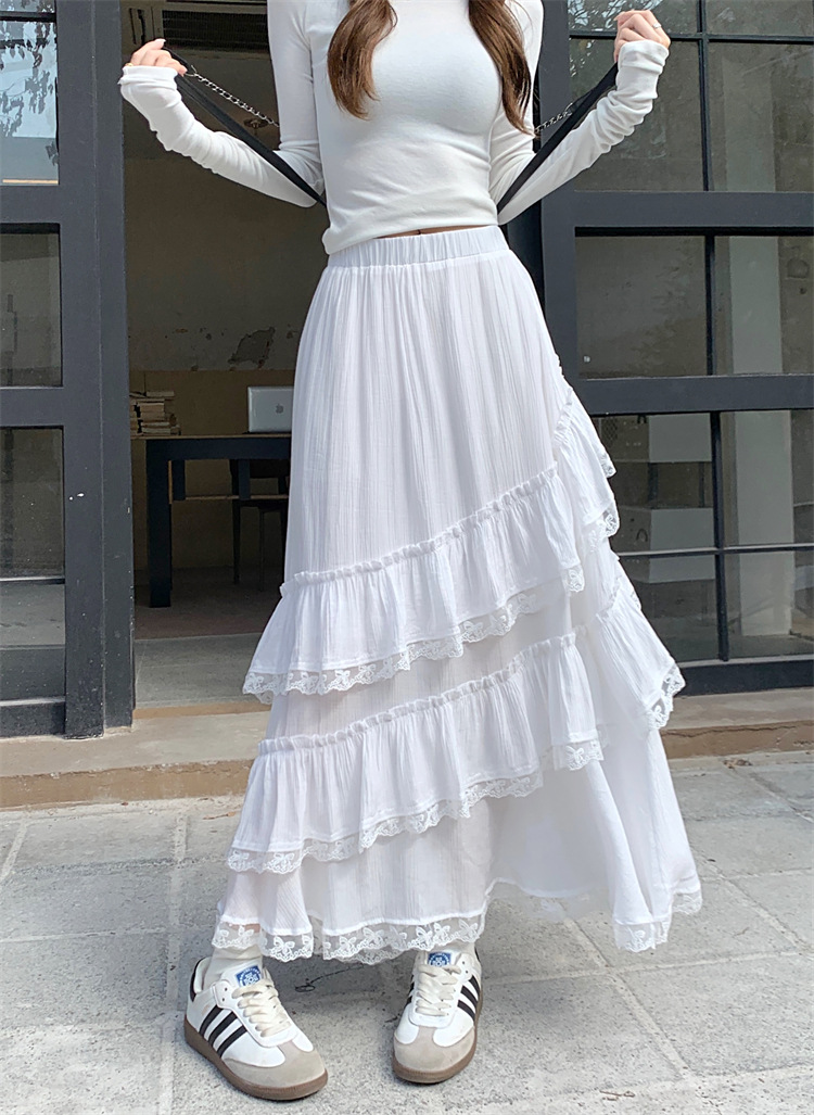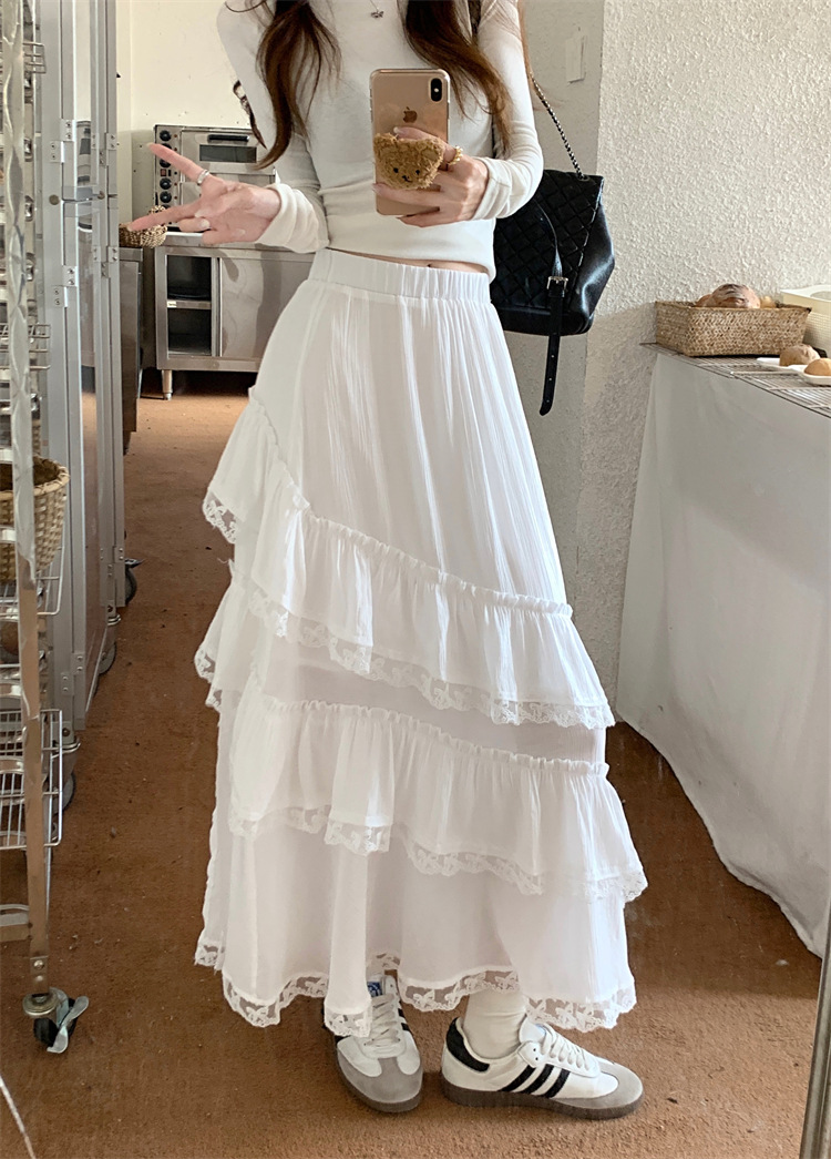 JMA-771 新款白色设计感蕾丝花边半身裙女高腰气质蛋糕中长裙