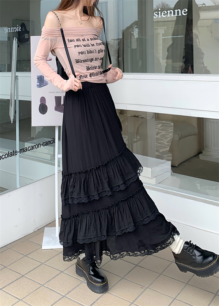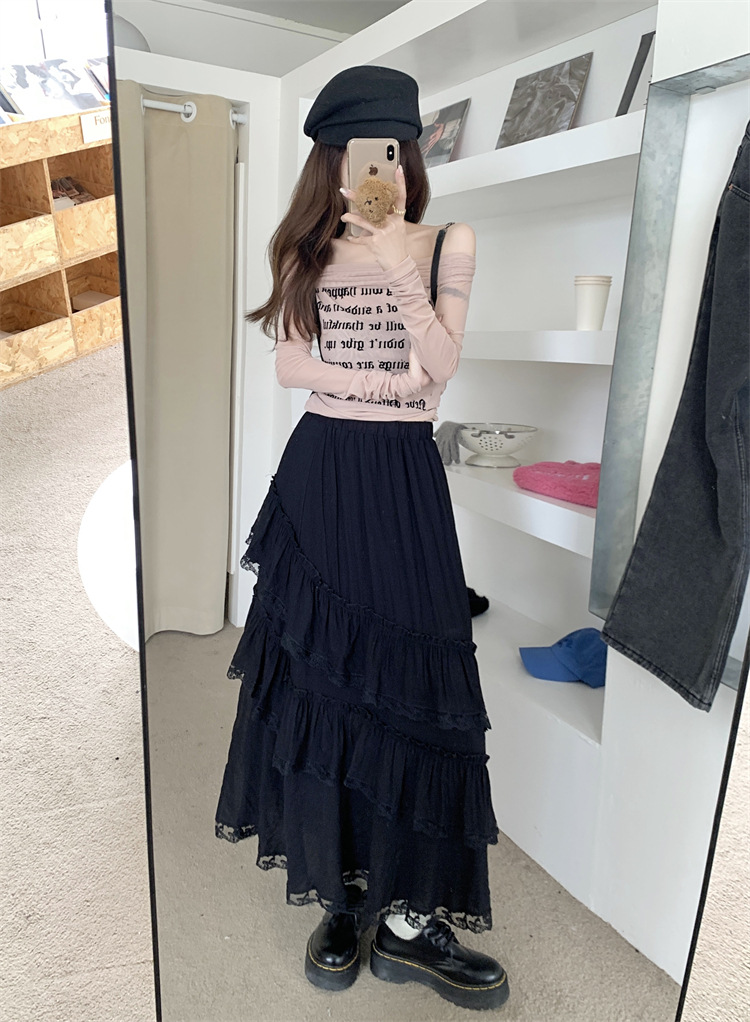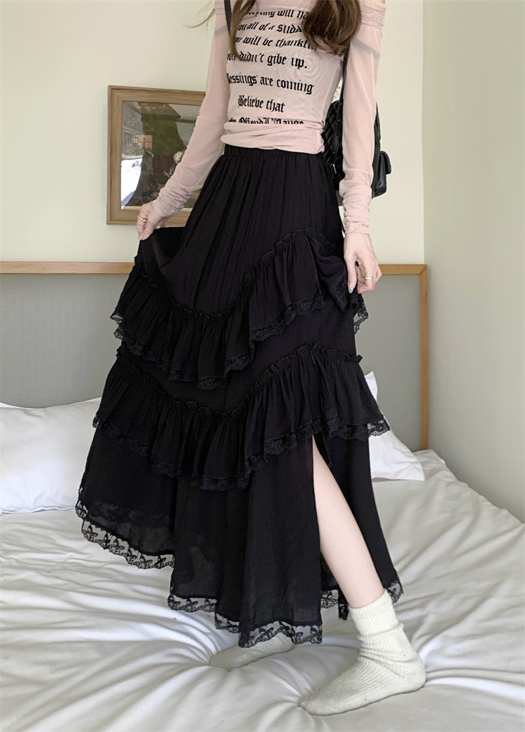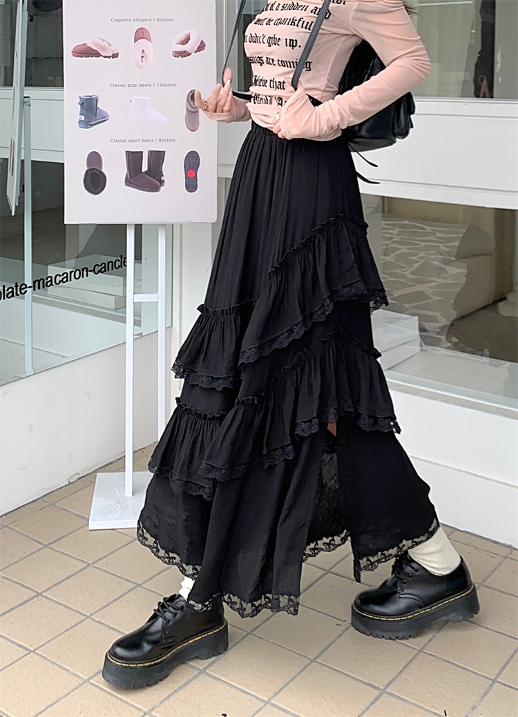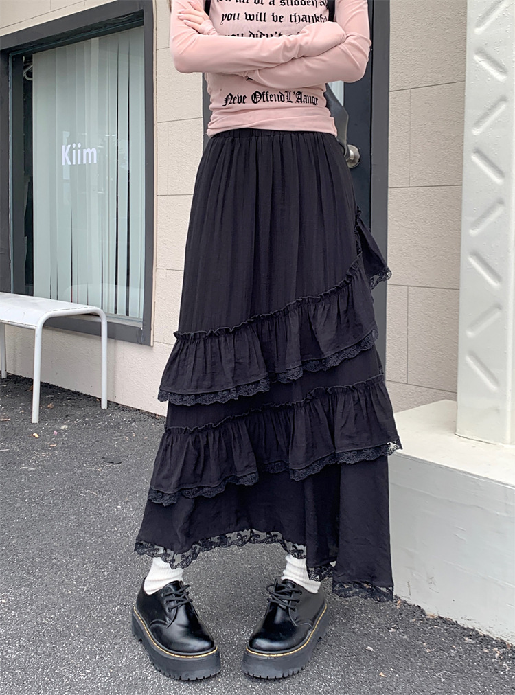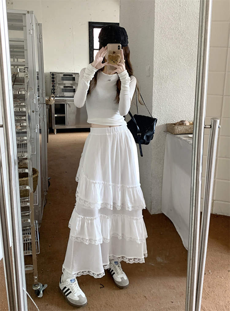 JMA-771 新款白色设计感蕾丝花边半身裙女高腰气质蛋糕中长裙