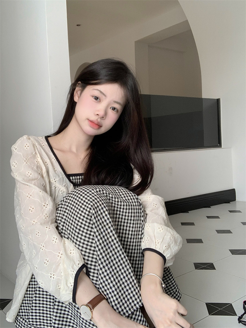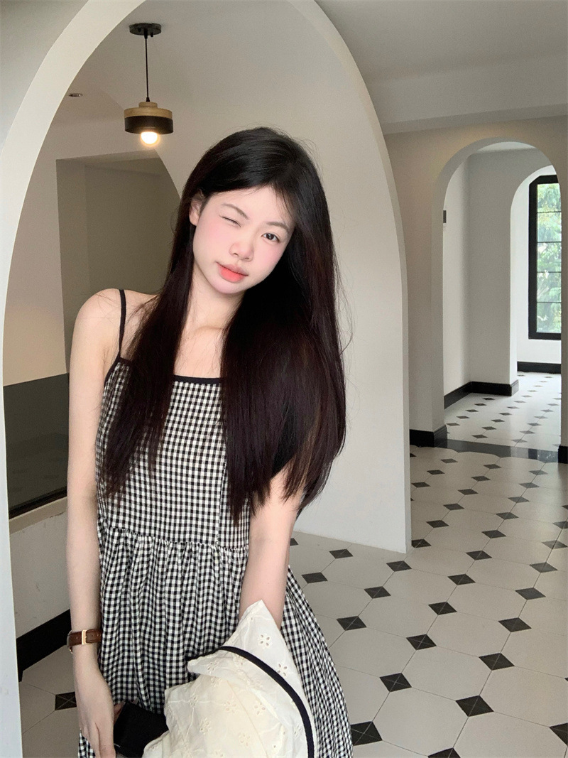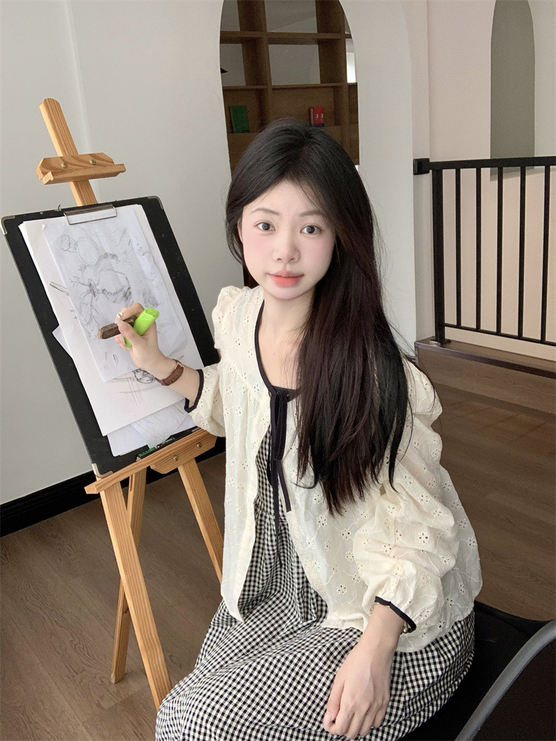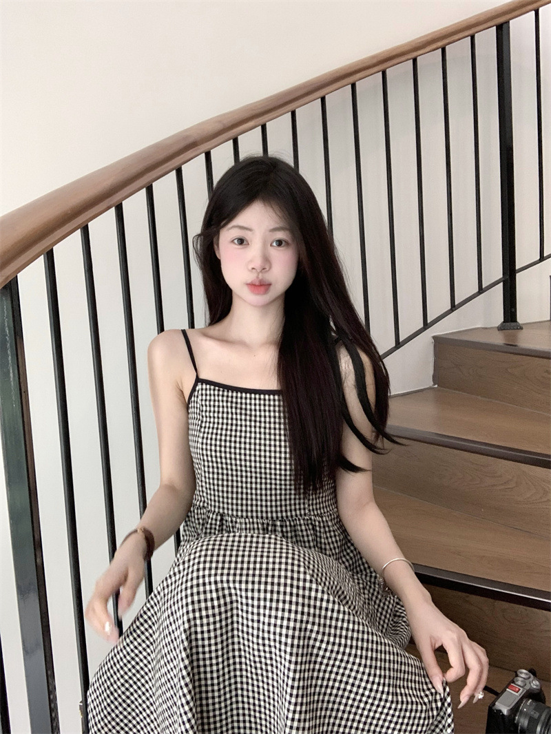JMA-798 韩系甜美小清新格子吊带裙打底连衣裙+蕾丝防晒开衫