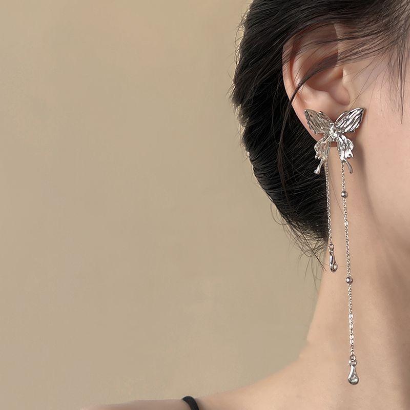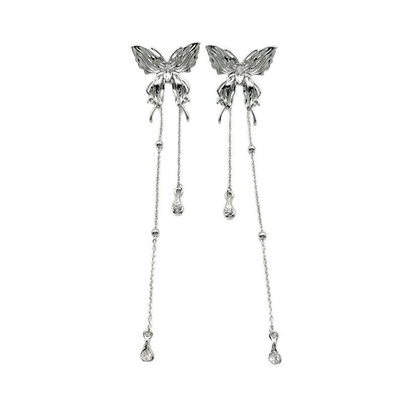 JME-771 银针超仙锆石蝴蝶珍珠流苏耳环个性气质冷淡风耳坠小众设计耳饰女