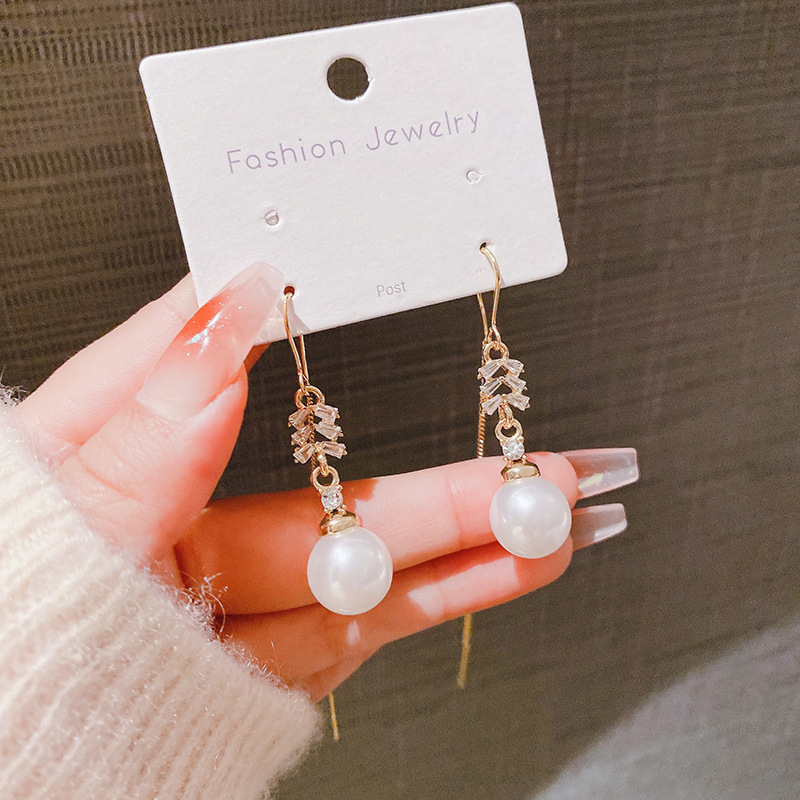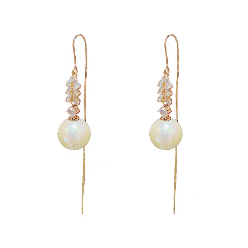 JME-772 新款潮精致时尚微镶锆石珍珠流苏耳线女网红个性显瘦耳饰