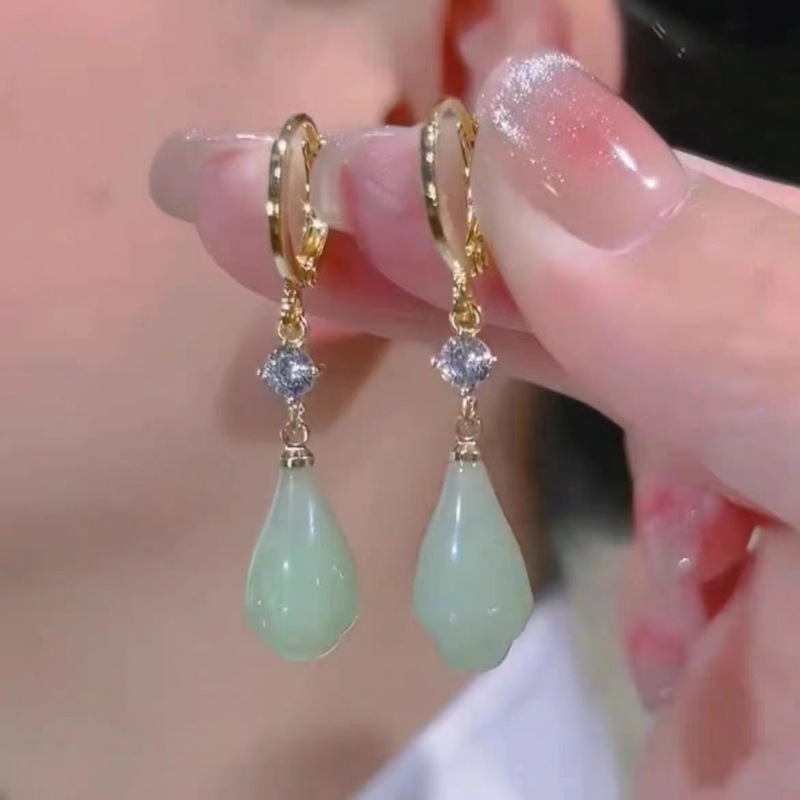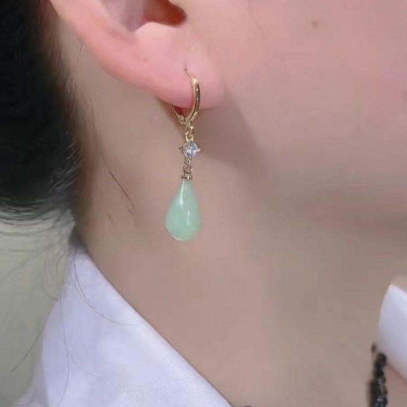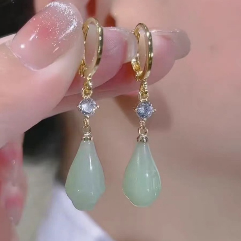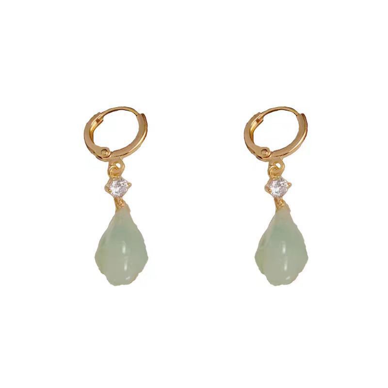JME-779 新中式绿色玉兰花水滴流苏耳坠 新款耳环古风时尚气质优雅耳饰