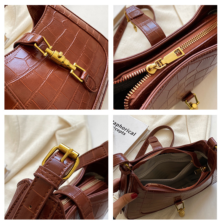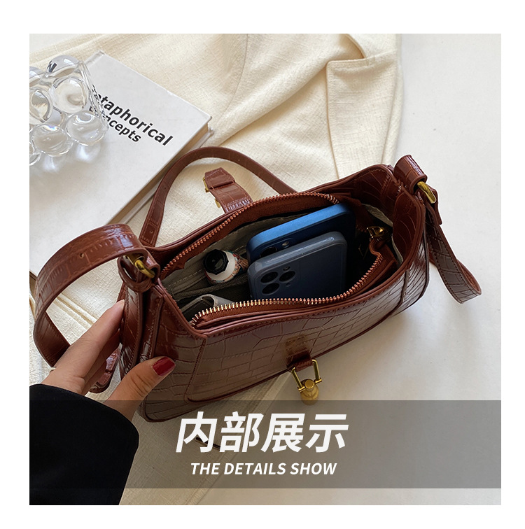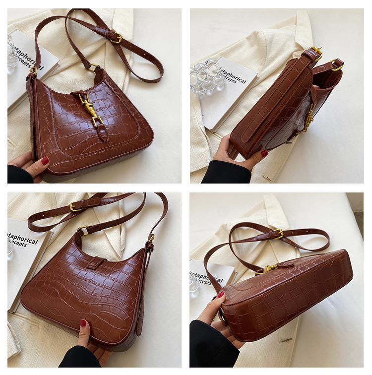 JM-1192 新款冬季韩版小众简约单肩通勤包包女士复古鳄鱼纹时尚斜挎包