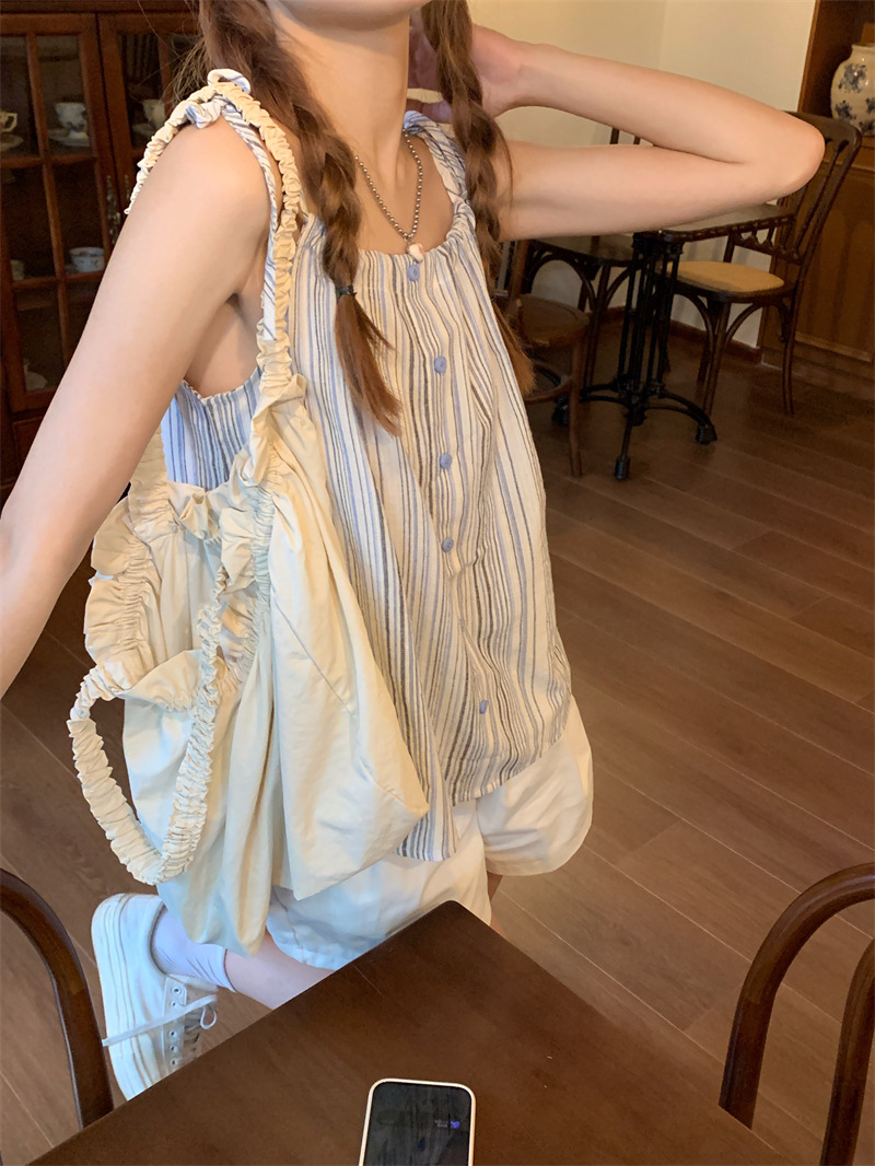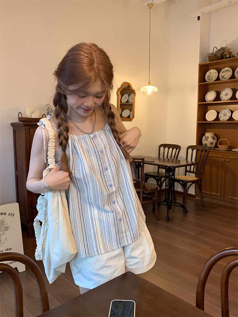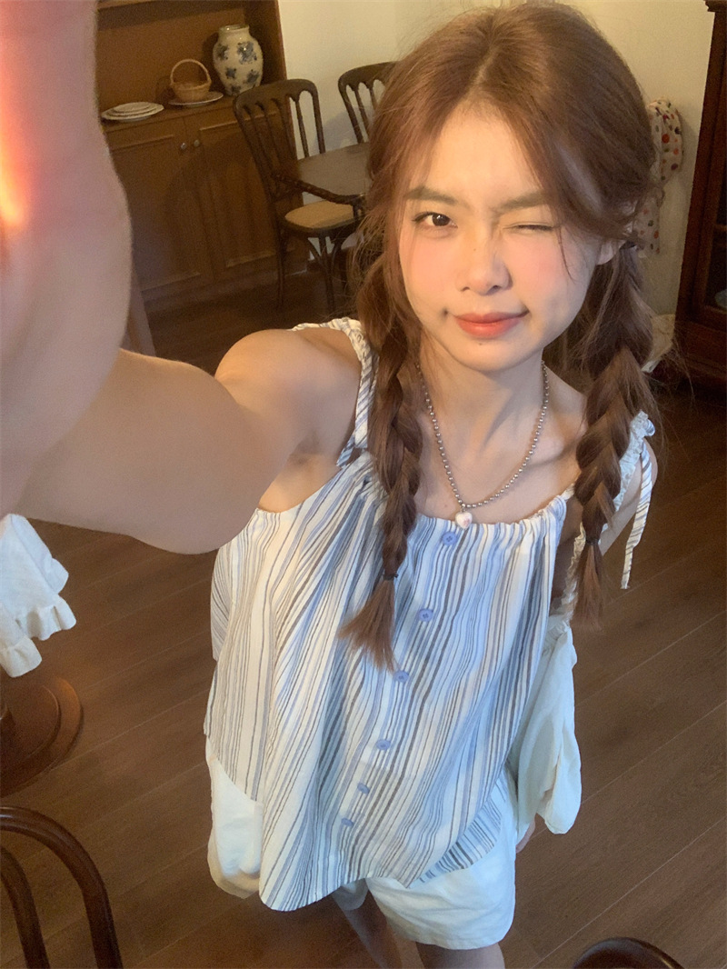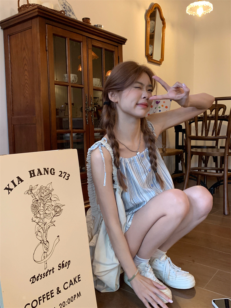 JMA-807 实拍新款韩版泰式条纹绑带小吊带女外穿辣妹吊带背心上衣
