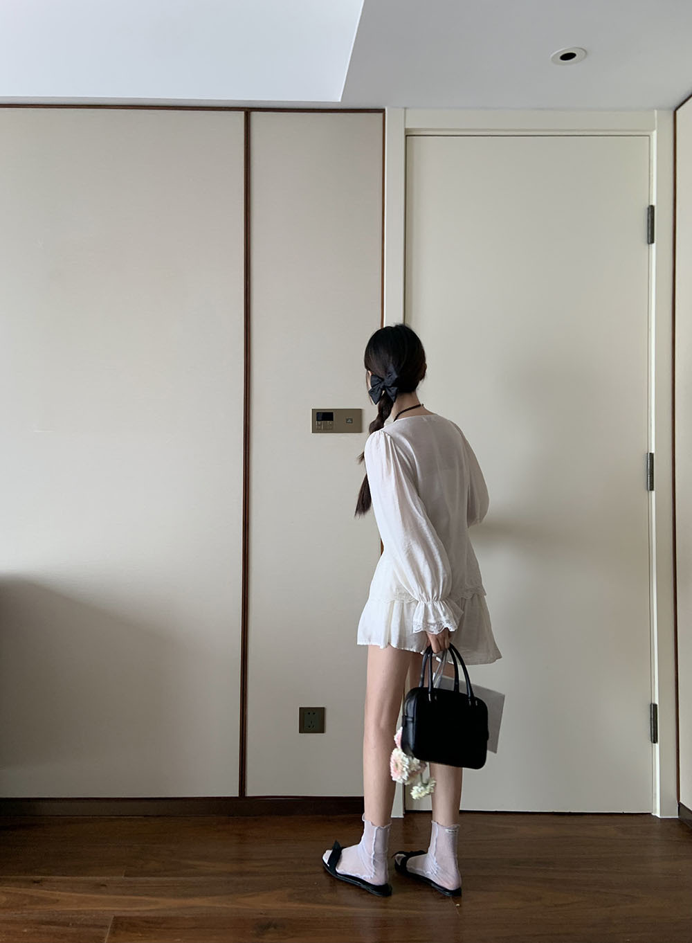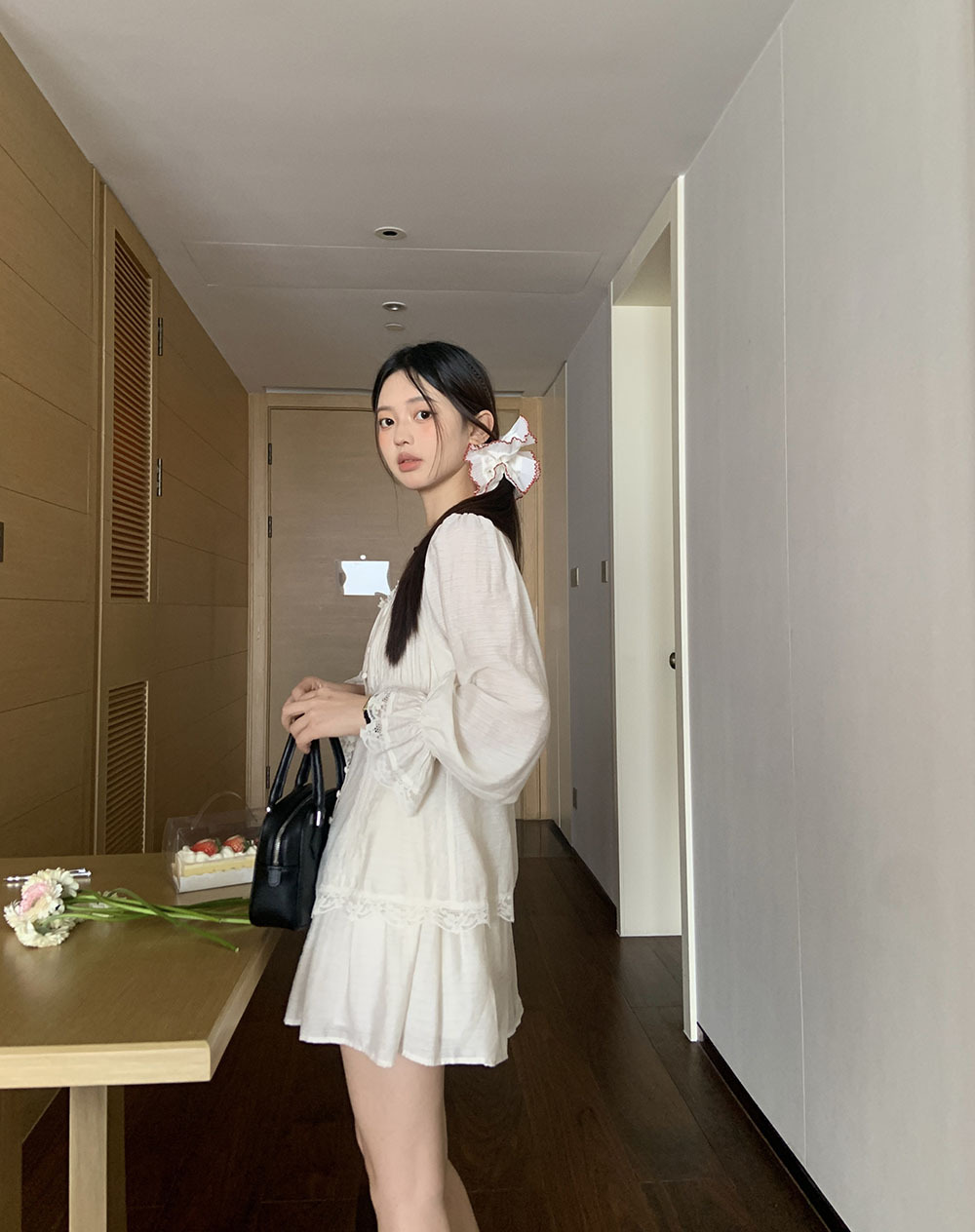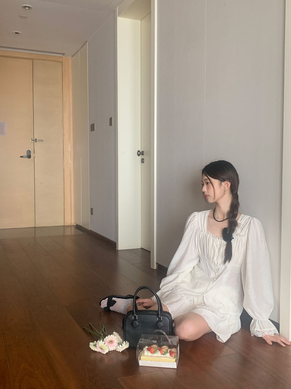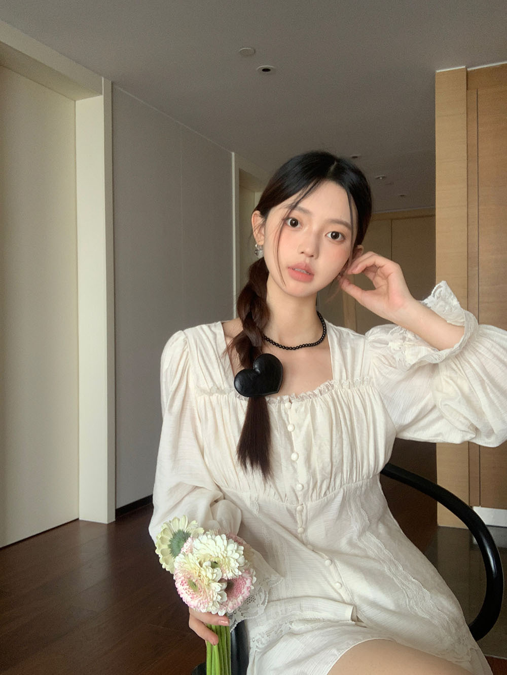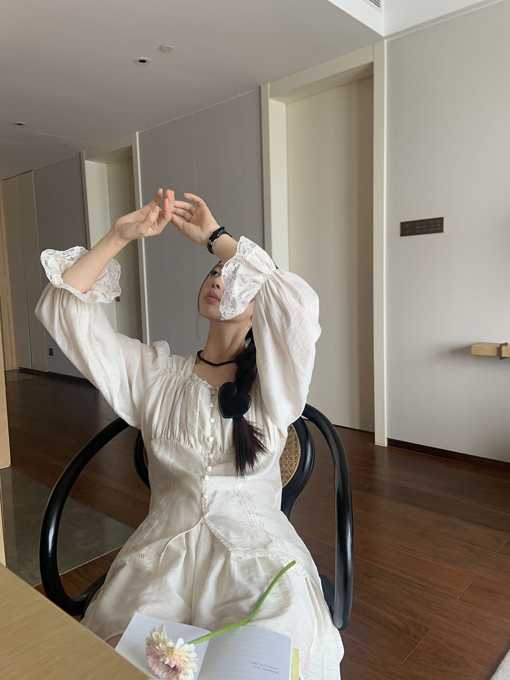 JMA-809 法式复古小众甜美蕾丝方领收腰衬衫+纯色显瘦休闲短裤套装