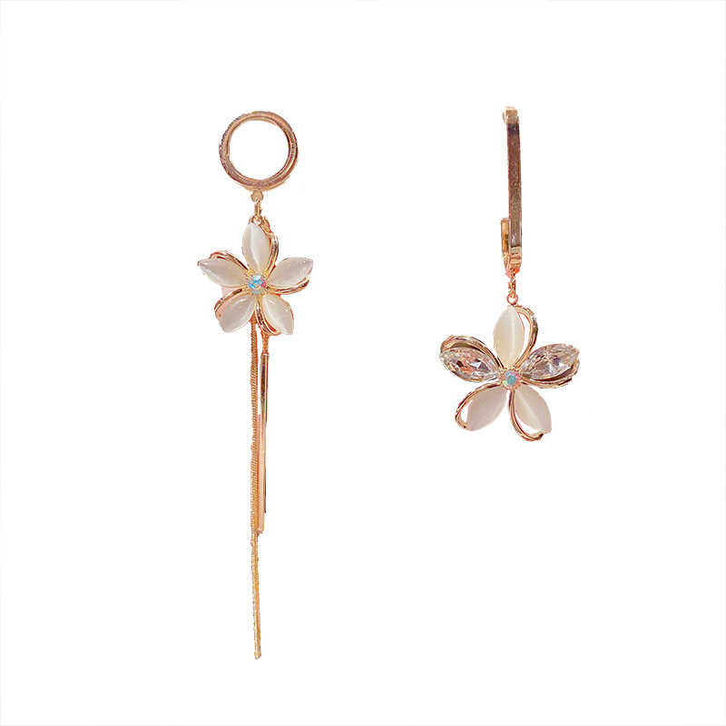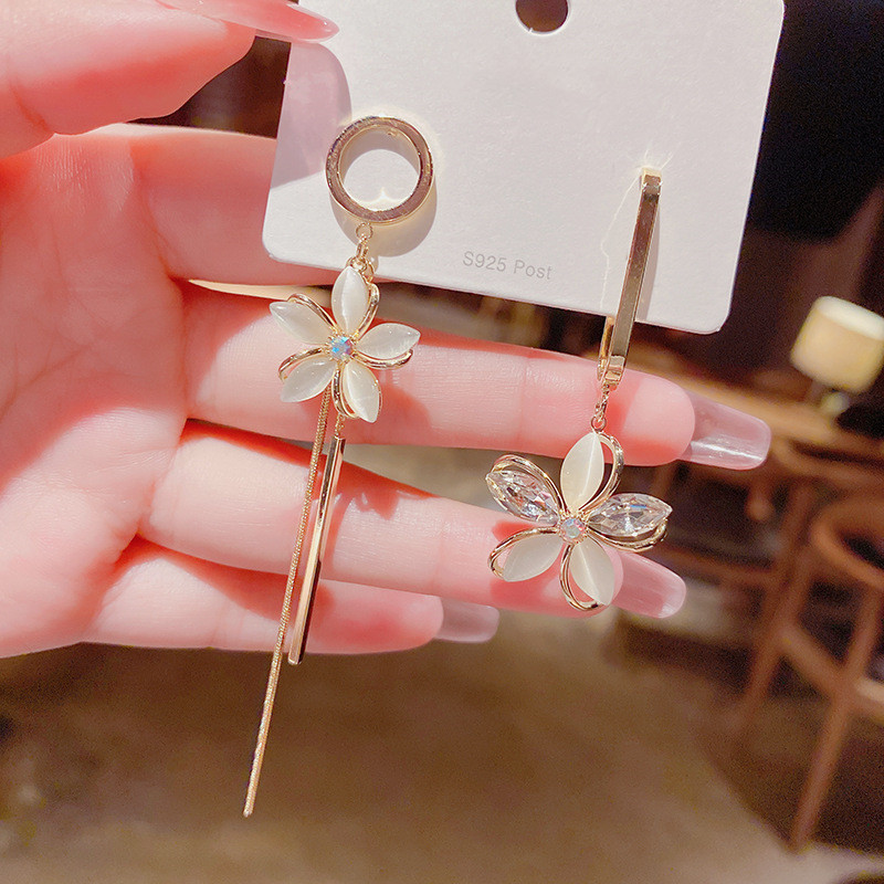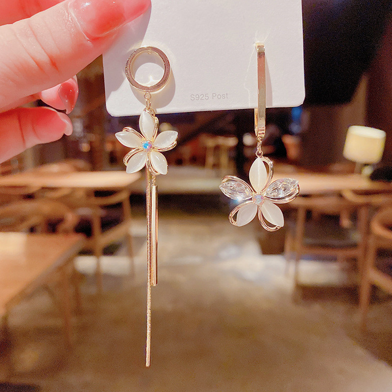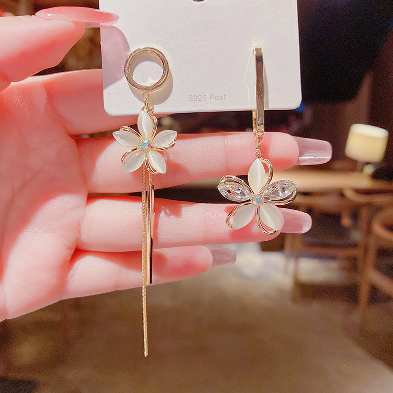 JME-785 s925银针猫眼石花瓣耳环韩国气质个性ab款花朵流苏耳坠长款耳饰女