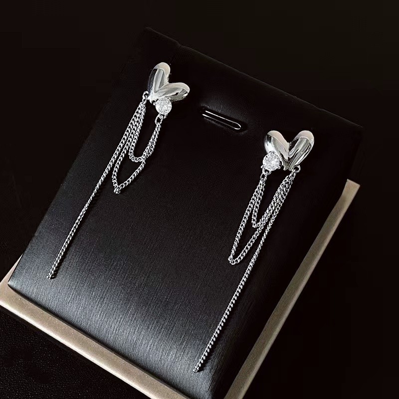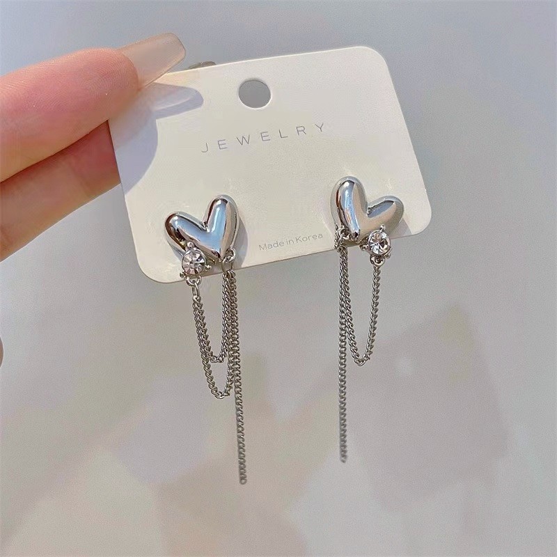 JME-796 S925银针韩国简约爱心流苏链条耳环2024新款潮小众设计感耳钉耳饰