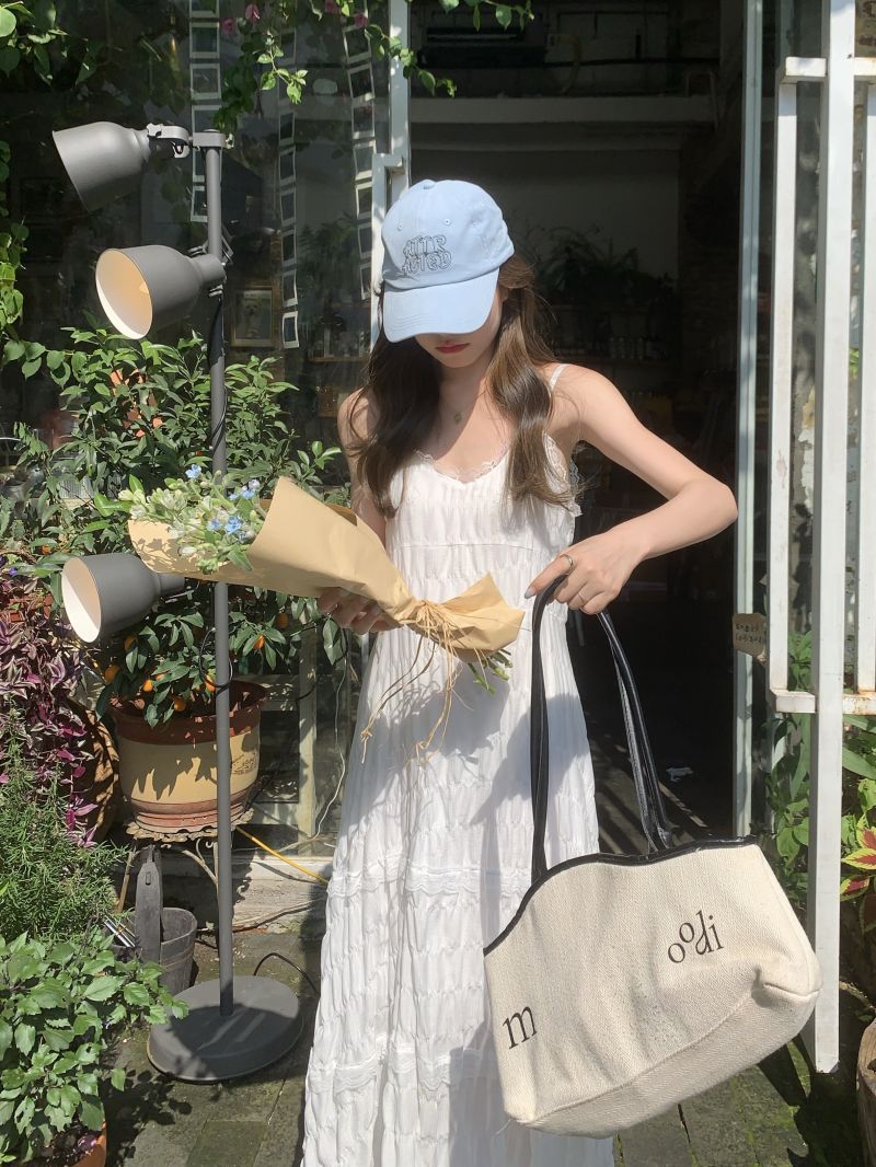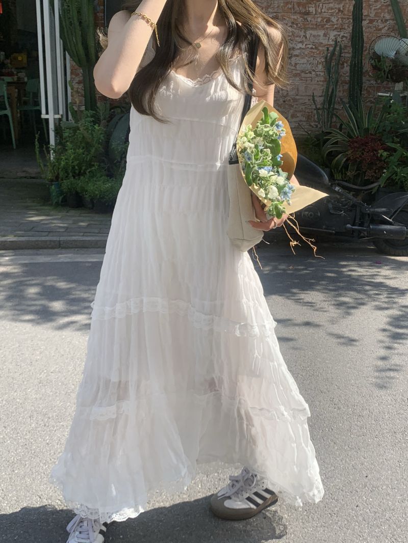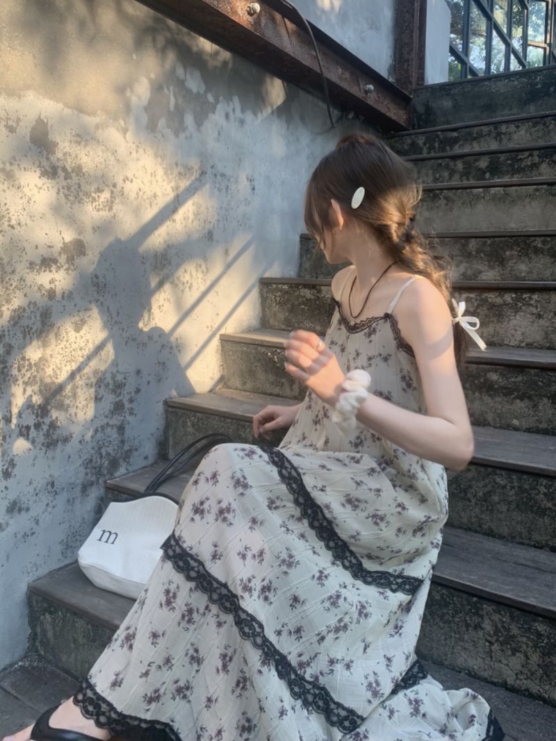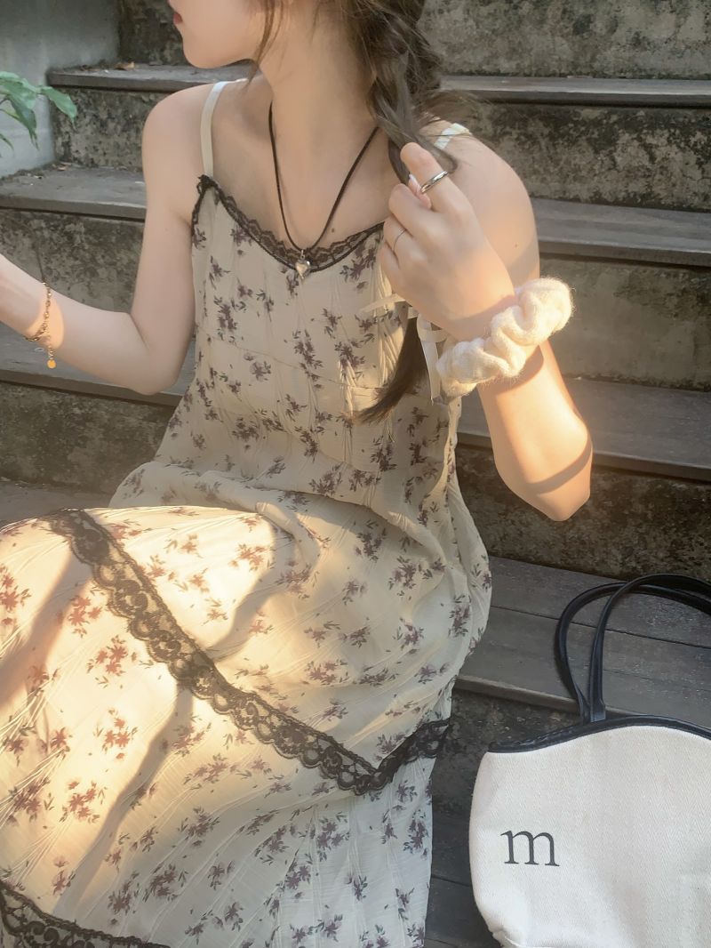 JMA-823 实拍 夏季新款法式度假风碎花V领蕾丝吊带裙中长仙女裙蛋糕裙