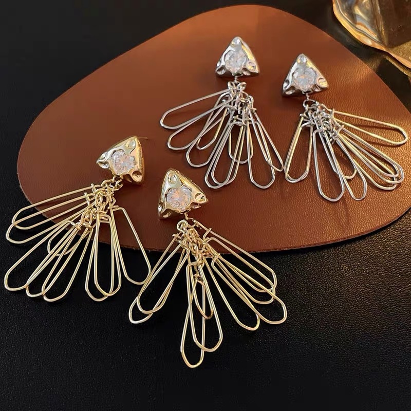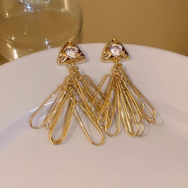 JME-801 欧美时尚个性金属三角流苏耳环冷淡风百搭流苏耳环设计高级感耳饰