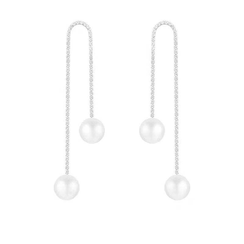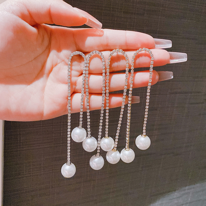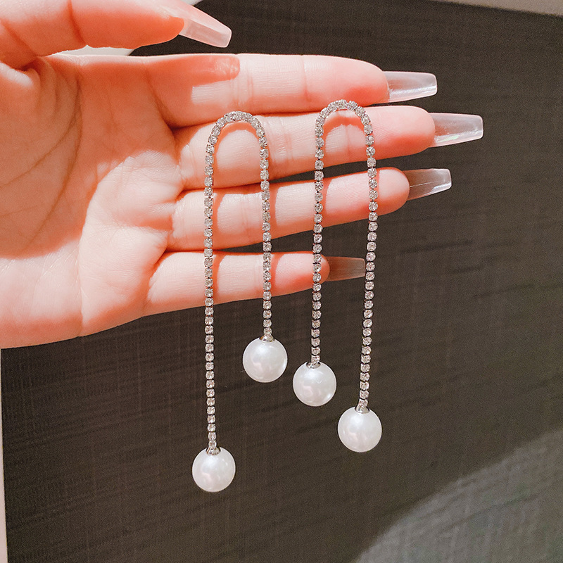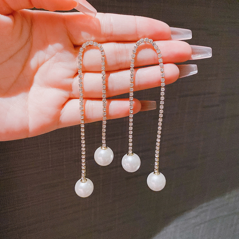 JME-804 高级感简约流苏超闪珍珠耳环时尚大气满钻珍珠耳坠气质百搭耳饰女