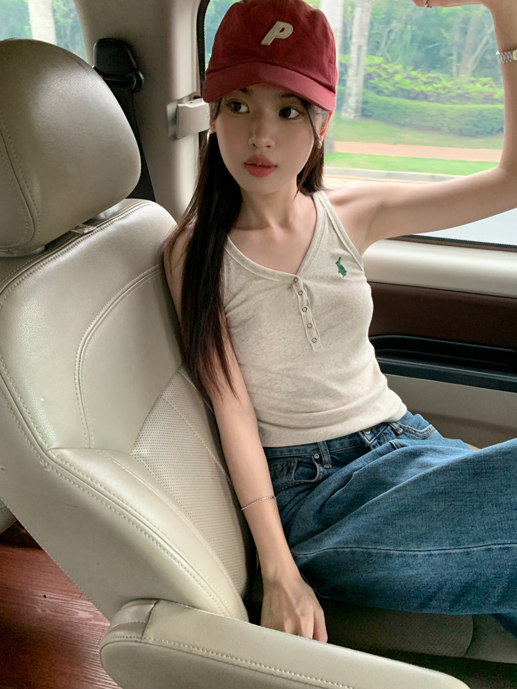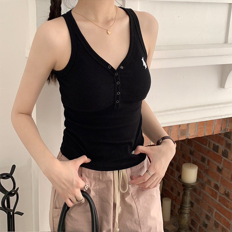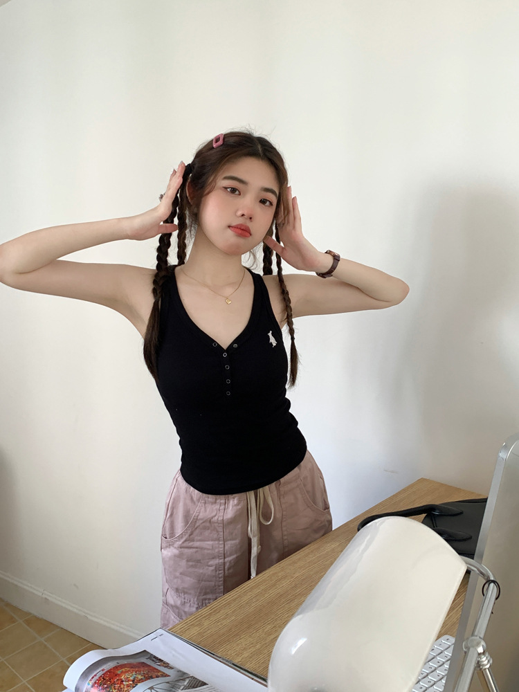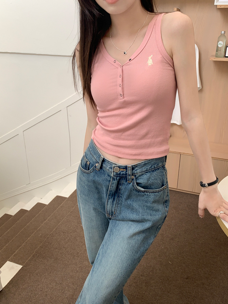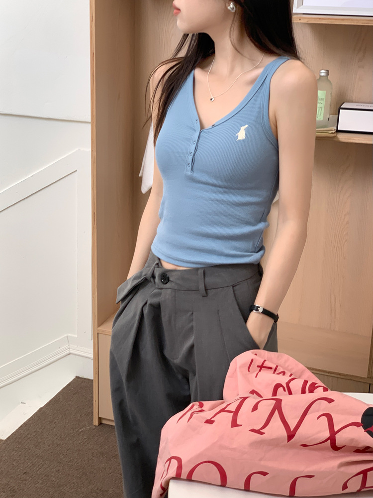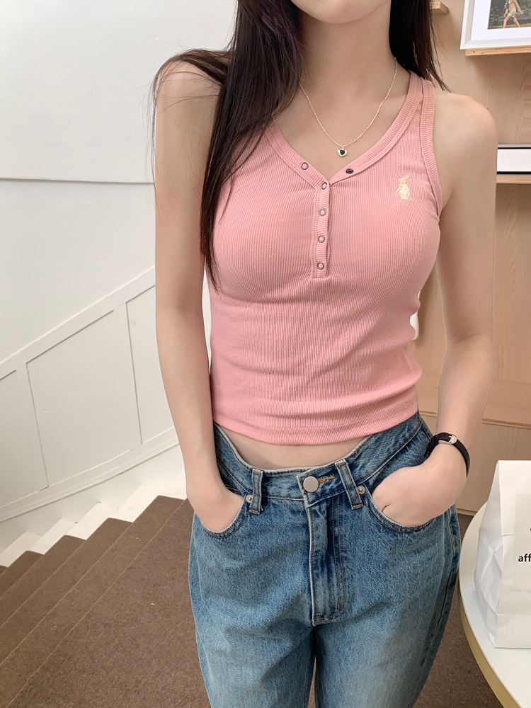 JMA-835 韩版甜辣纯欲风小兔子刺绣吊带夏季半开领V领修身显瘦外穿背心