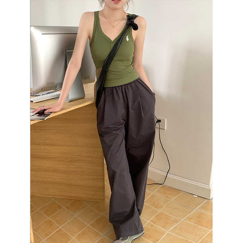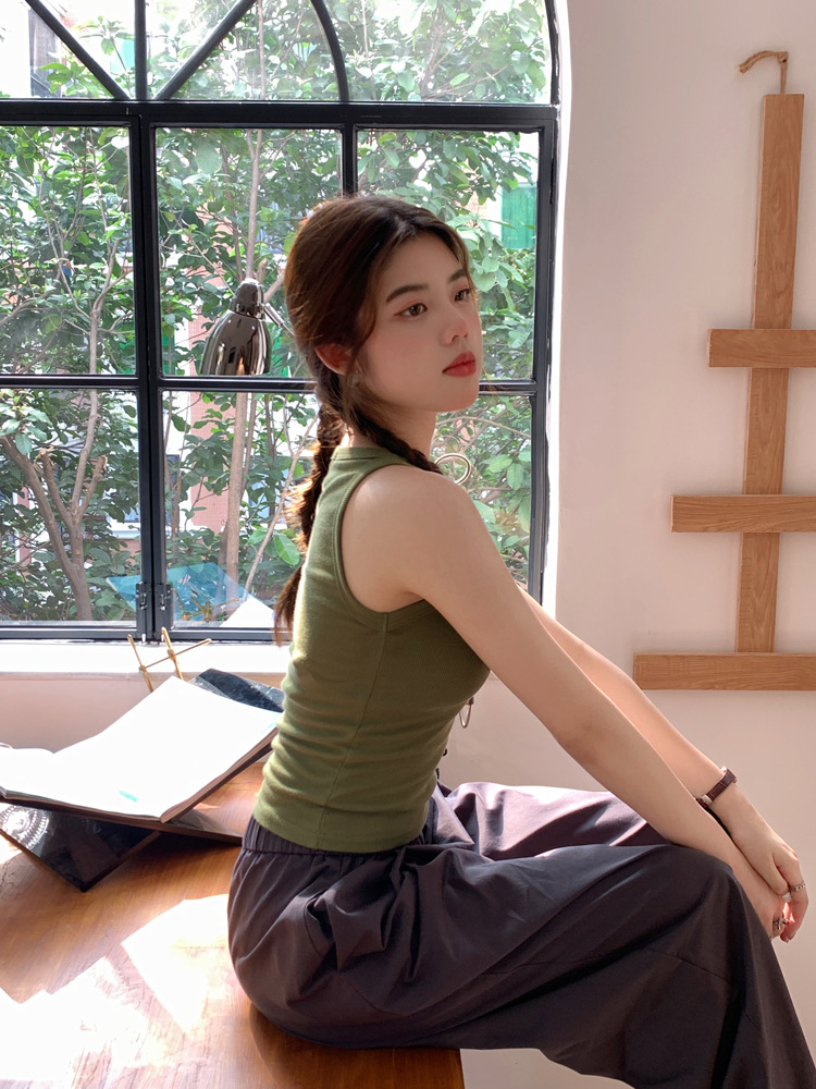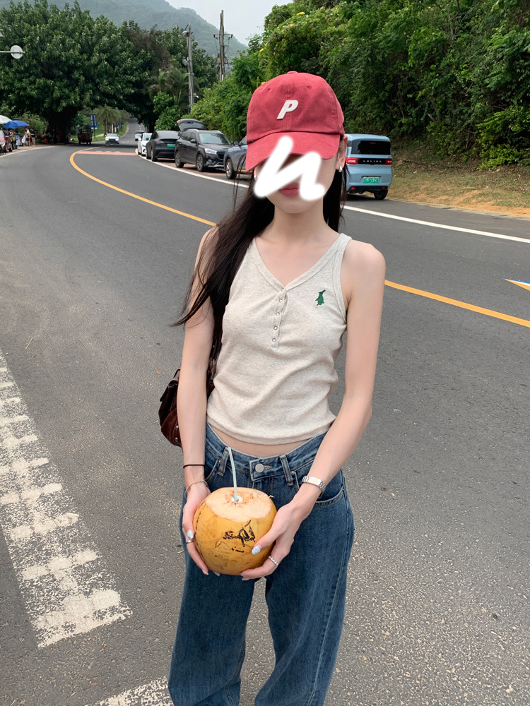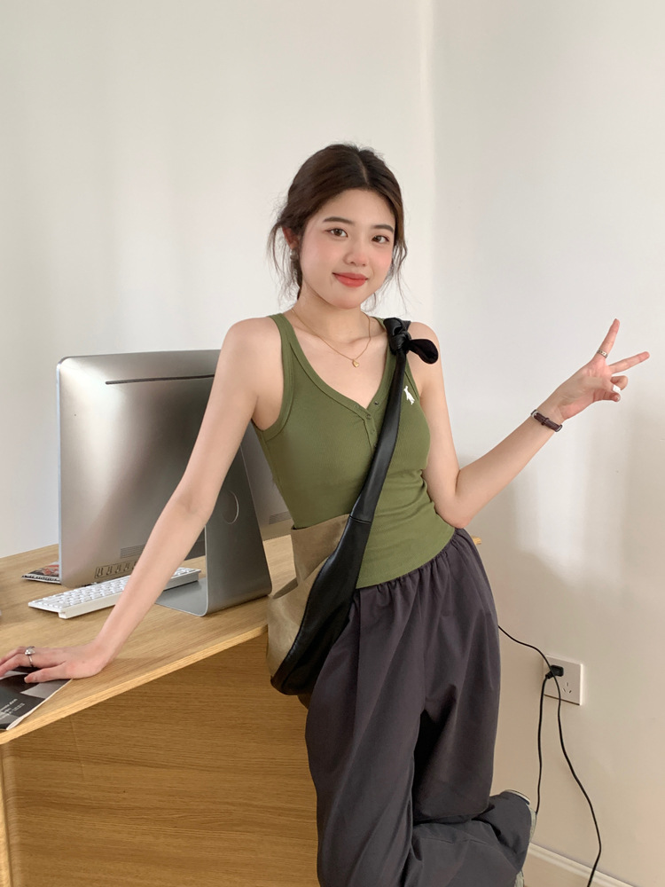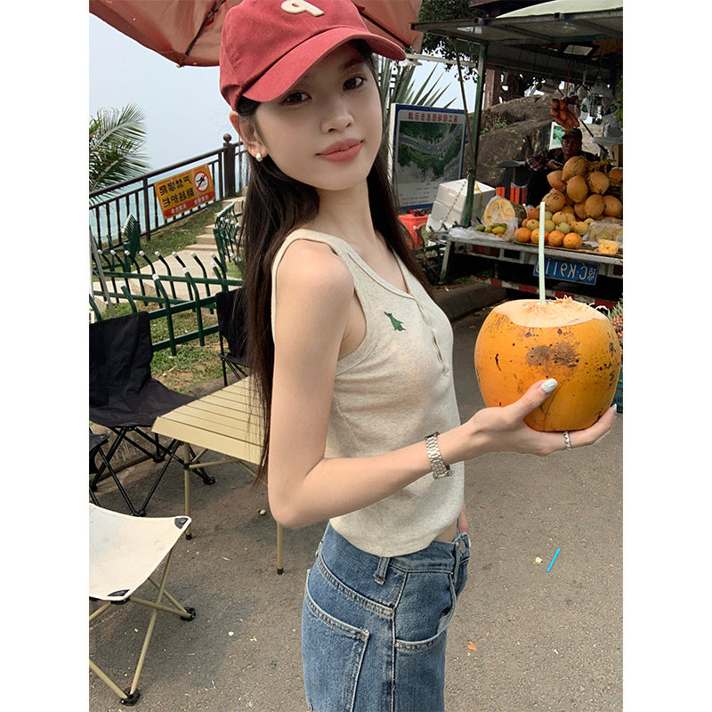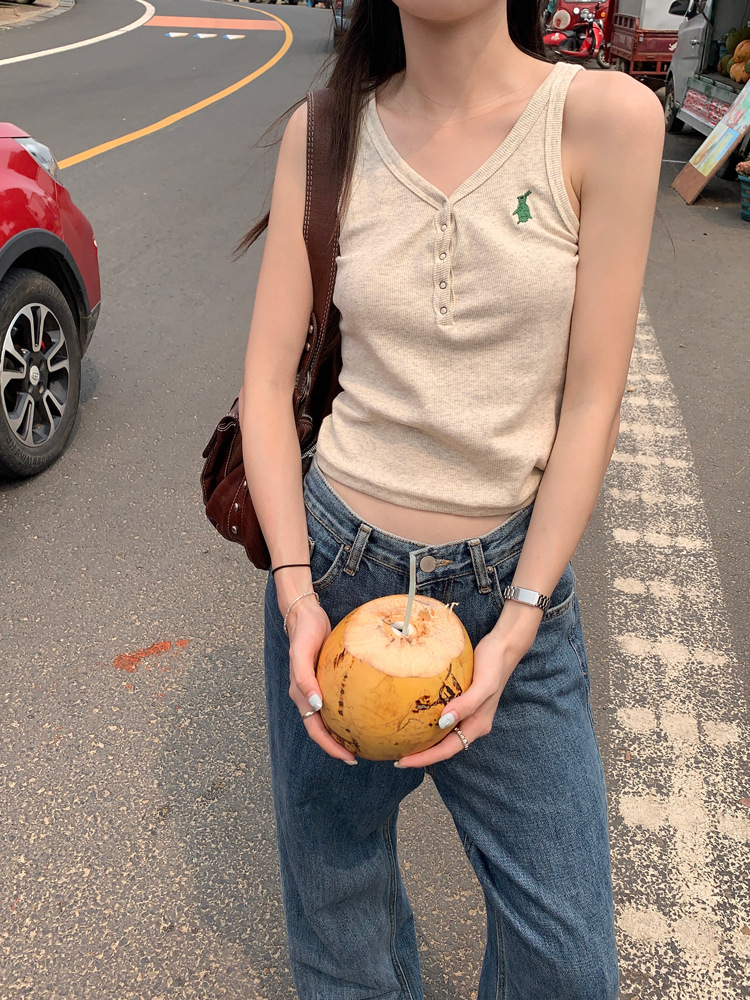 JMA-835 韩版甜辣纯欲风小兔子刺绣吊带夏季半开领V领修身显瘦外穿背心