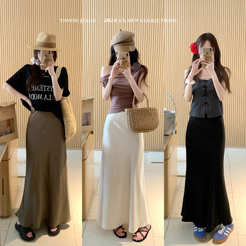 JMA-833 实拍春季新款韩版气质鱼尾裙宽松女人味半身坠感包臀长裙子