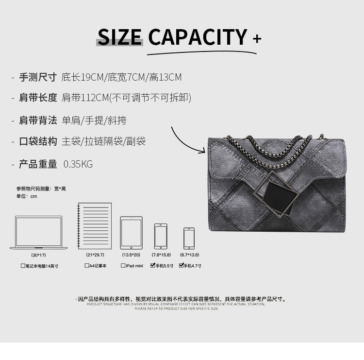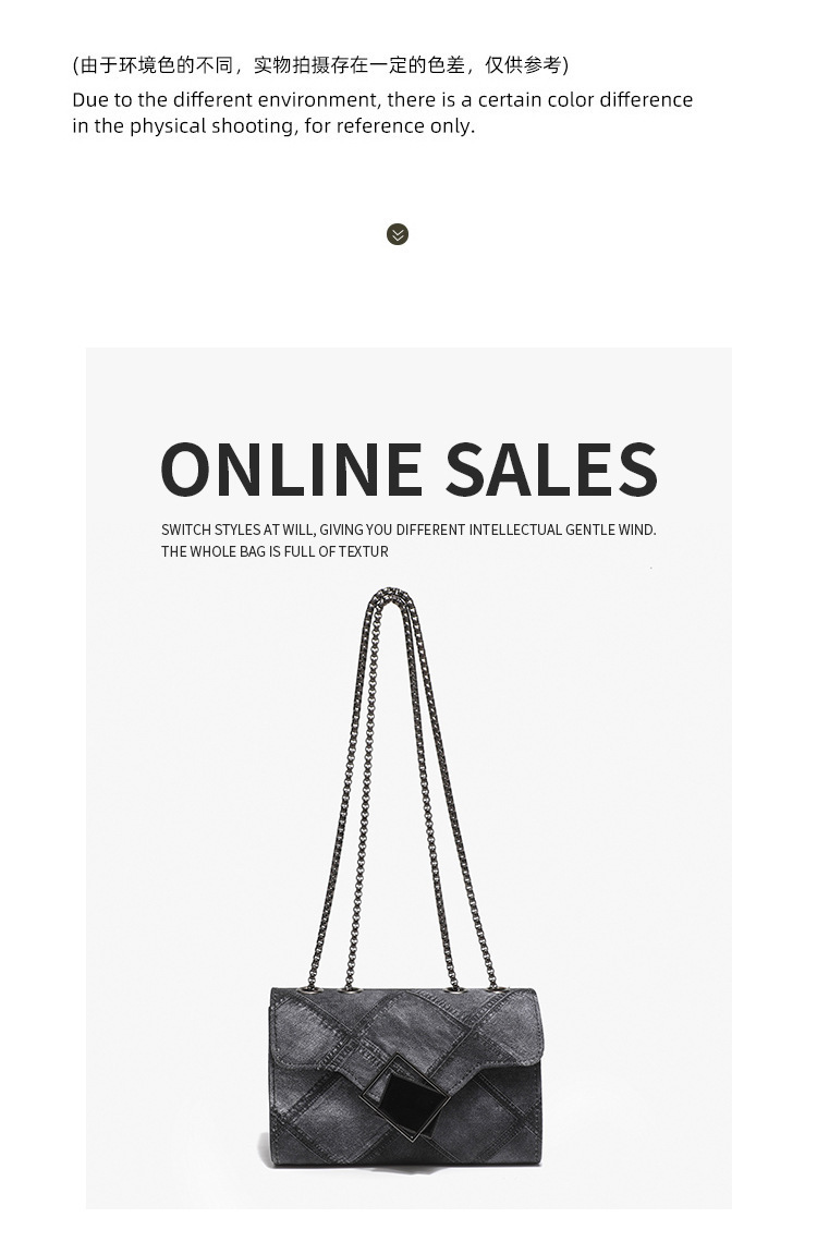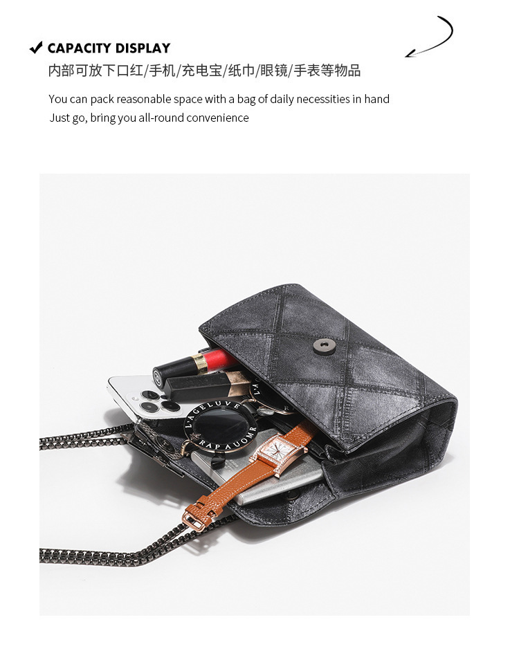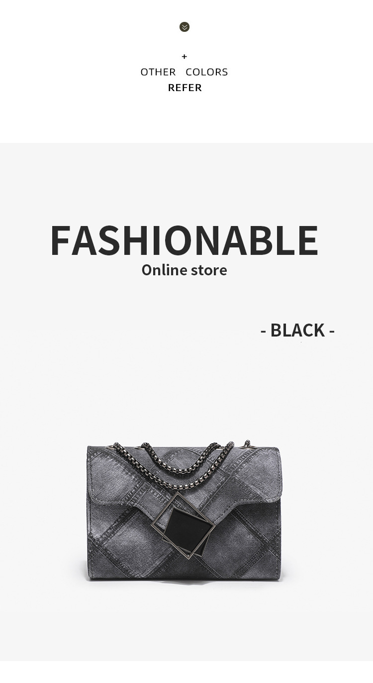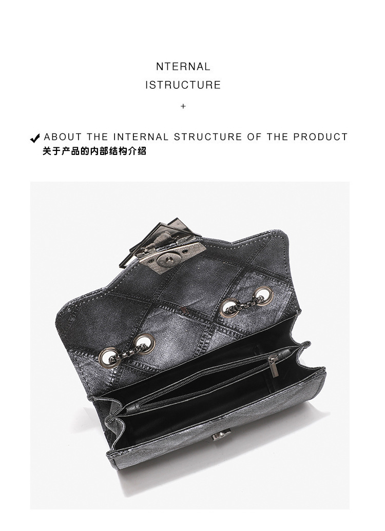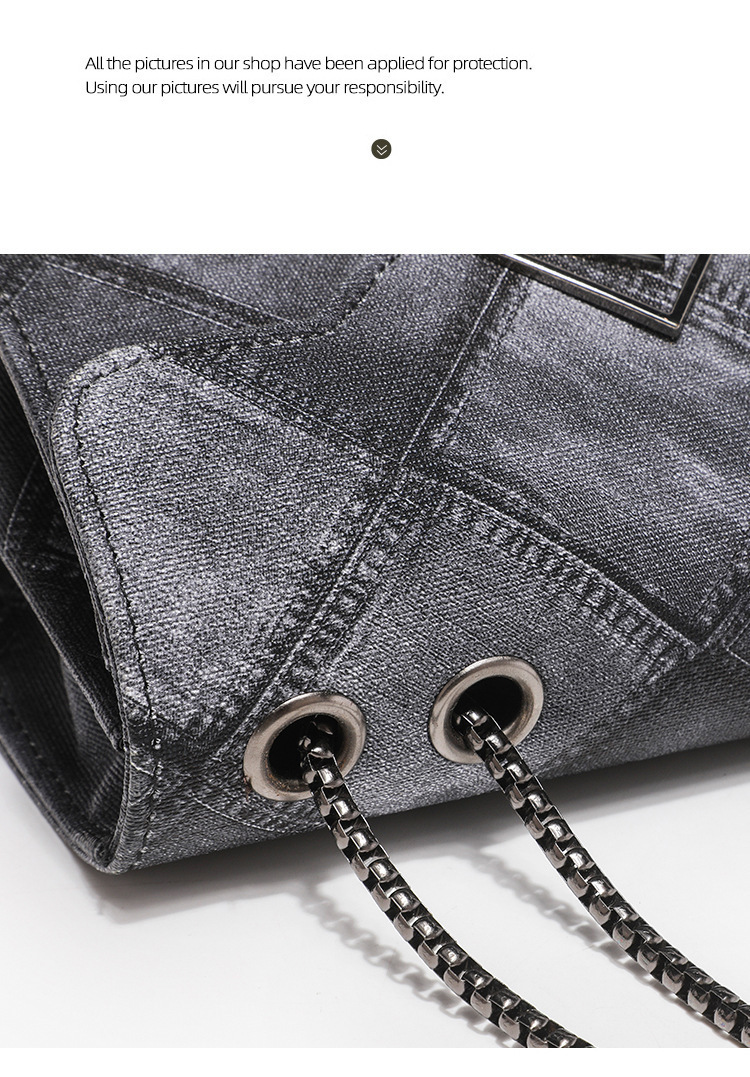 JM-1240 新款墨色系牛仔纹包包简约百搭链条斜挎包菱格压花小方包单肩