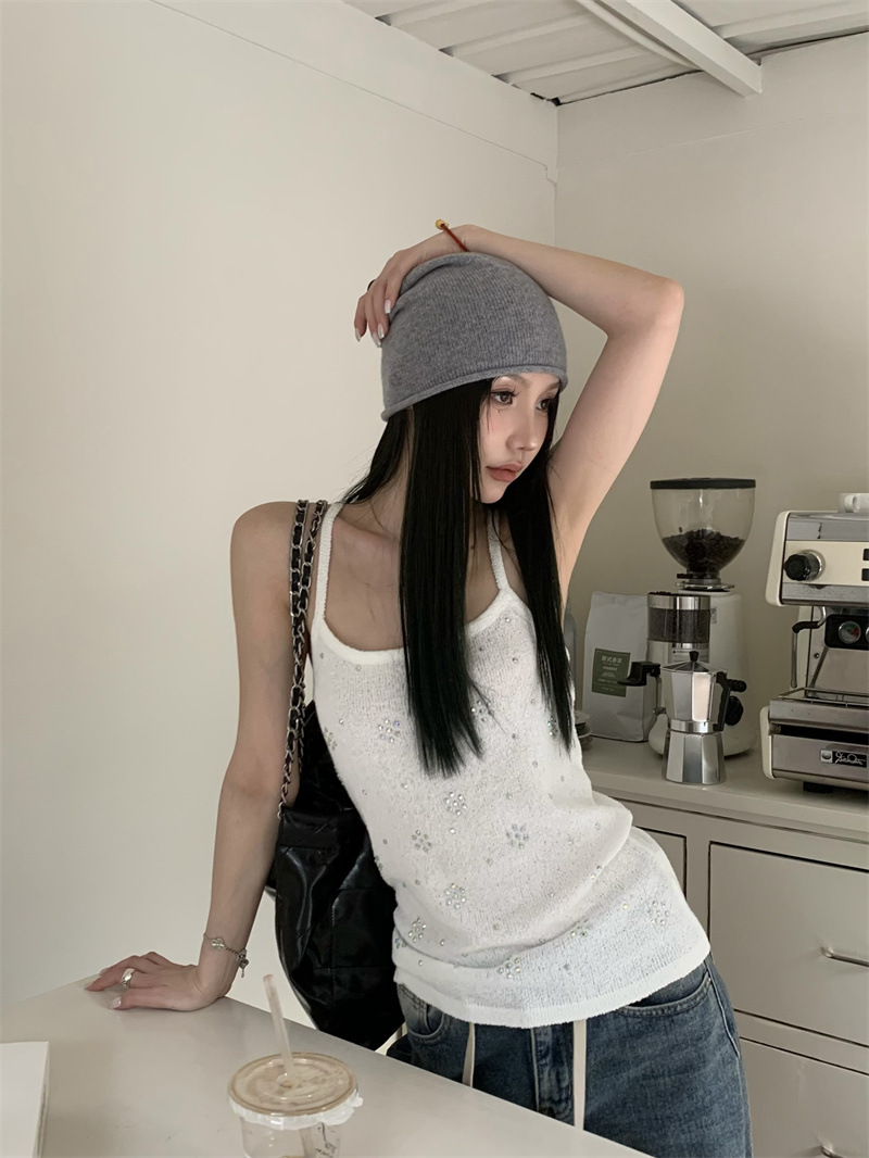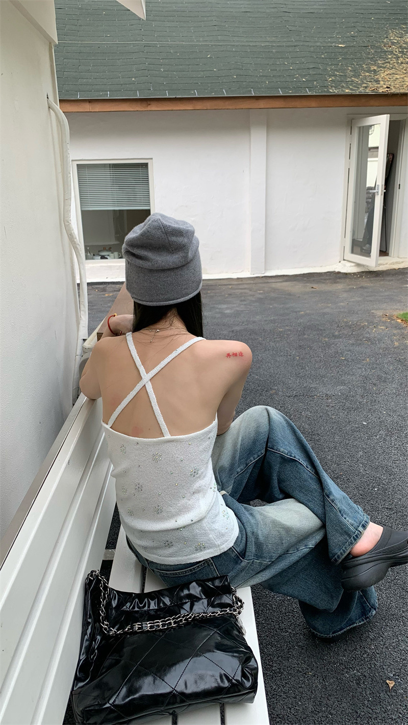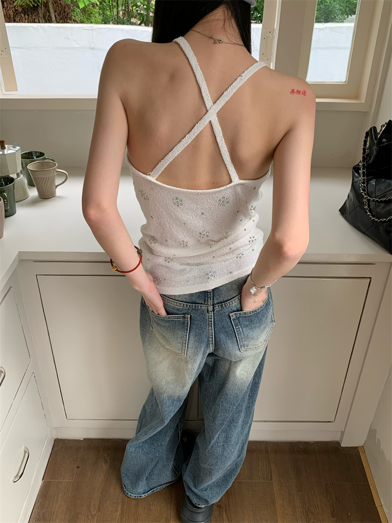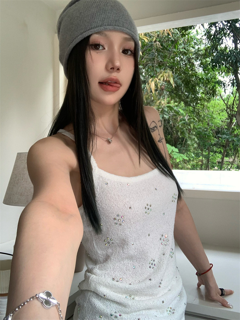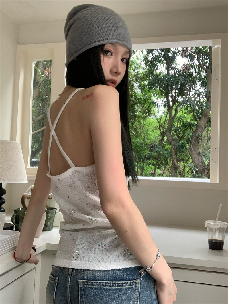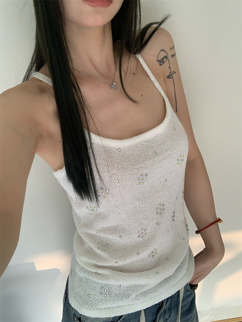 JMA-841 实拍 夏季新款韩版百搭设计挂脖露背亮钻辣妹针织吊带背心女