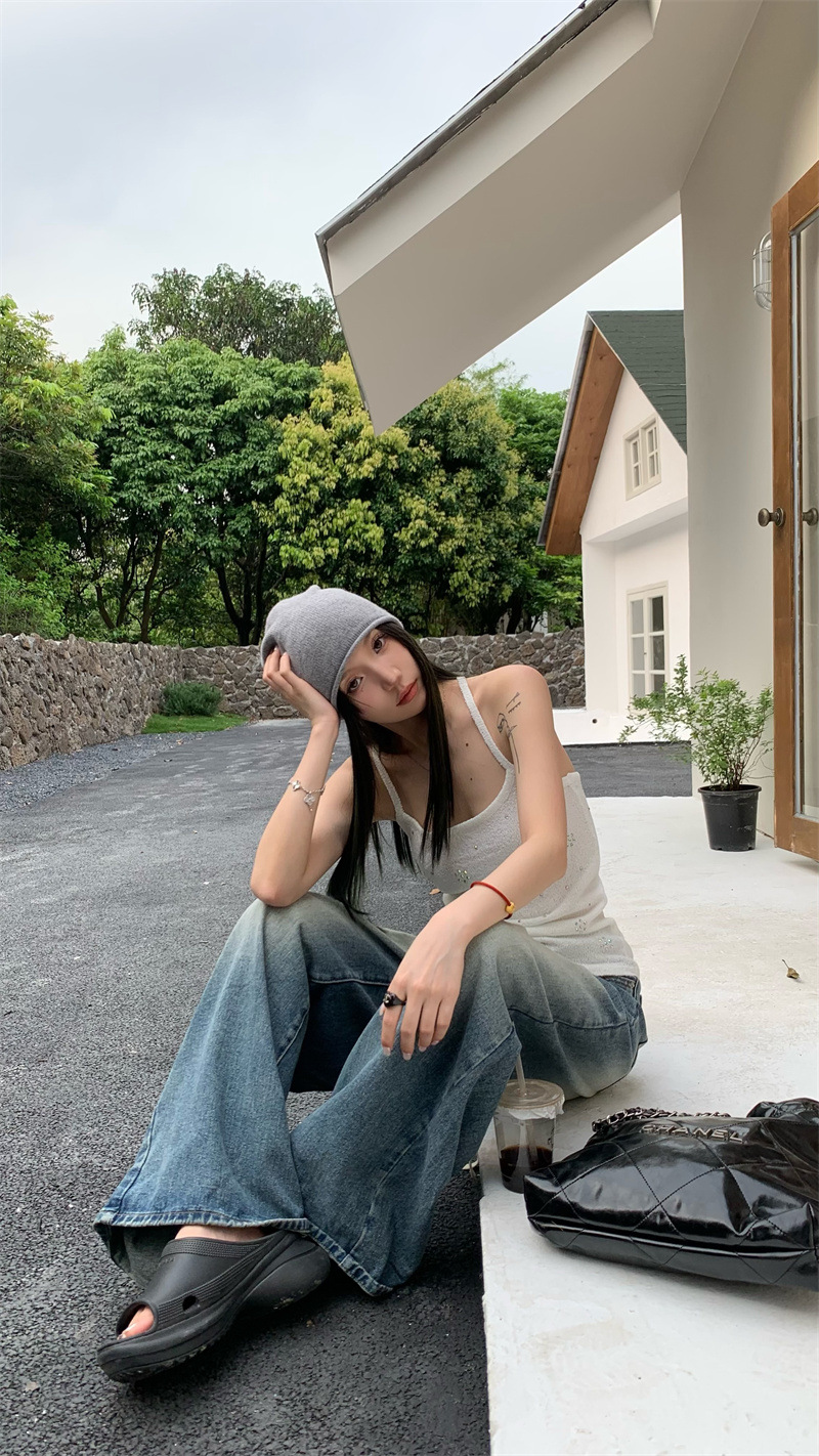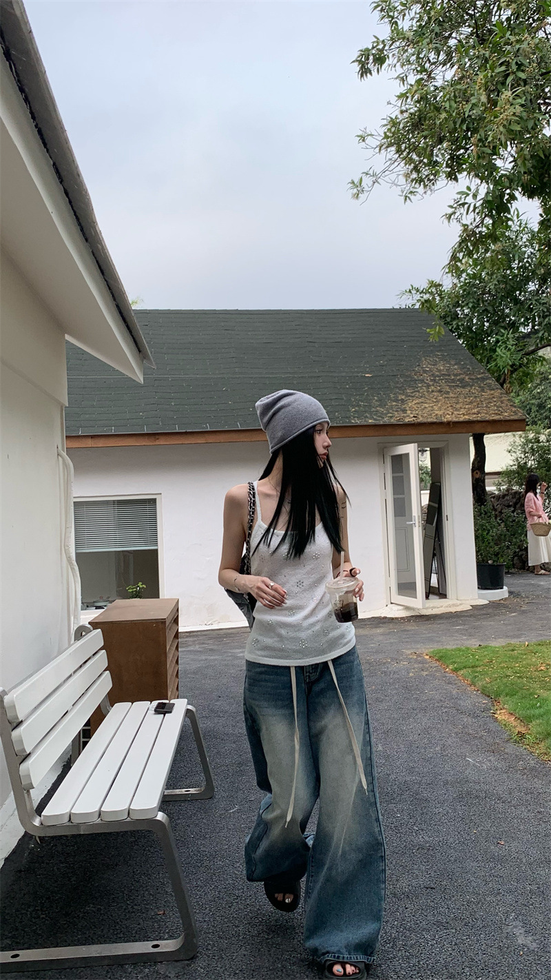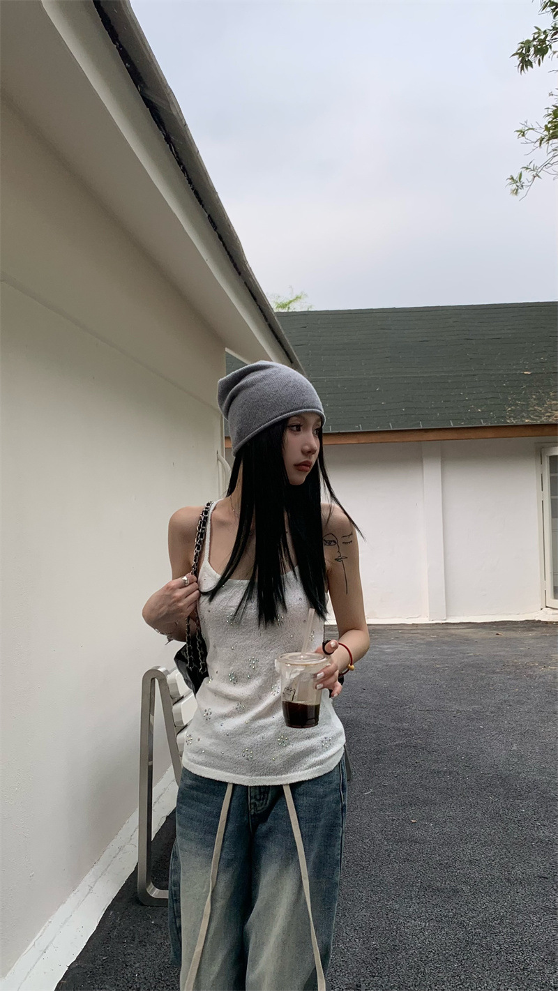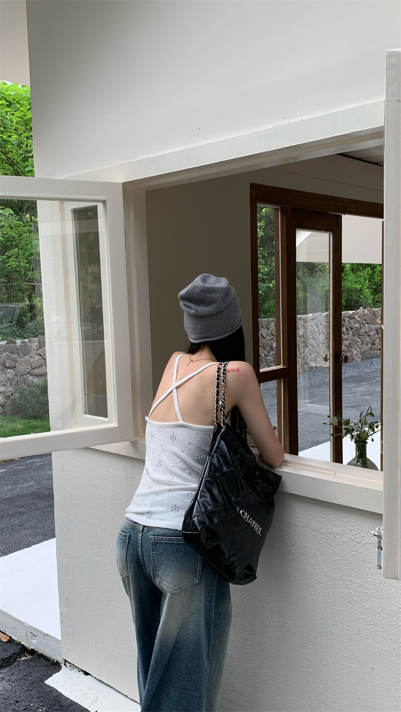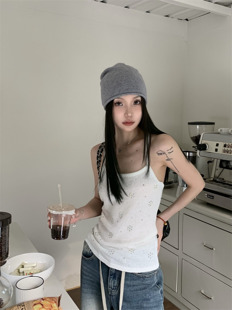 JMA-841 实拍 夏季新款韩版百搭设计挂脖露背亮钻辣妹针织吊带背心女