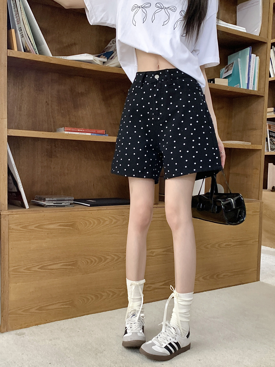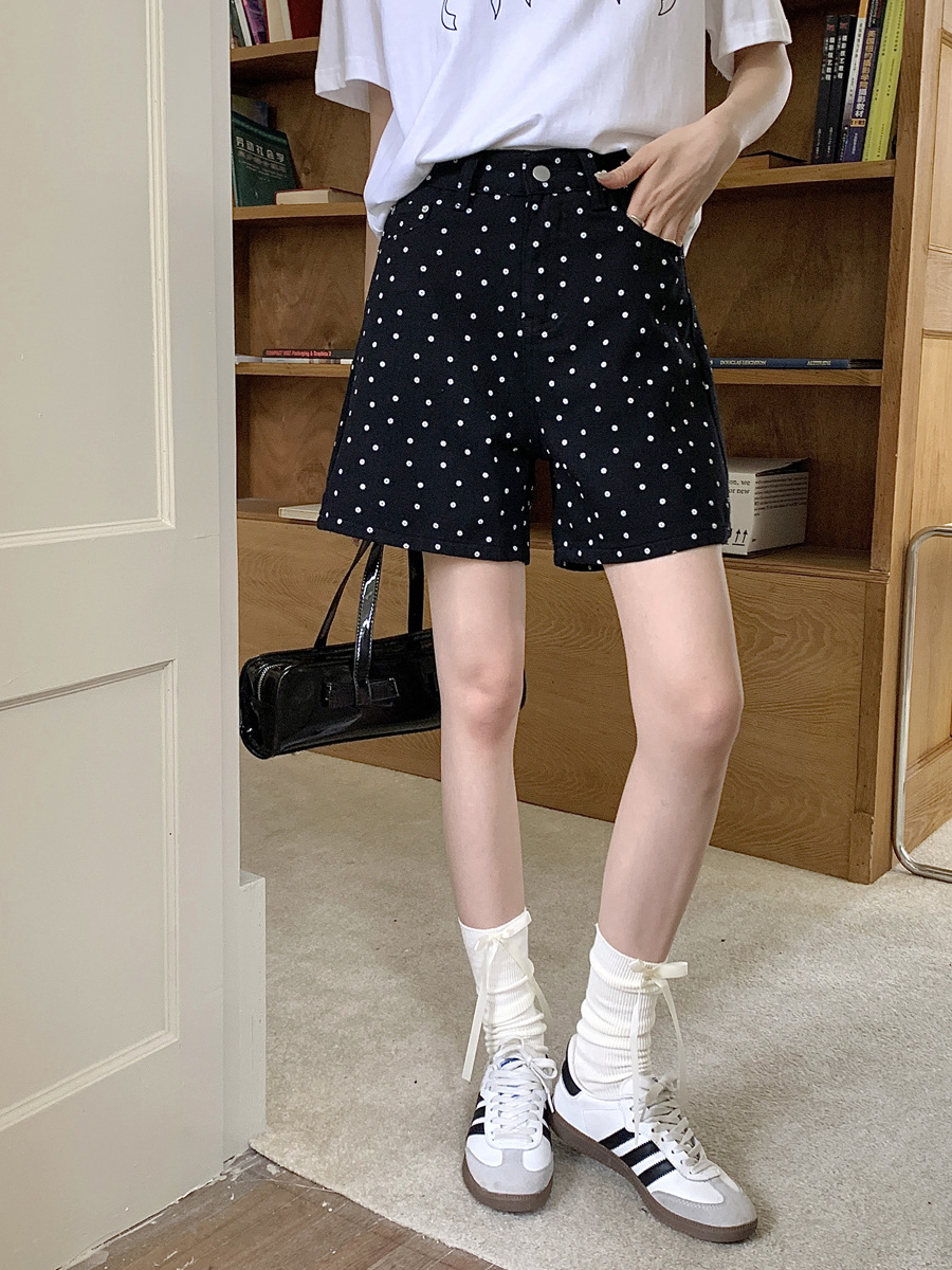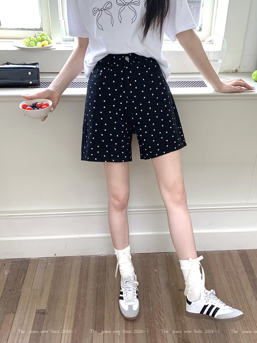 JMA-849 实拍 夏季韩版少女波点印花牛仔短裤女百搭高腰休闲裤中裤子