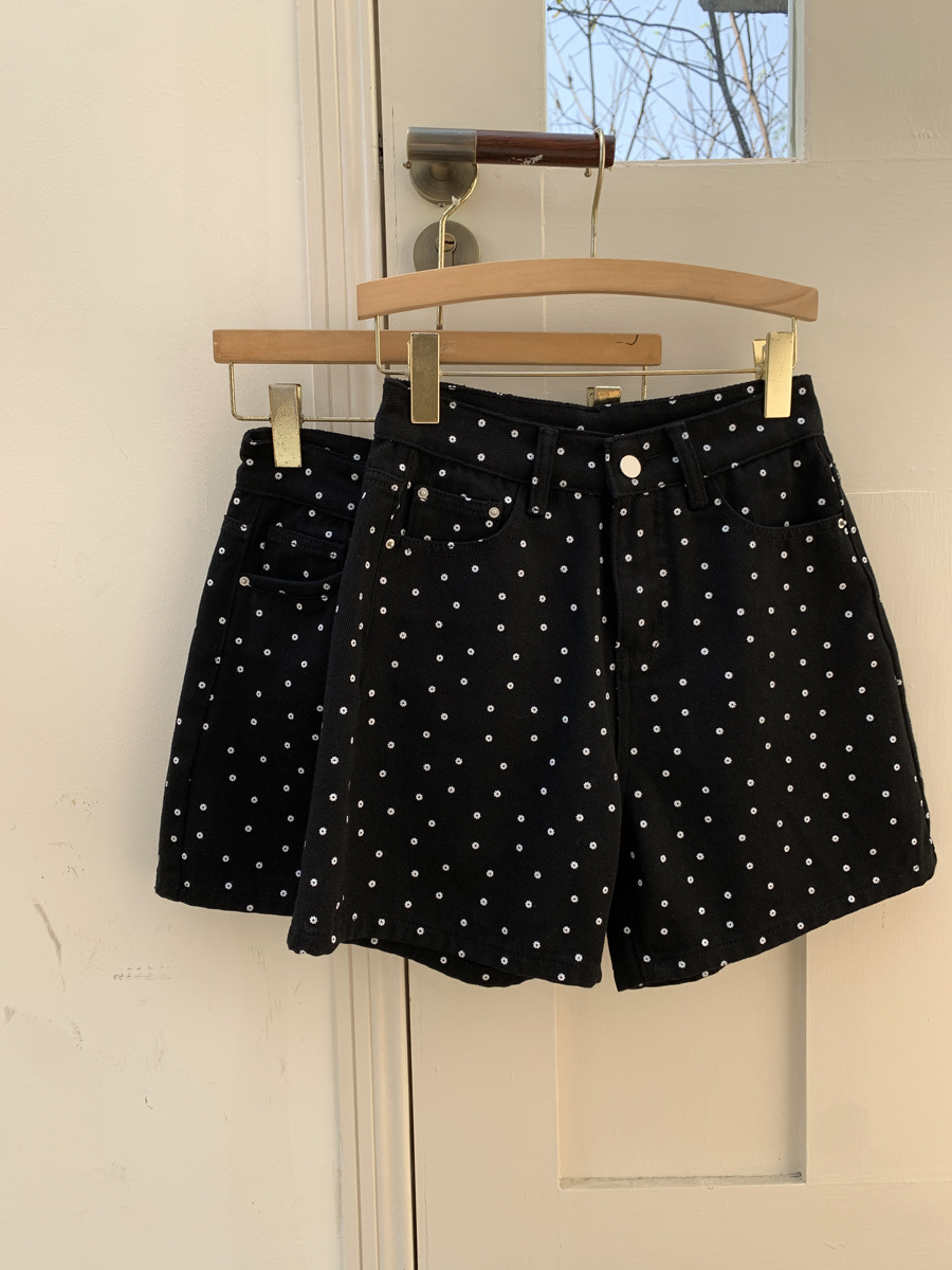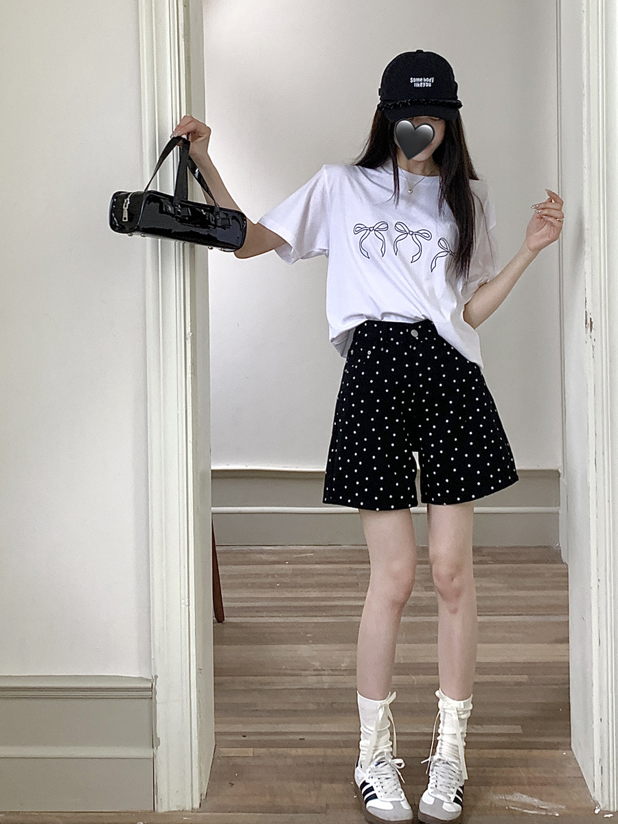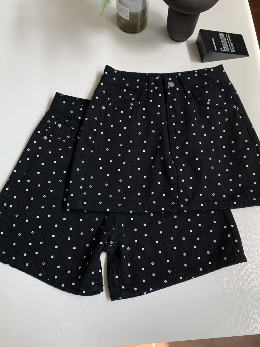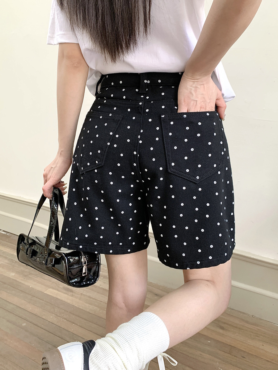 JMA-849 实拍 夏季韩版少女波点印花牛仔短裤女百搭高腰休闲裤中裤子