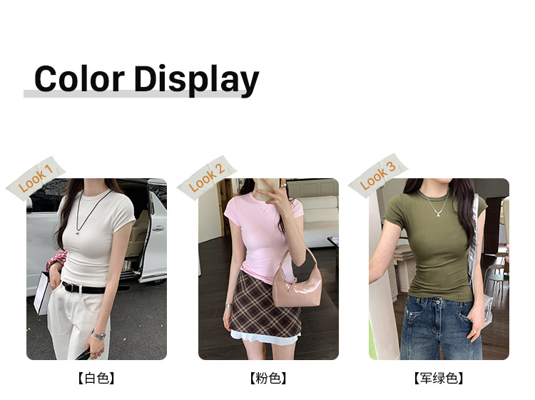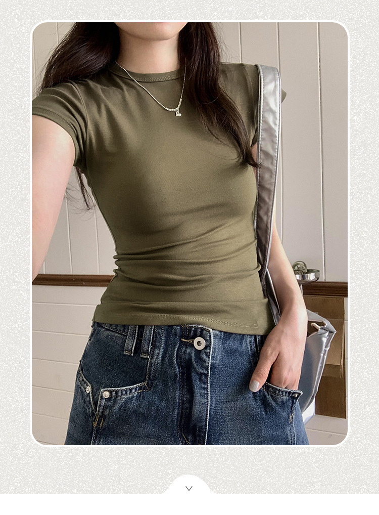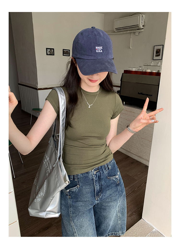 JMA-851 实拍 美式辣妹超好看正肩短袖T恤女 夏季新款修身显瘦甜辣上衣