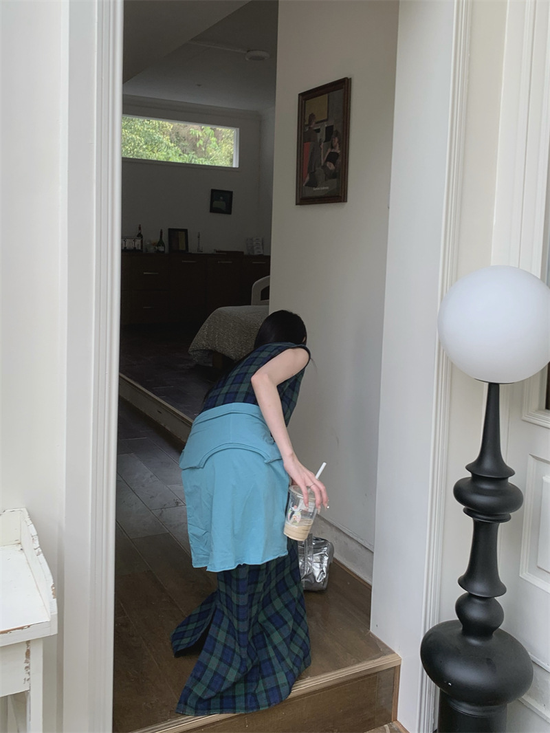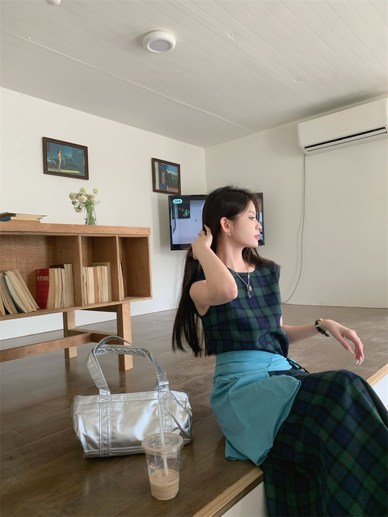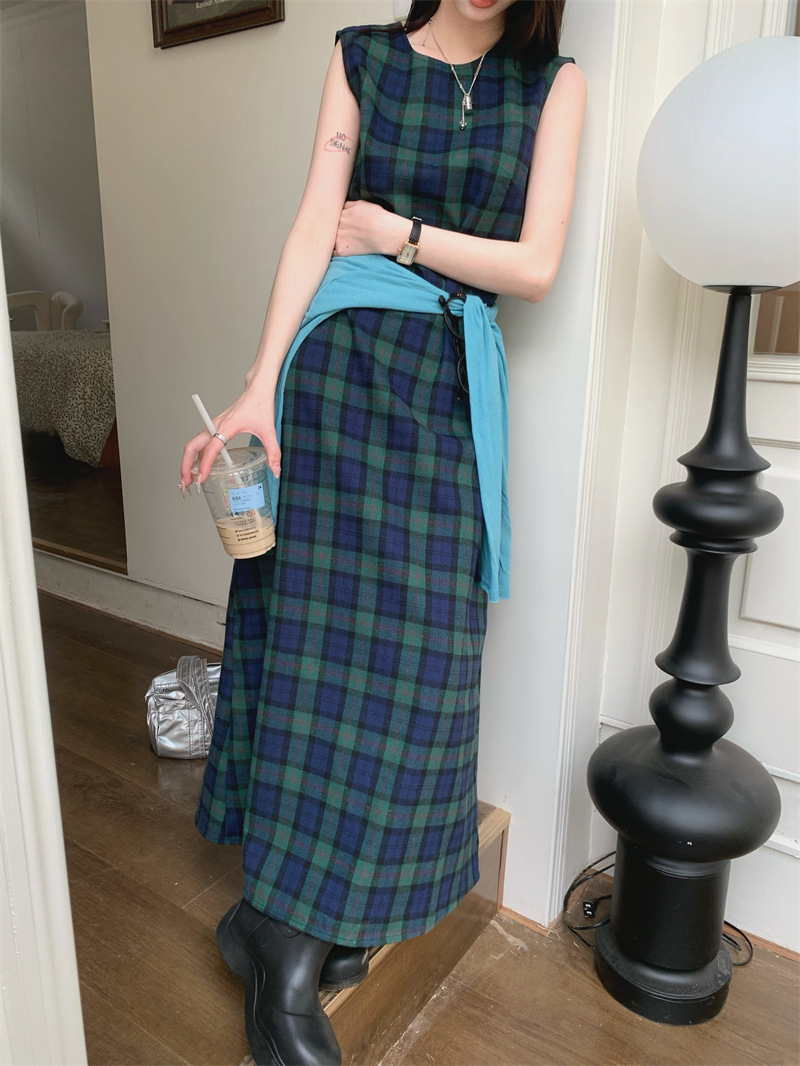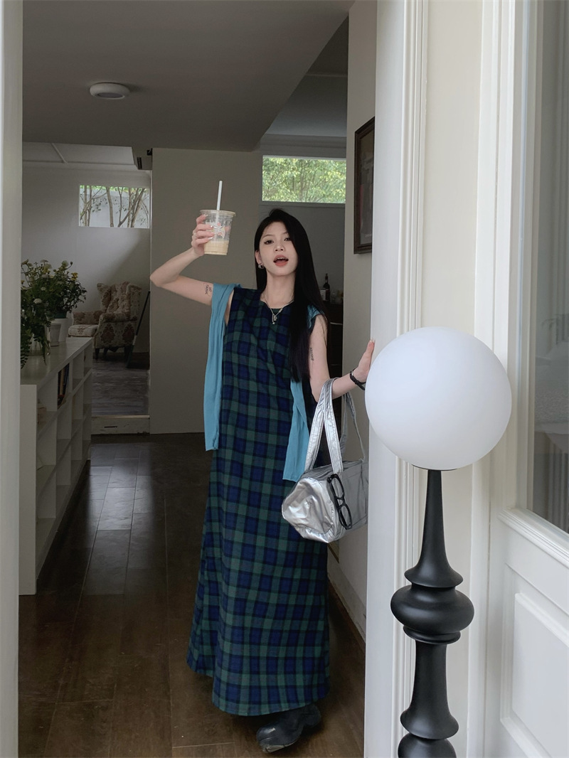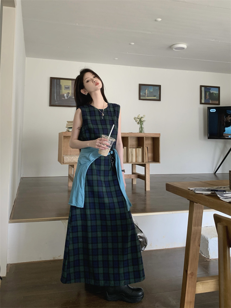 JMA-852 实拍 夏季新款韩版可盐可飒鬼马少女格纹无袖背心裙连衣裙女